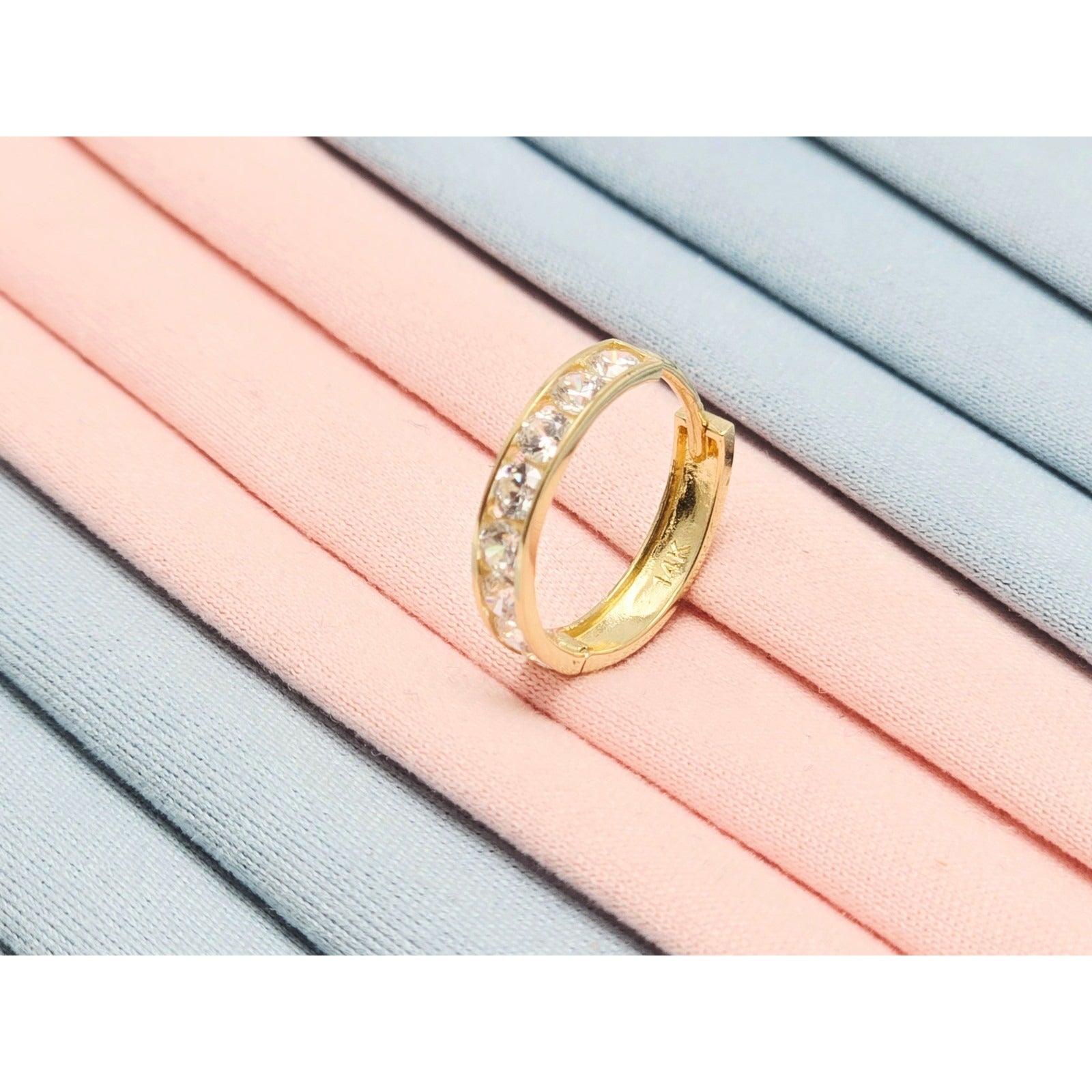 Single 14K Yellow Gold CZ Back Flap Hinge Earring