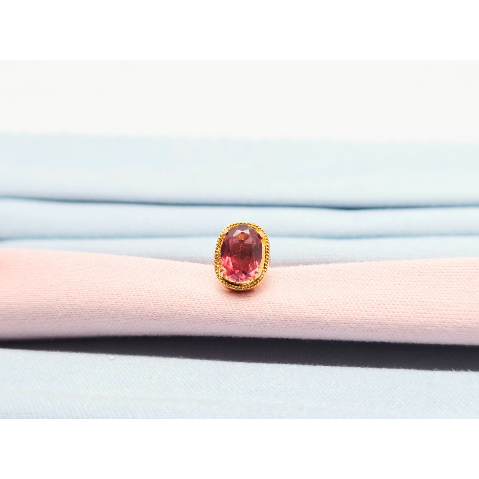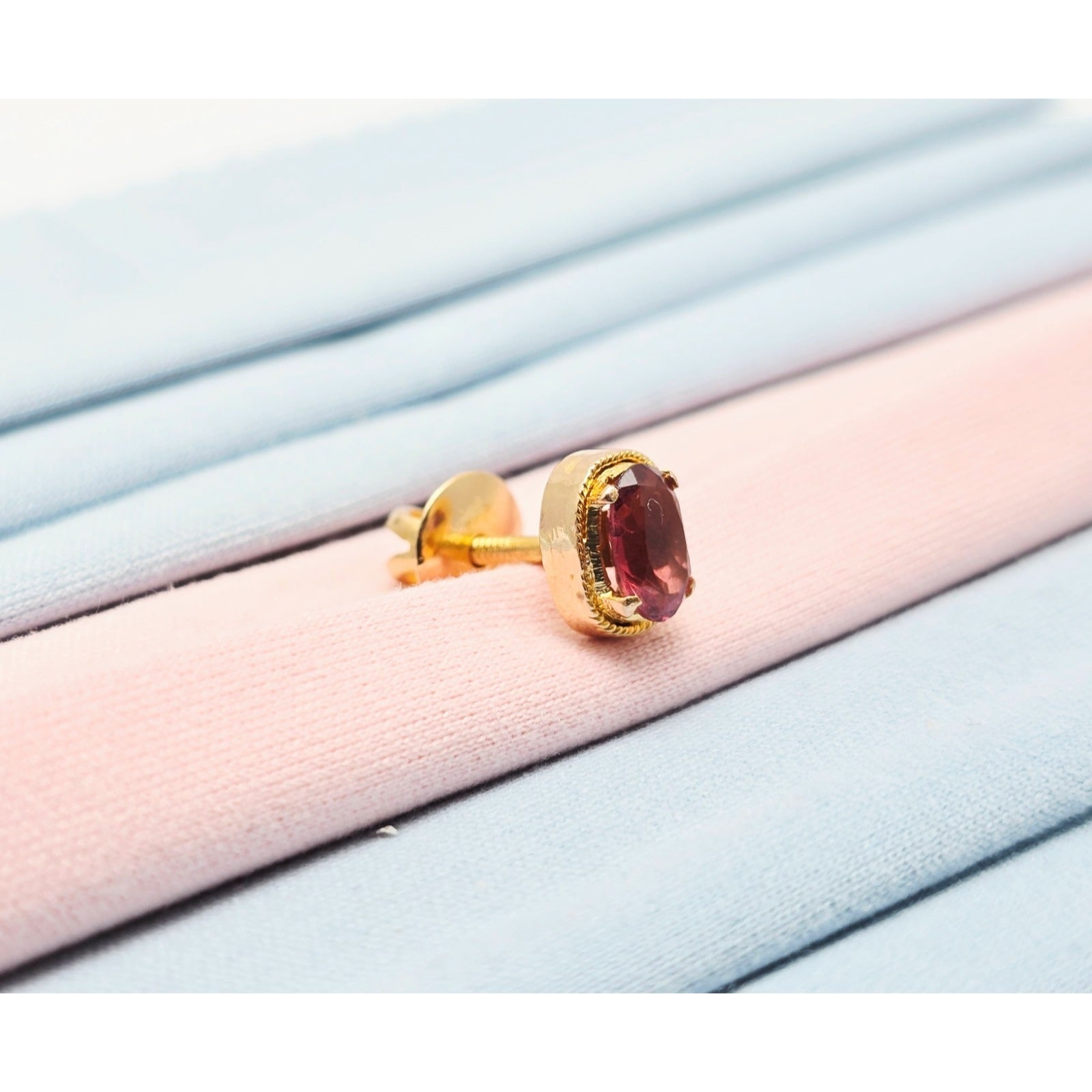 Single 21K Yellow Gold Oval Shaped Tourmaline Stud Earring
