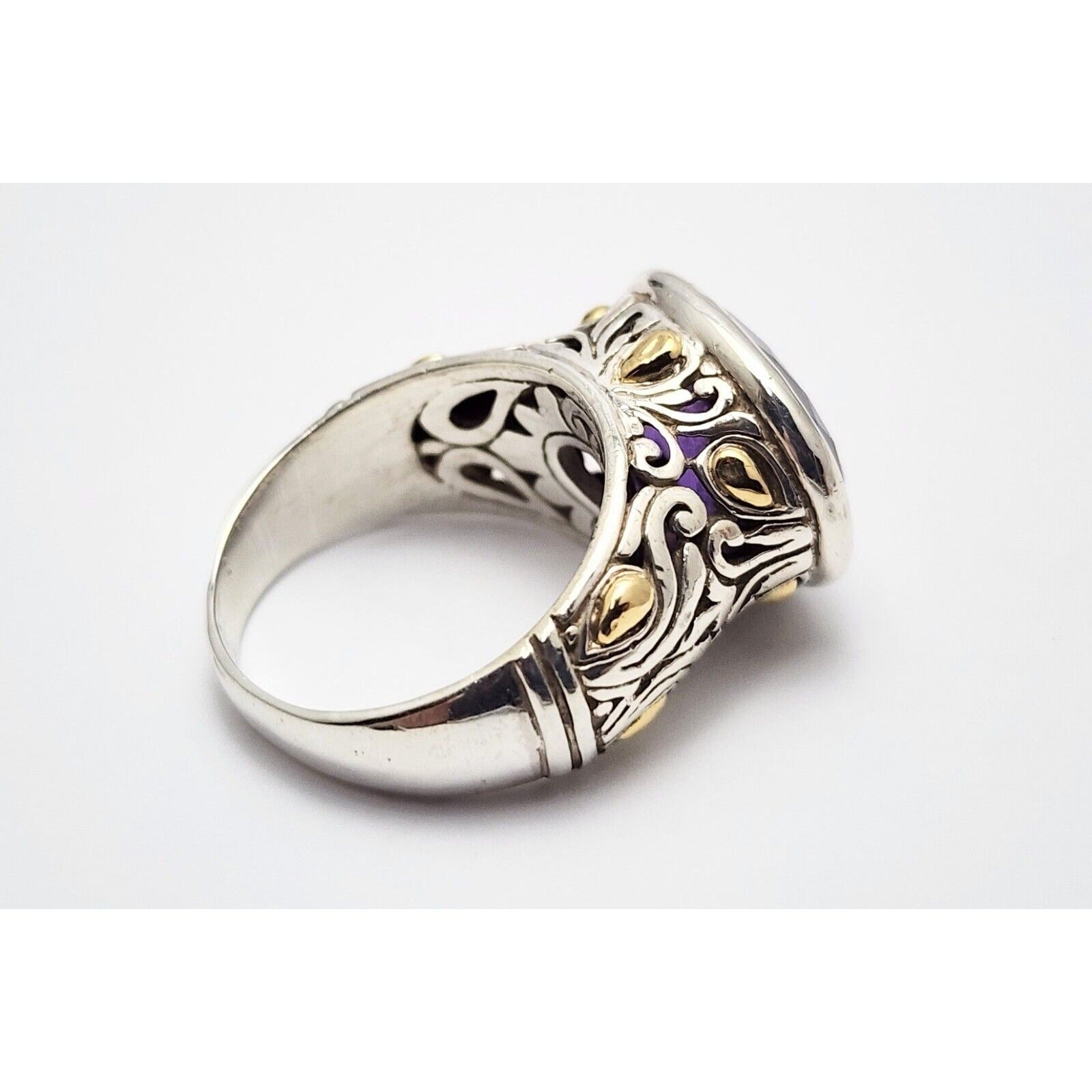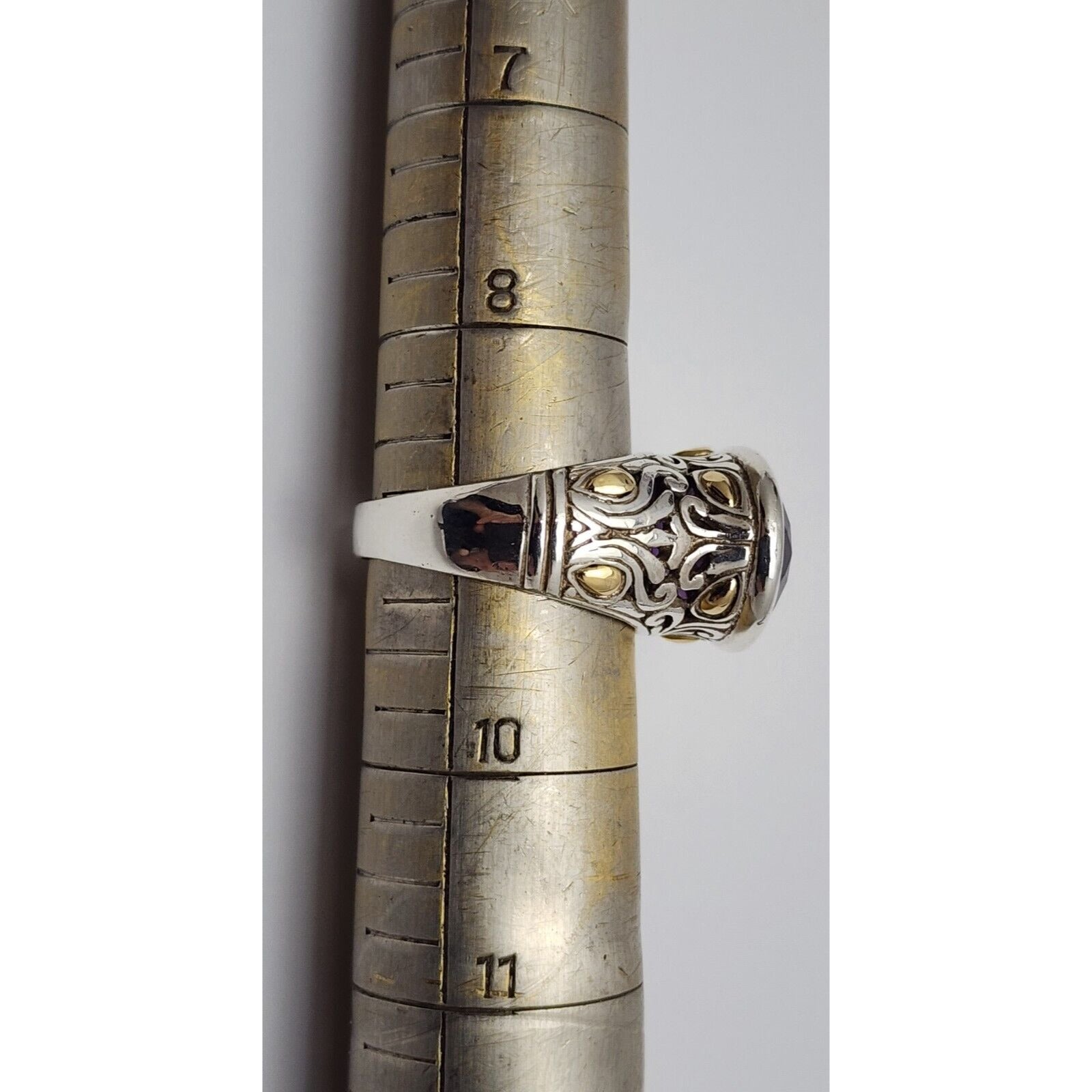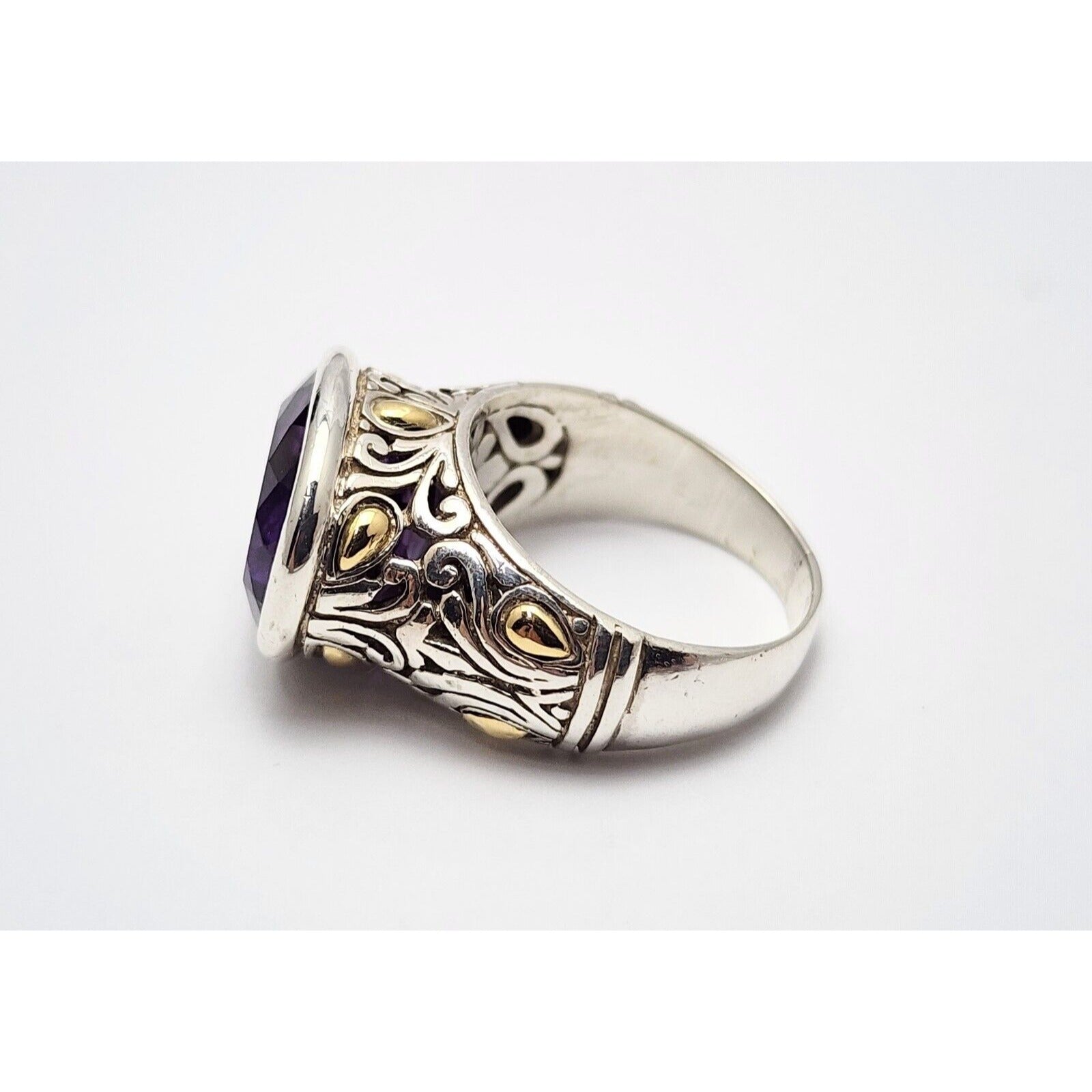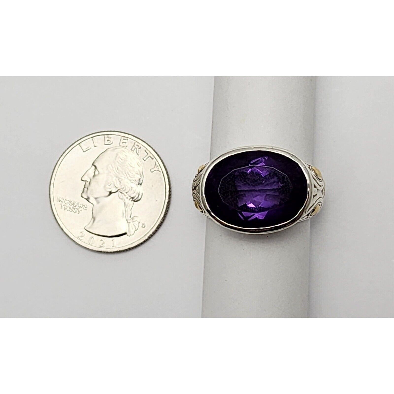 Sterling Silver 925 18K Yellow Gold Two Tone Multi Color Large Amethyst Ring