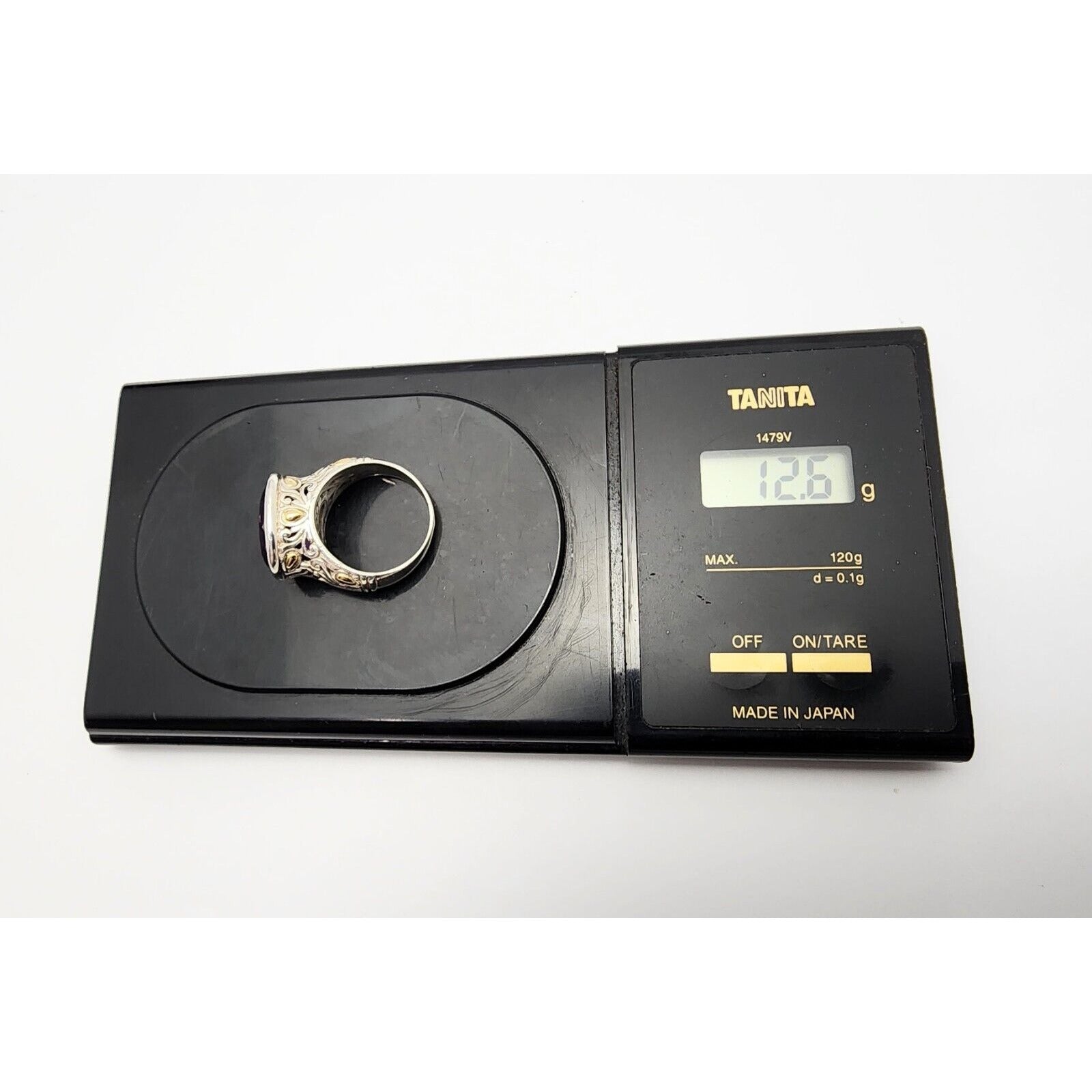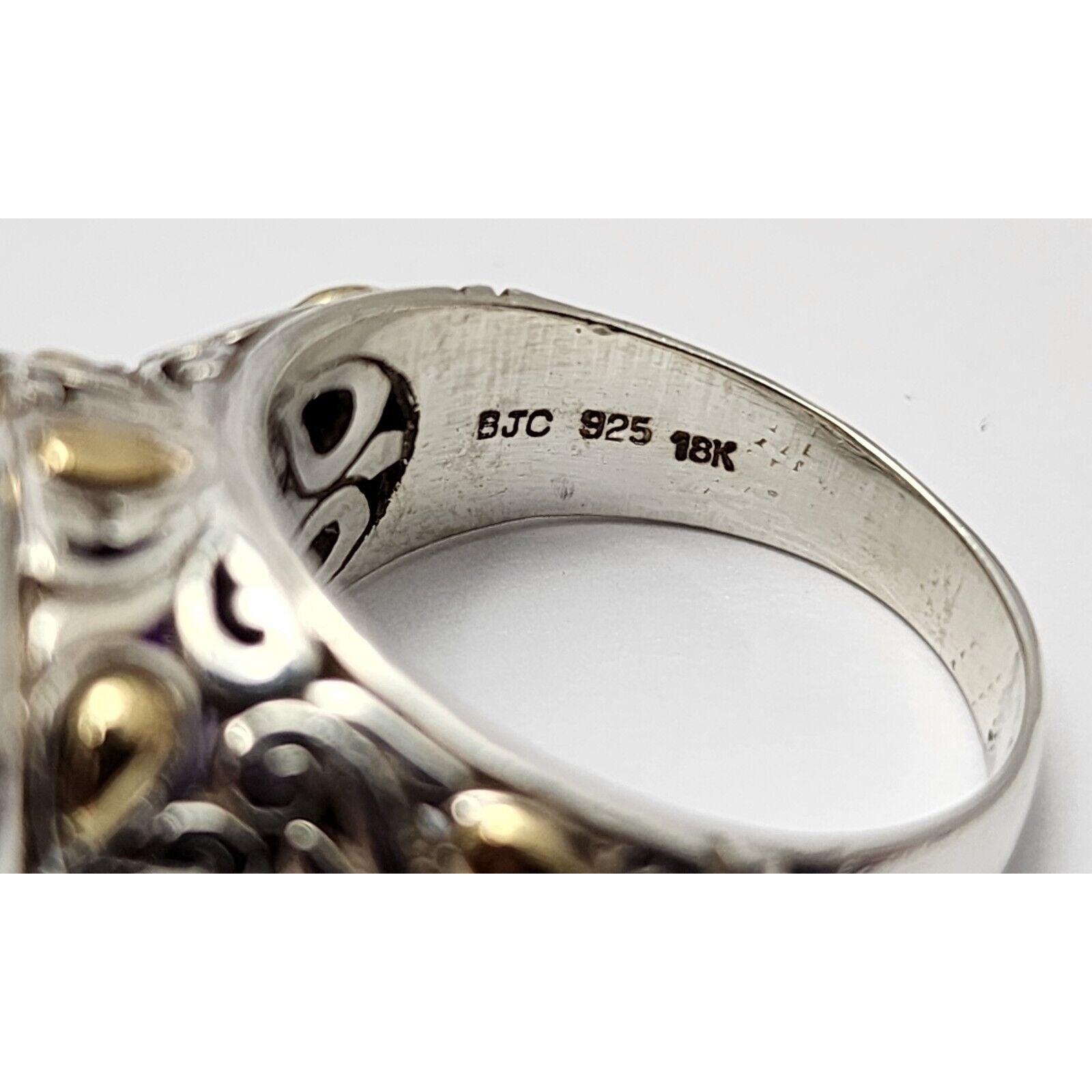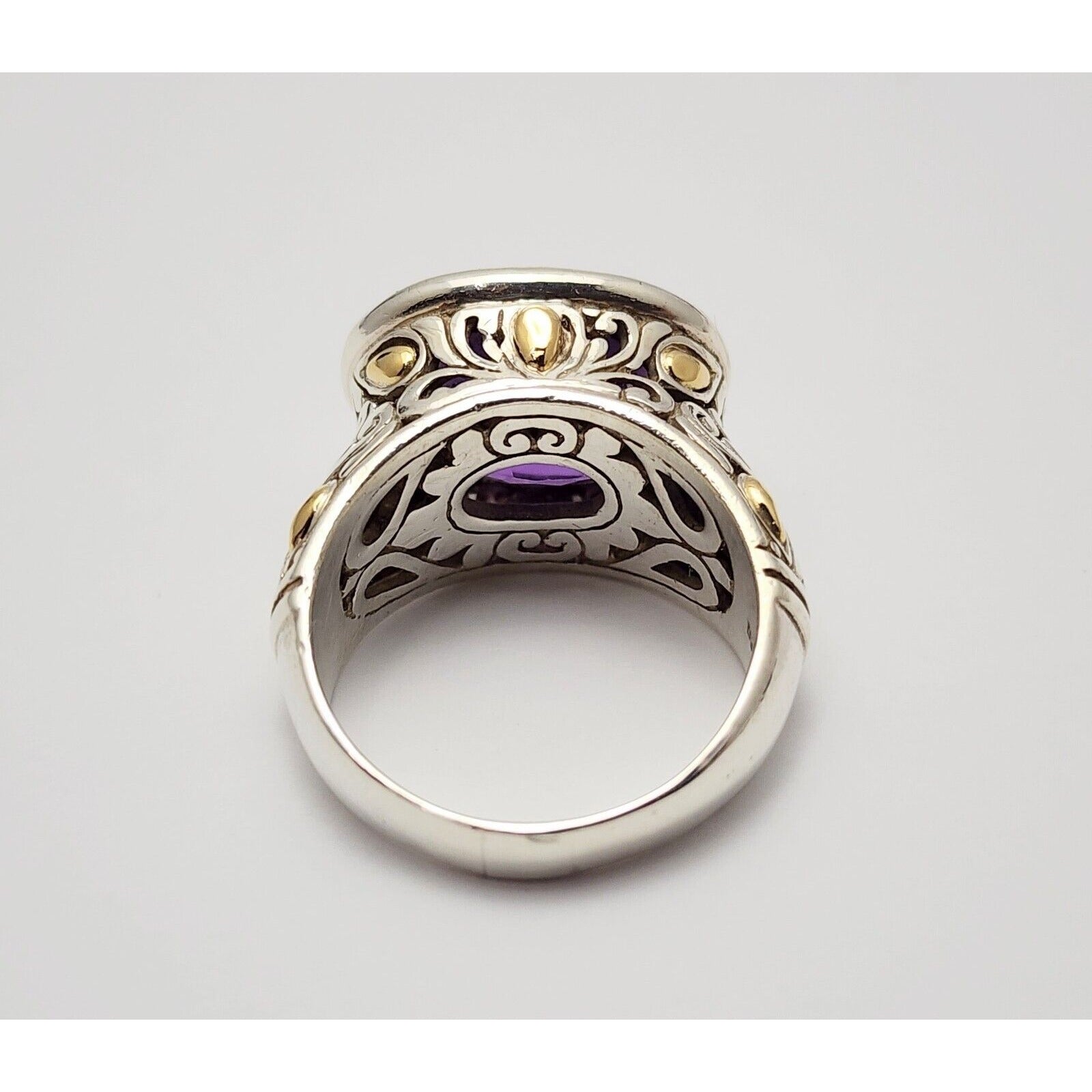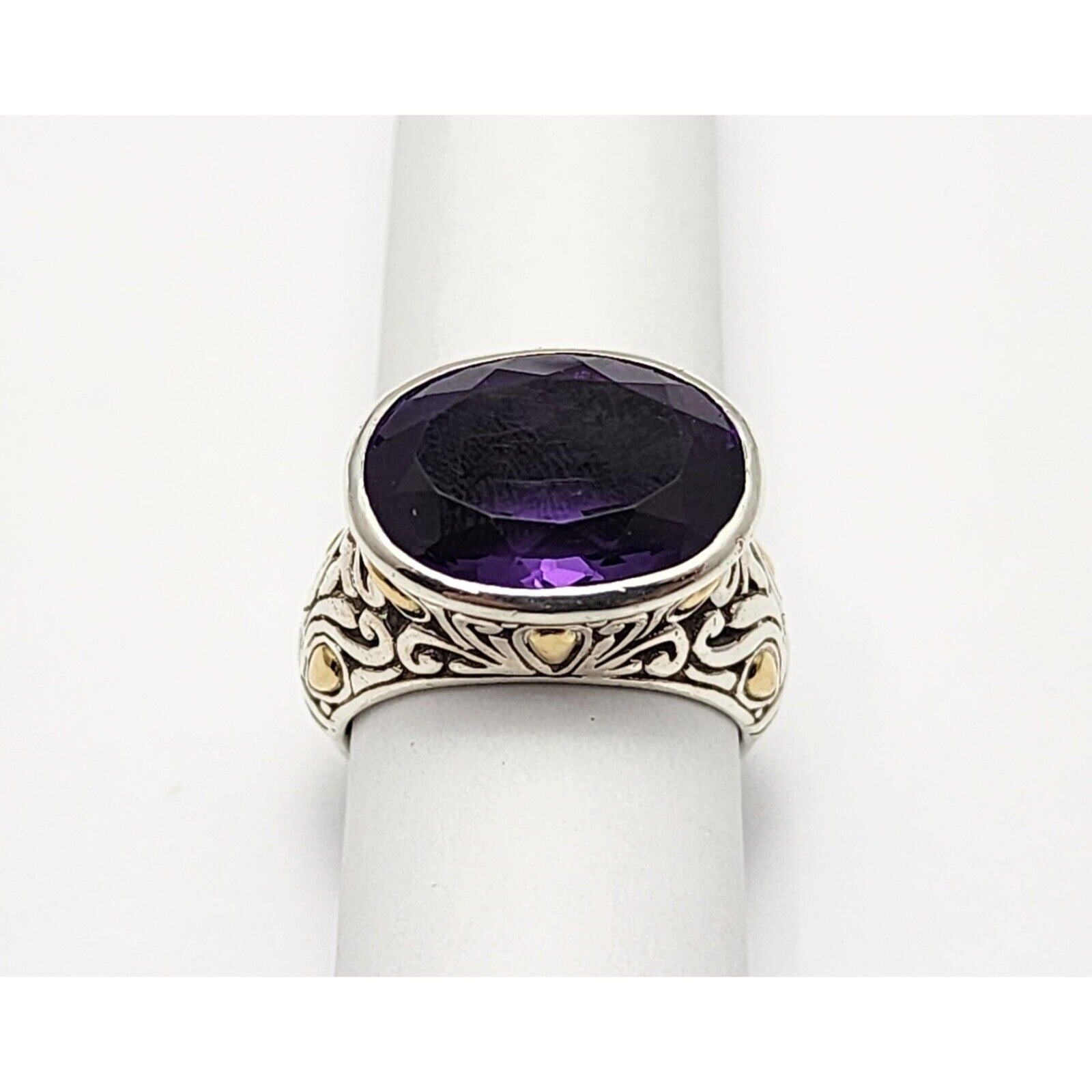 Sterling Silver 925 18K Yellow Gold Two Tone Multi Color Large Amethyst Ring