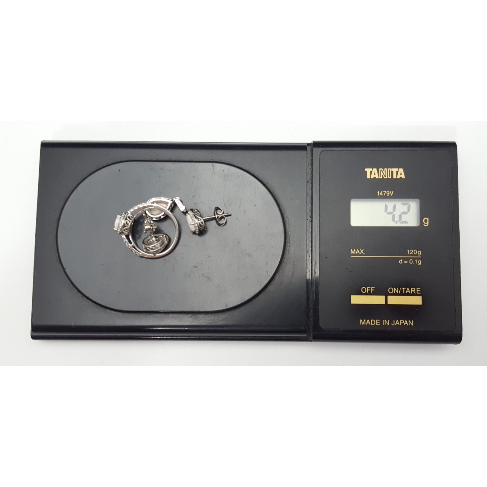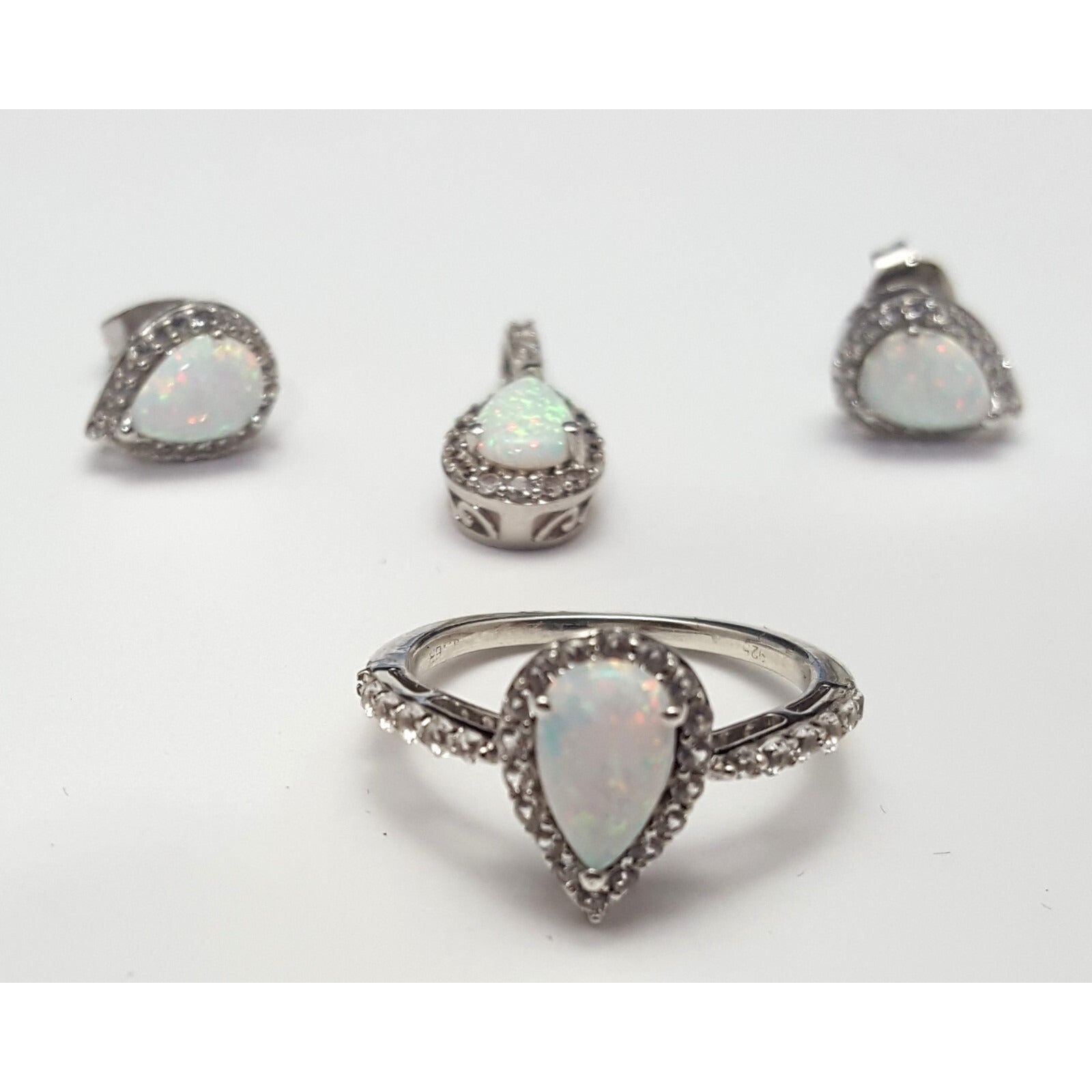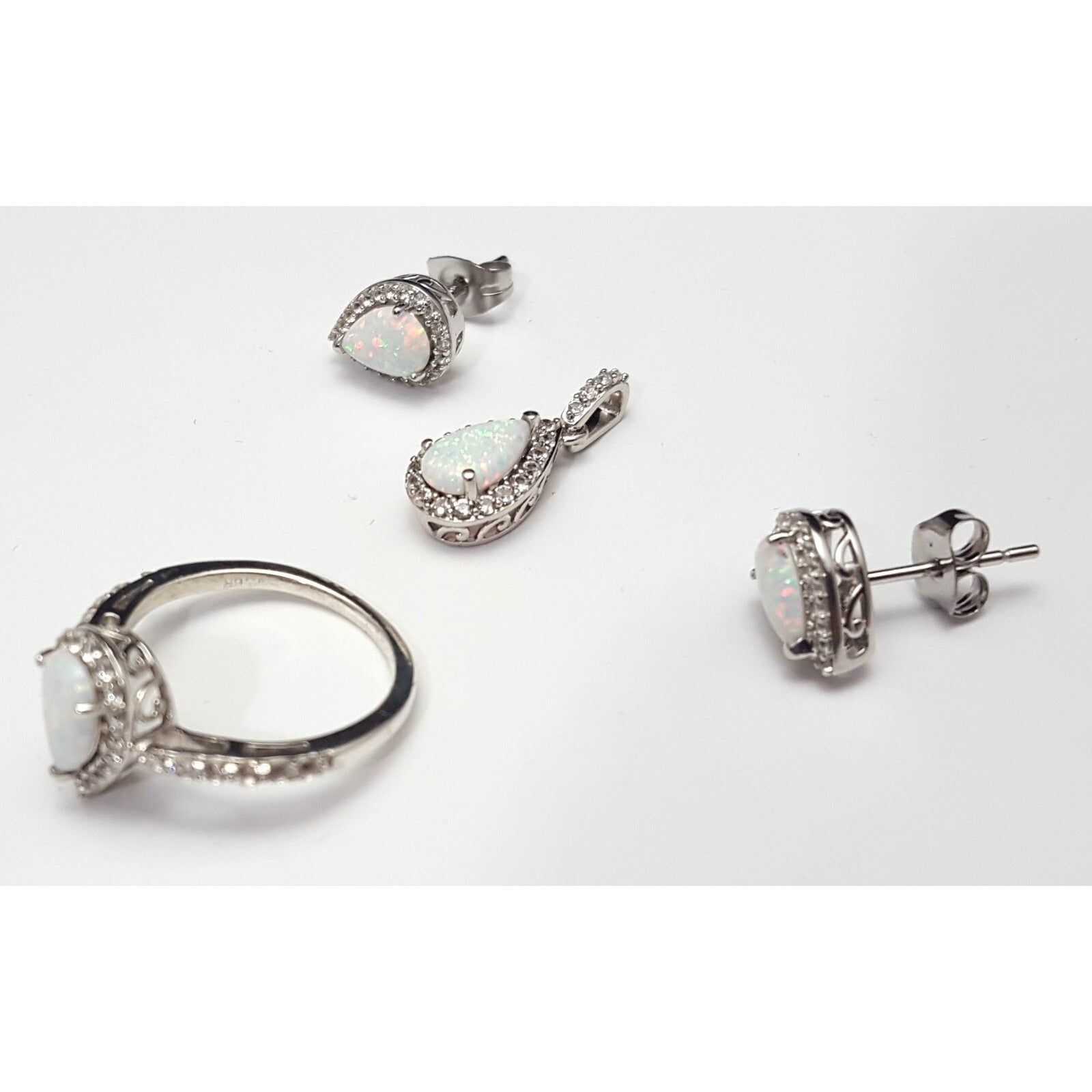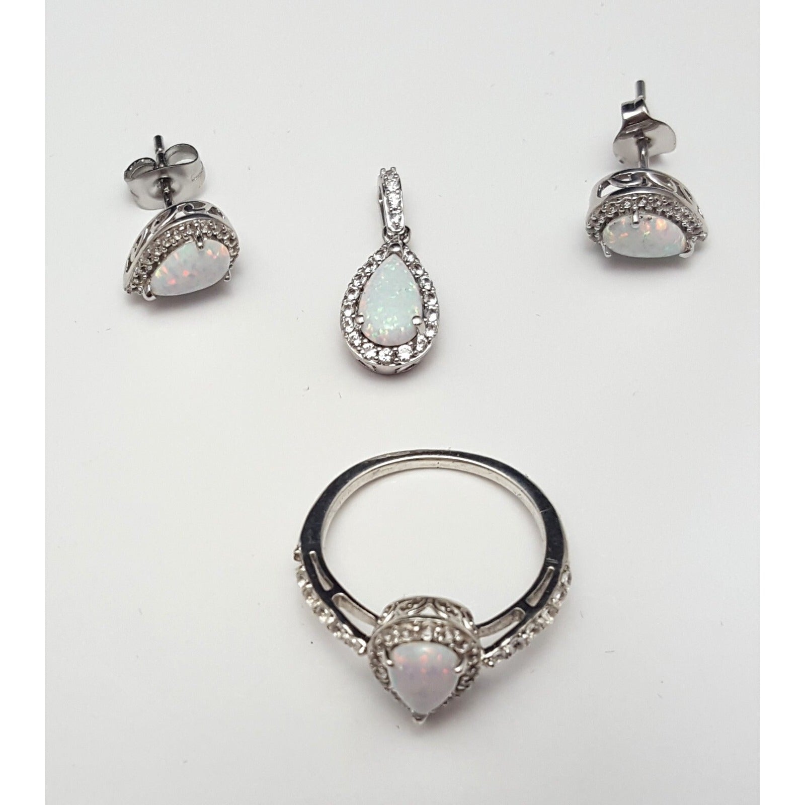 Sterling Silver 925 Opal & Cubic Zirconia Ring, Earrings & Pendant Set