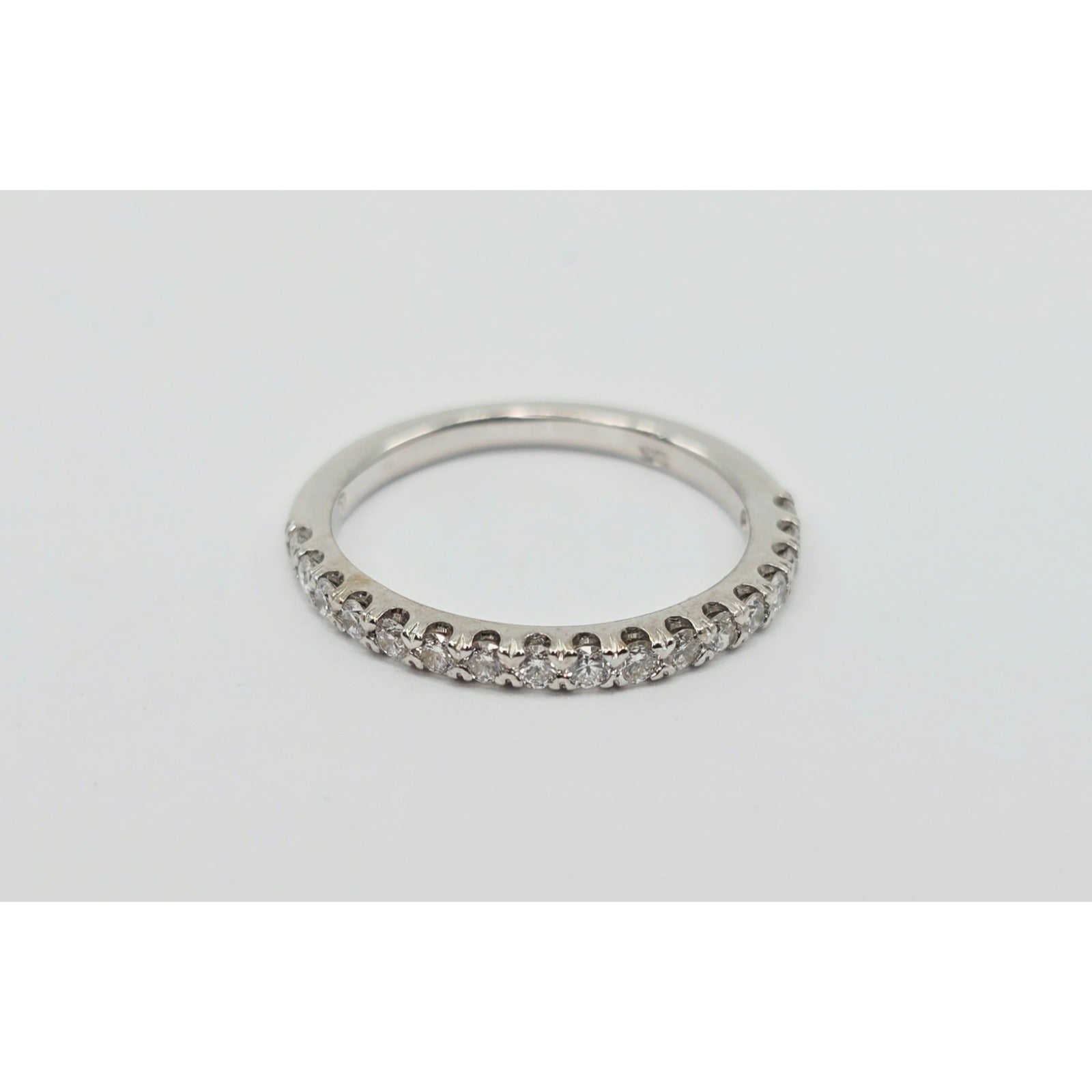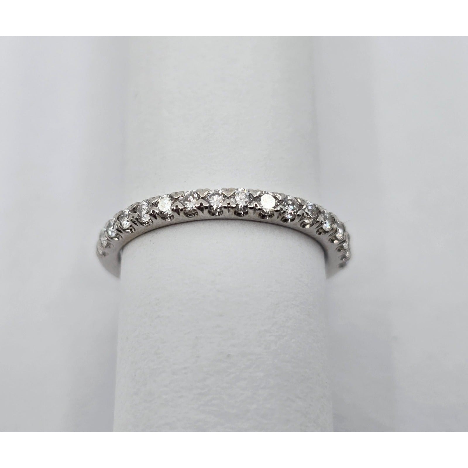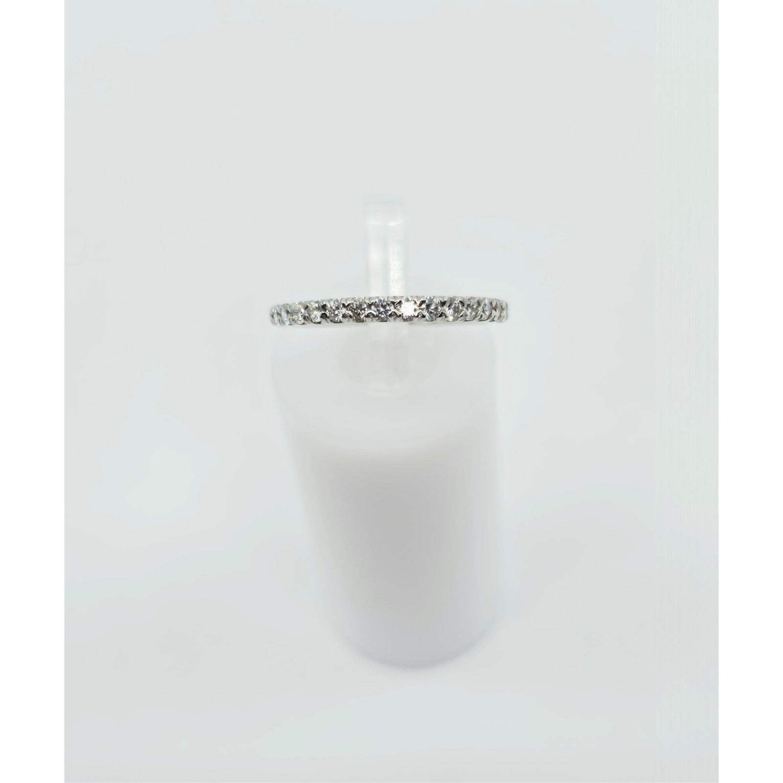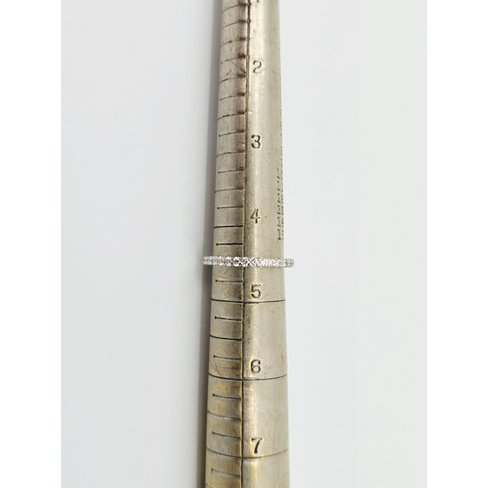 Thin 18K White Gold Single Row Round Cut Diamond Wedding Band Ring