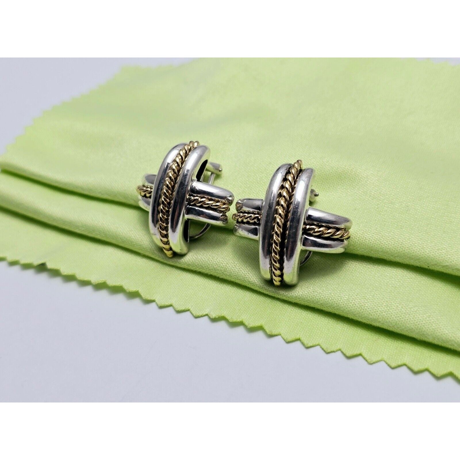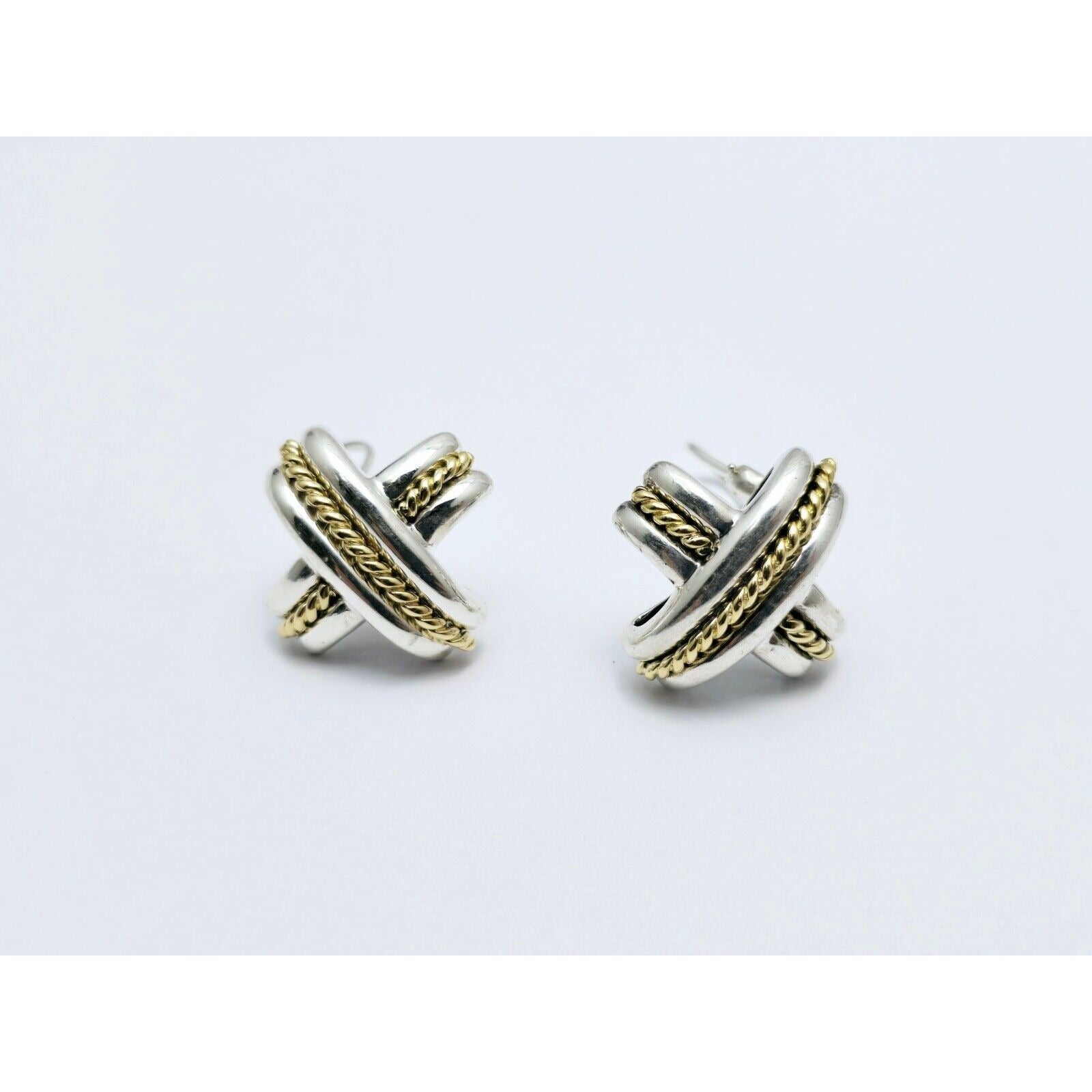 Tiffany & Co Signature X Clip On Earrings 18K Yellow Gold & Sterling Silver 925