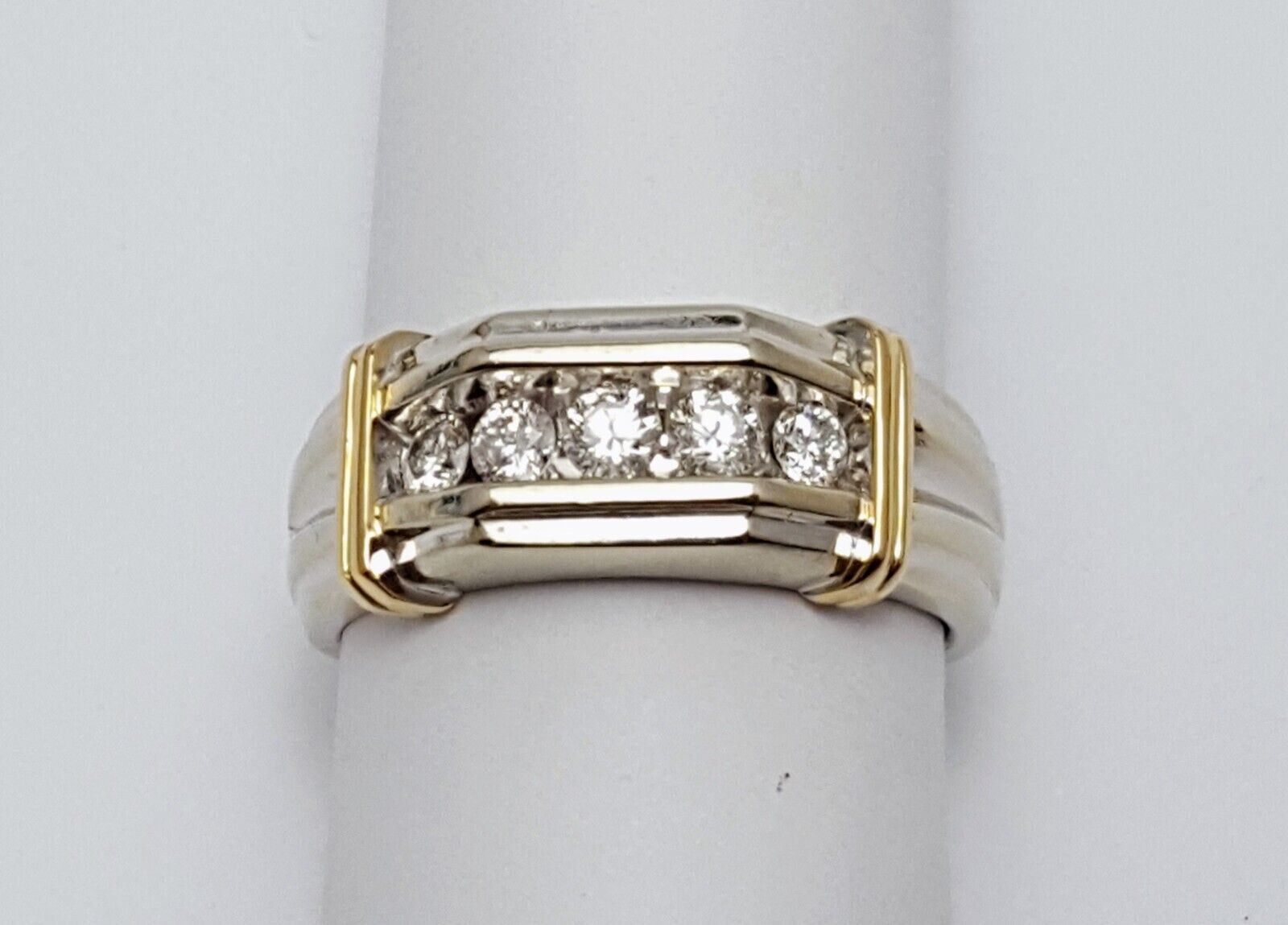 Unique 10K Karat Solid Multi Color Gold Diamond Men's Ring