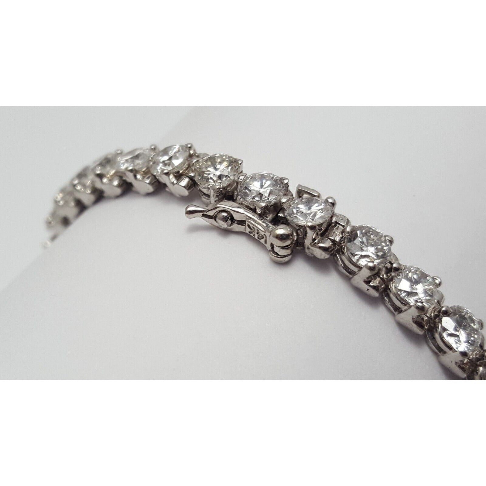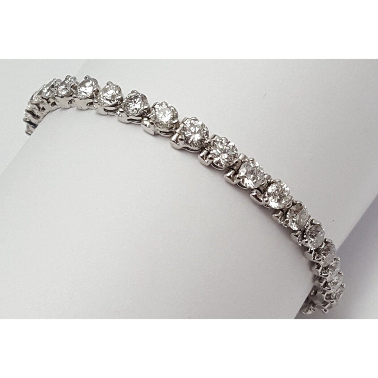14K Solid White Gold Diamond Tennis Link Bracelet