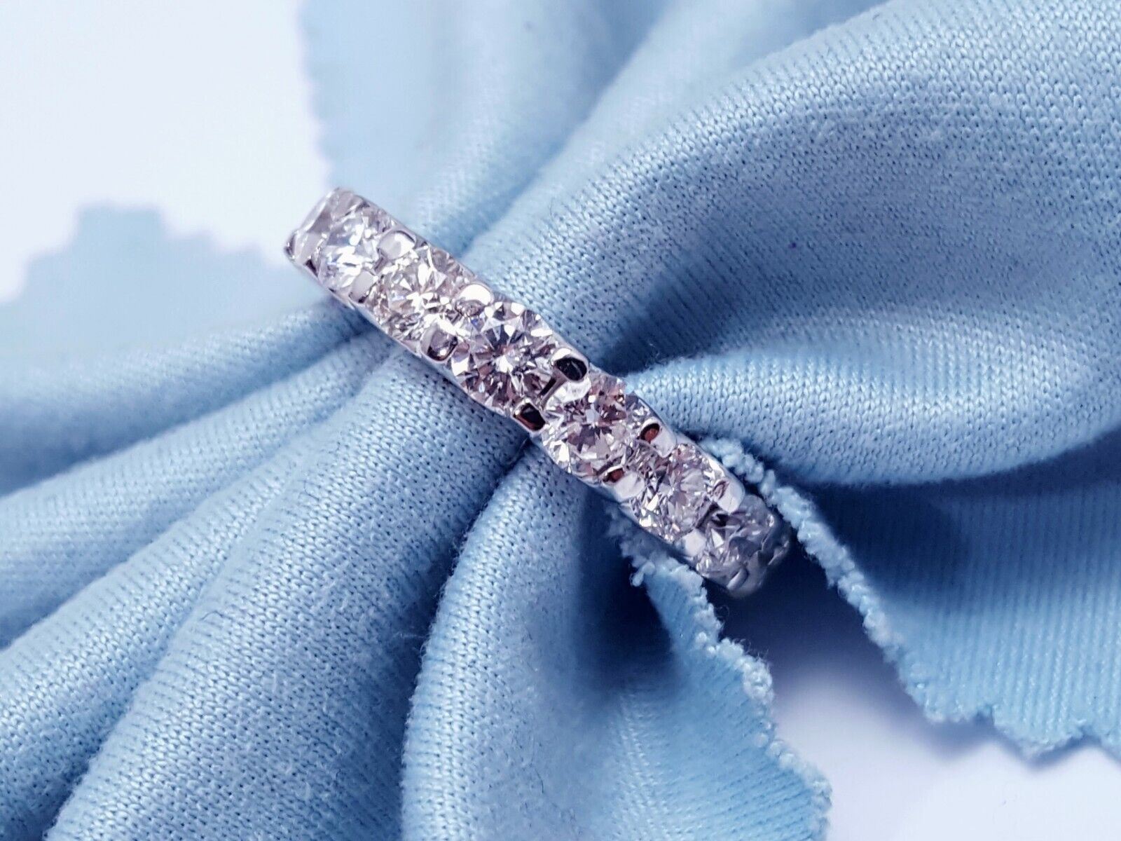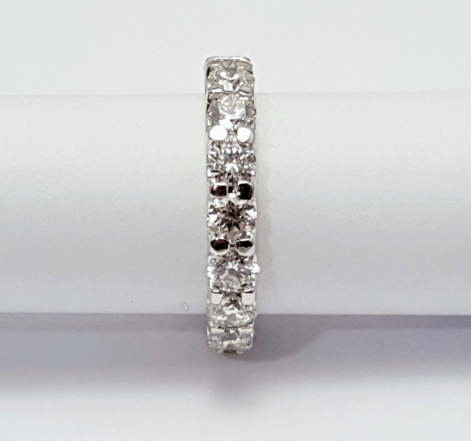 14K Solid White Gold Ladies Diamond Eternity Wedding Band Ring