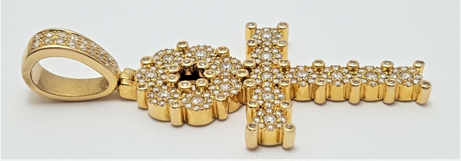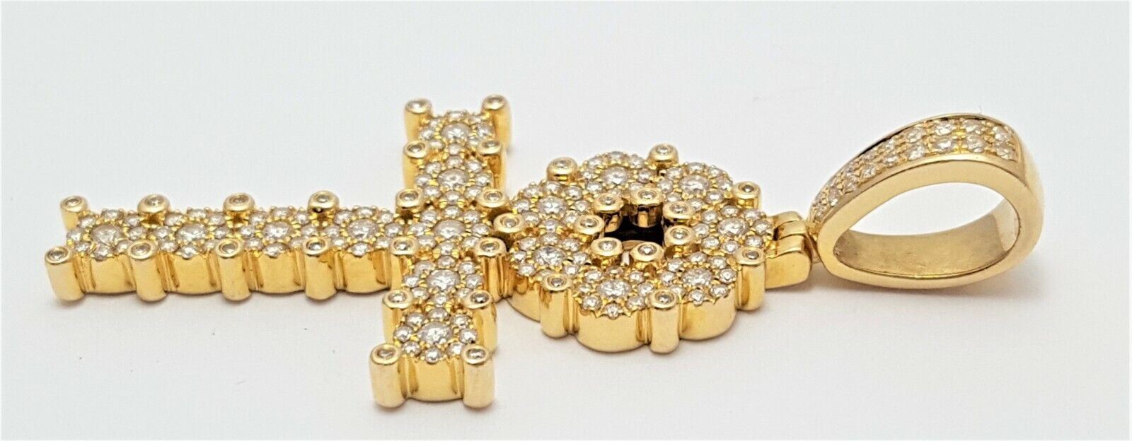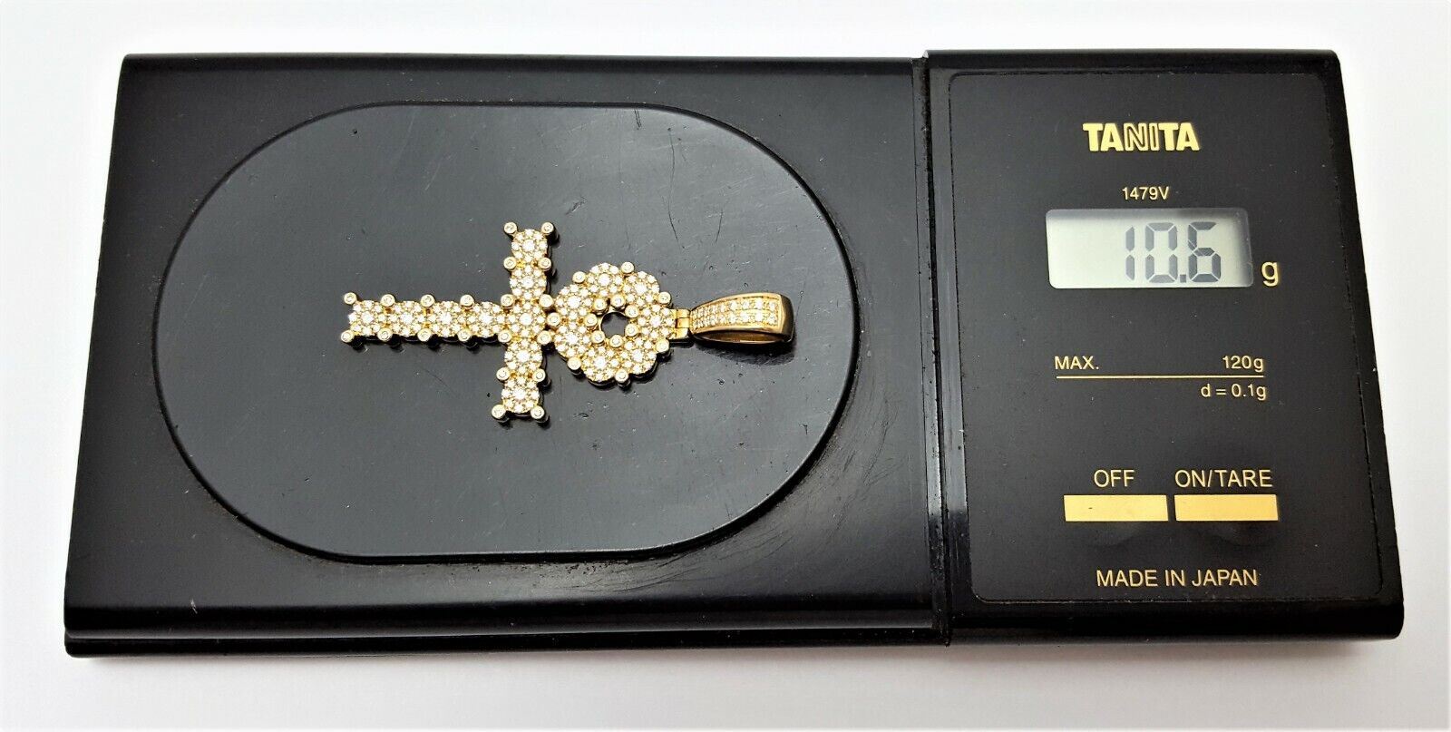14K Solid Yellow Gold Ankh Cubic Zirconia Charm Pendant
