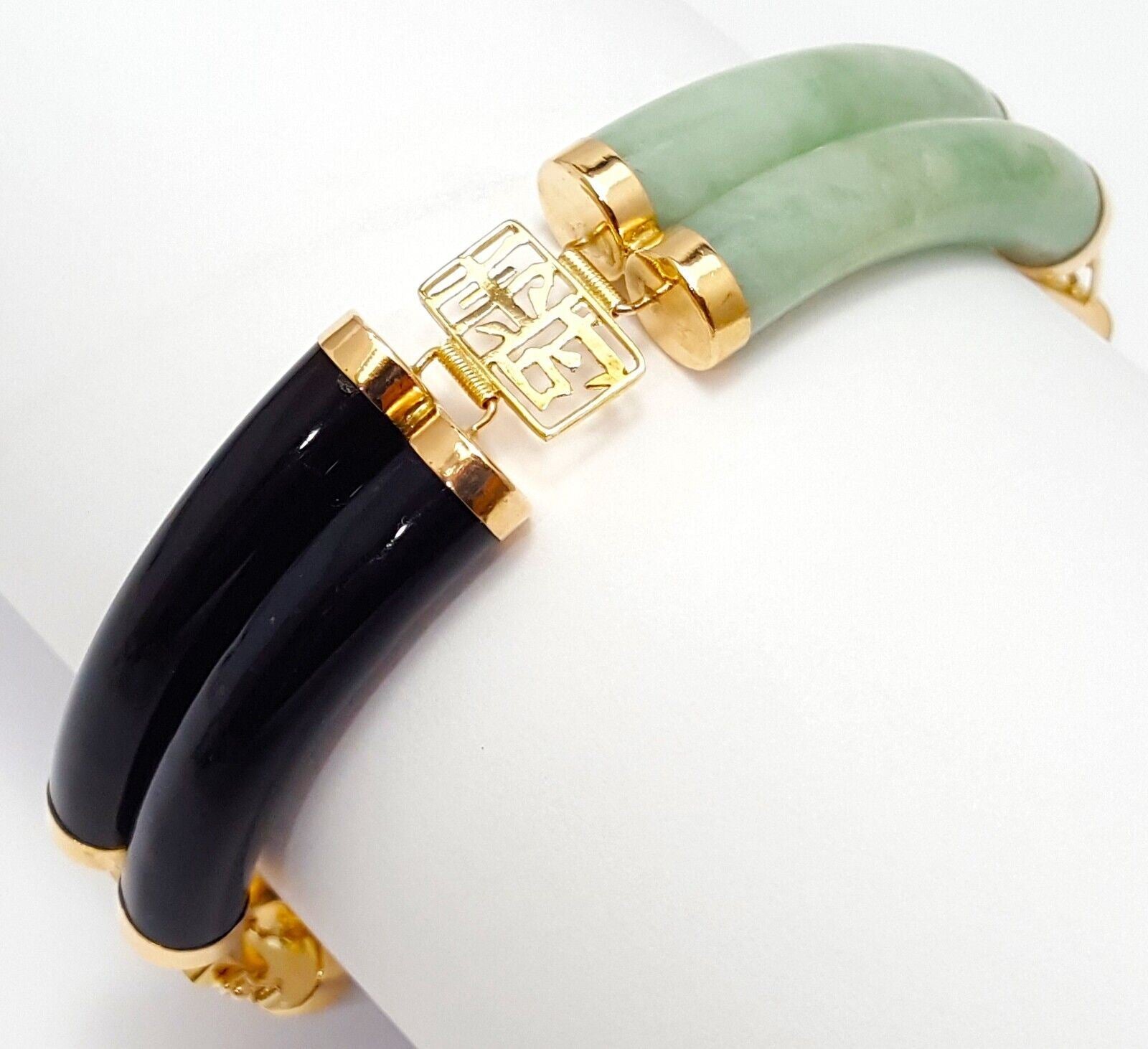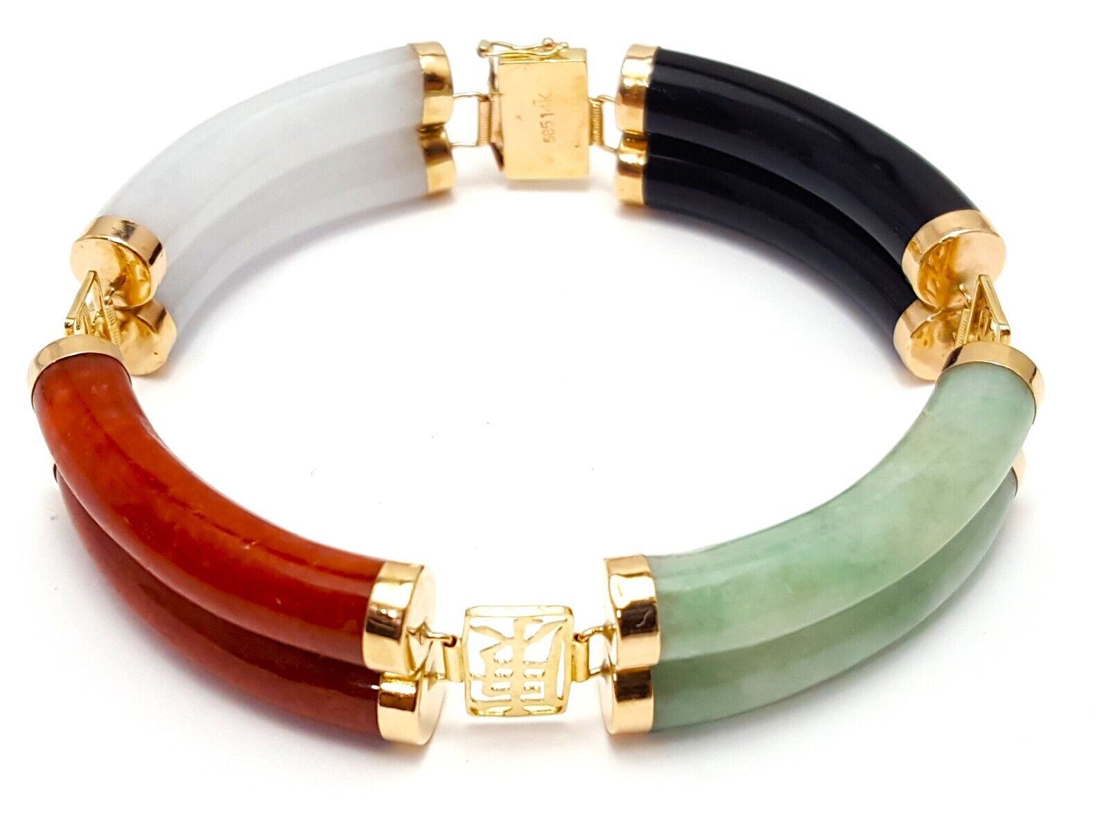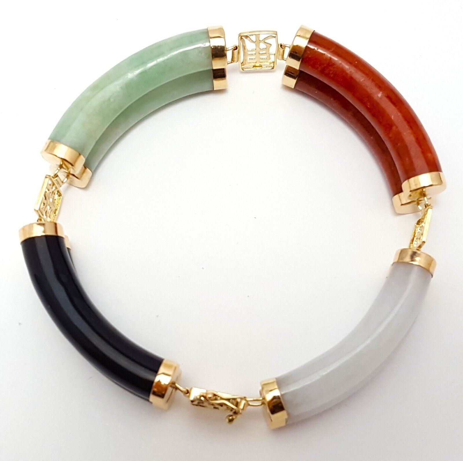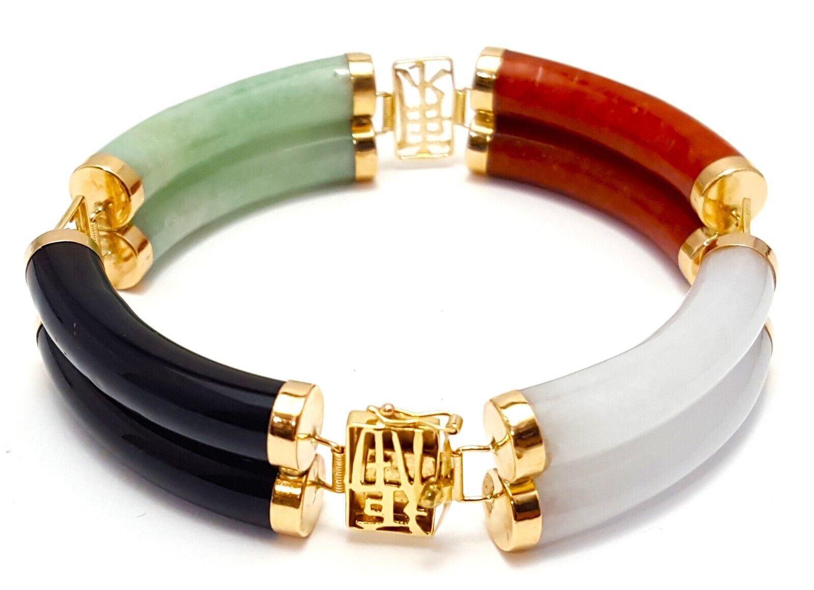 14K Yellow Gold Jade & Onyx Multi Colored Gemstone Bracelet