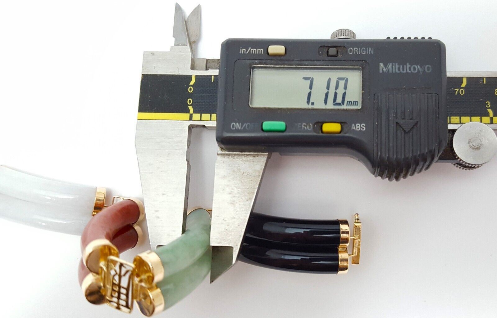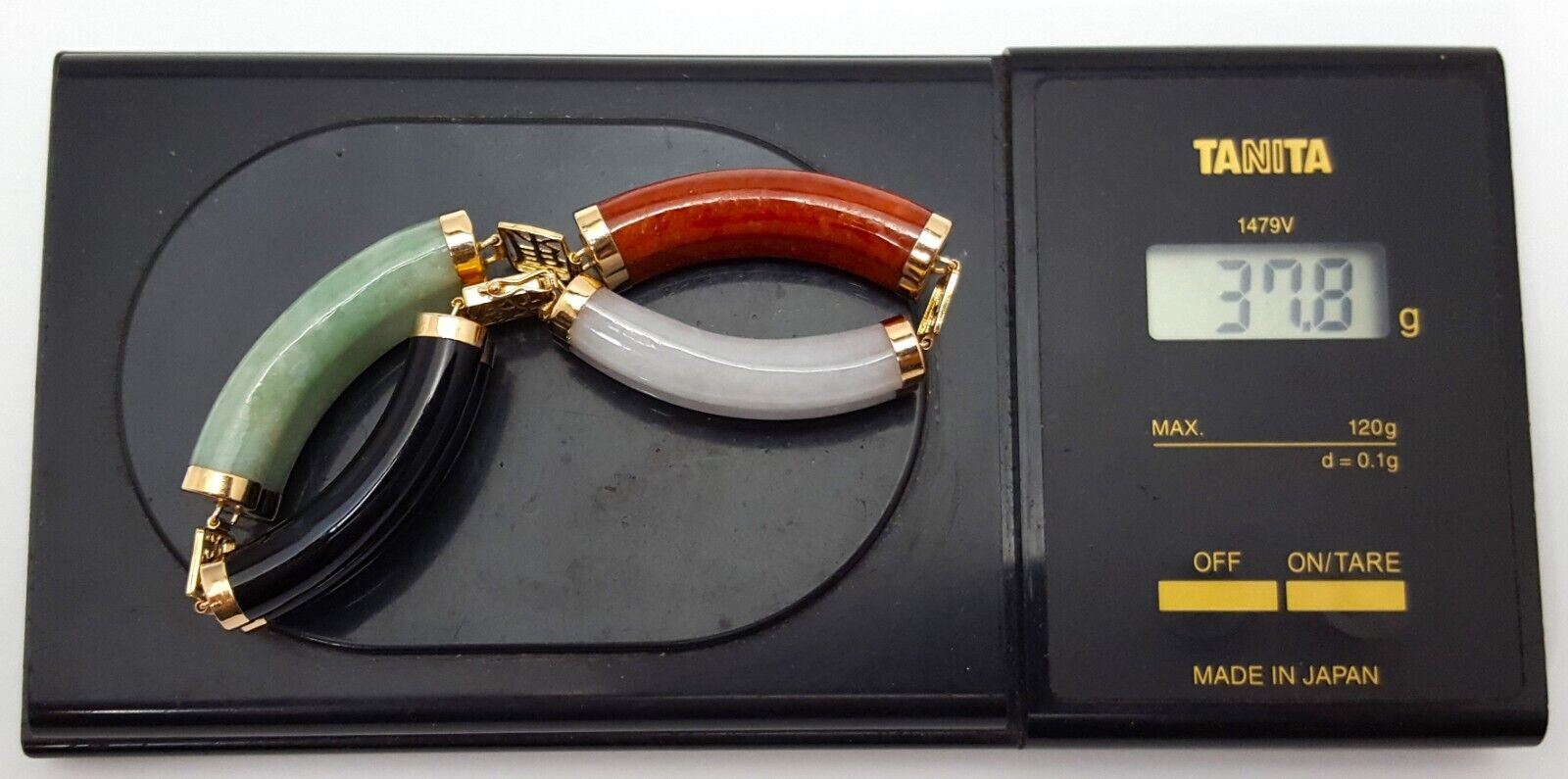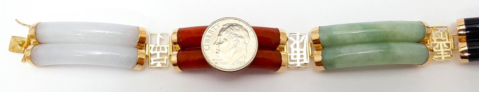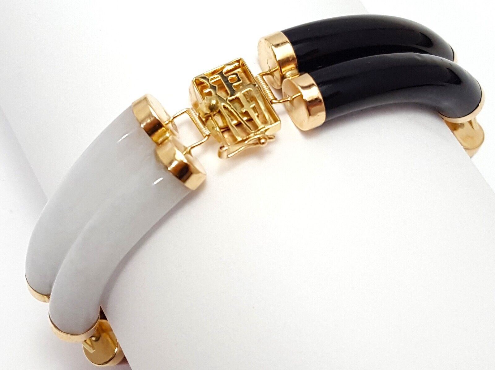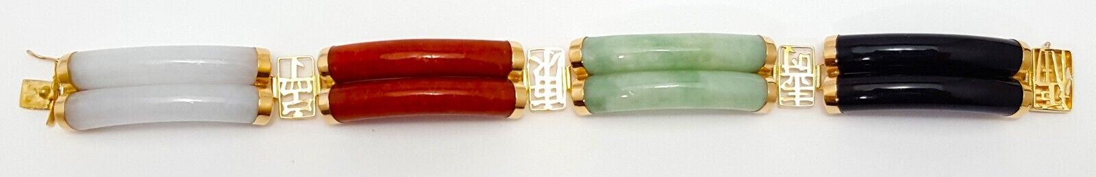 14K Yellow Gold Jade & Onyx Multi Colored Gemstone Bracelet