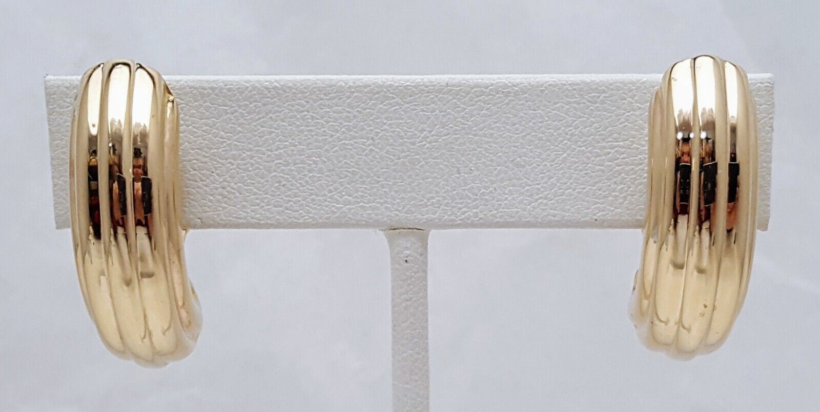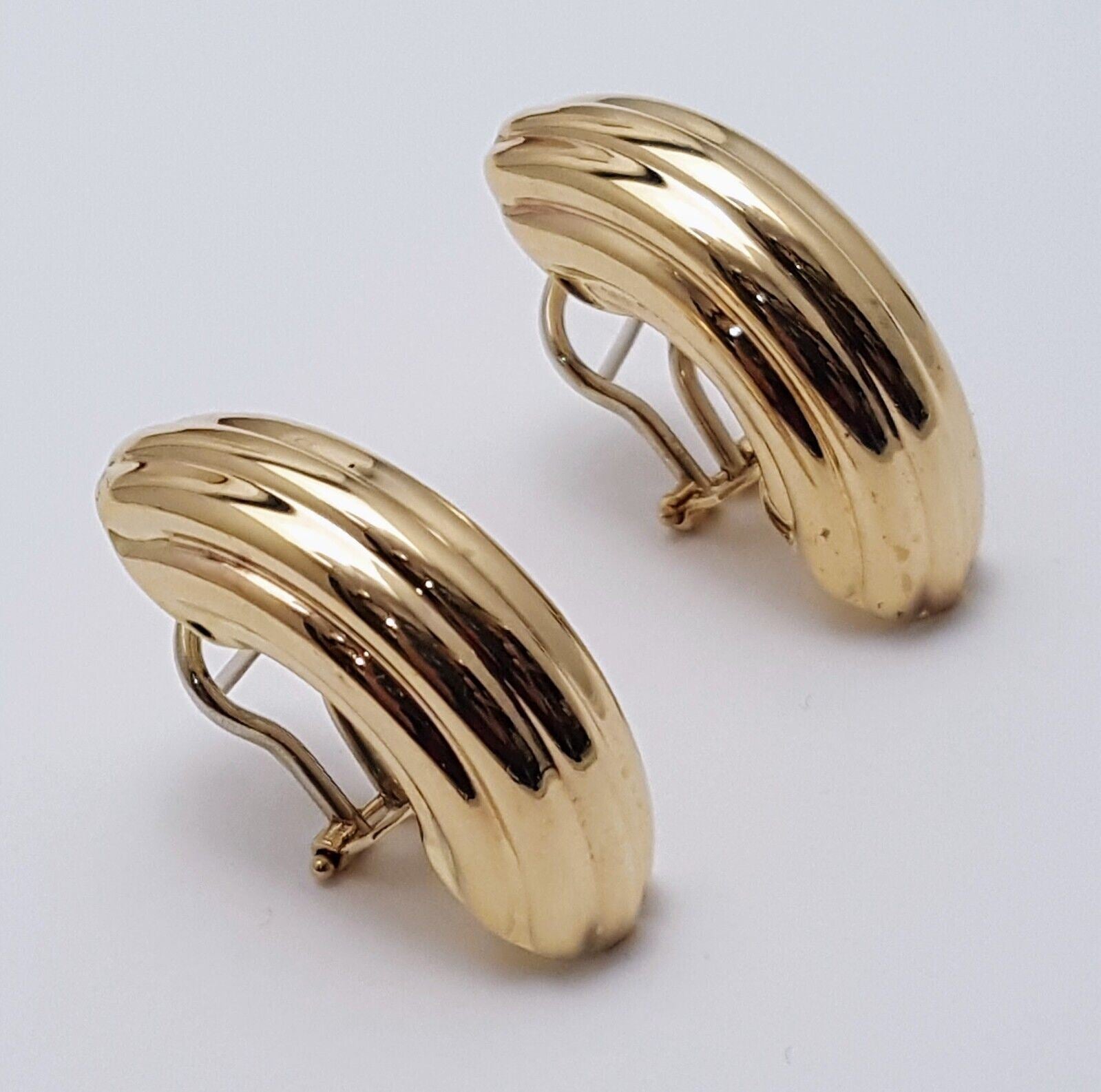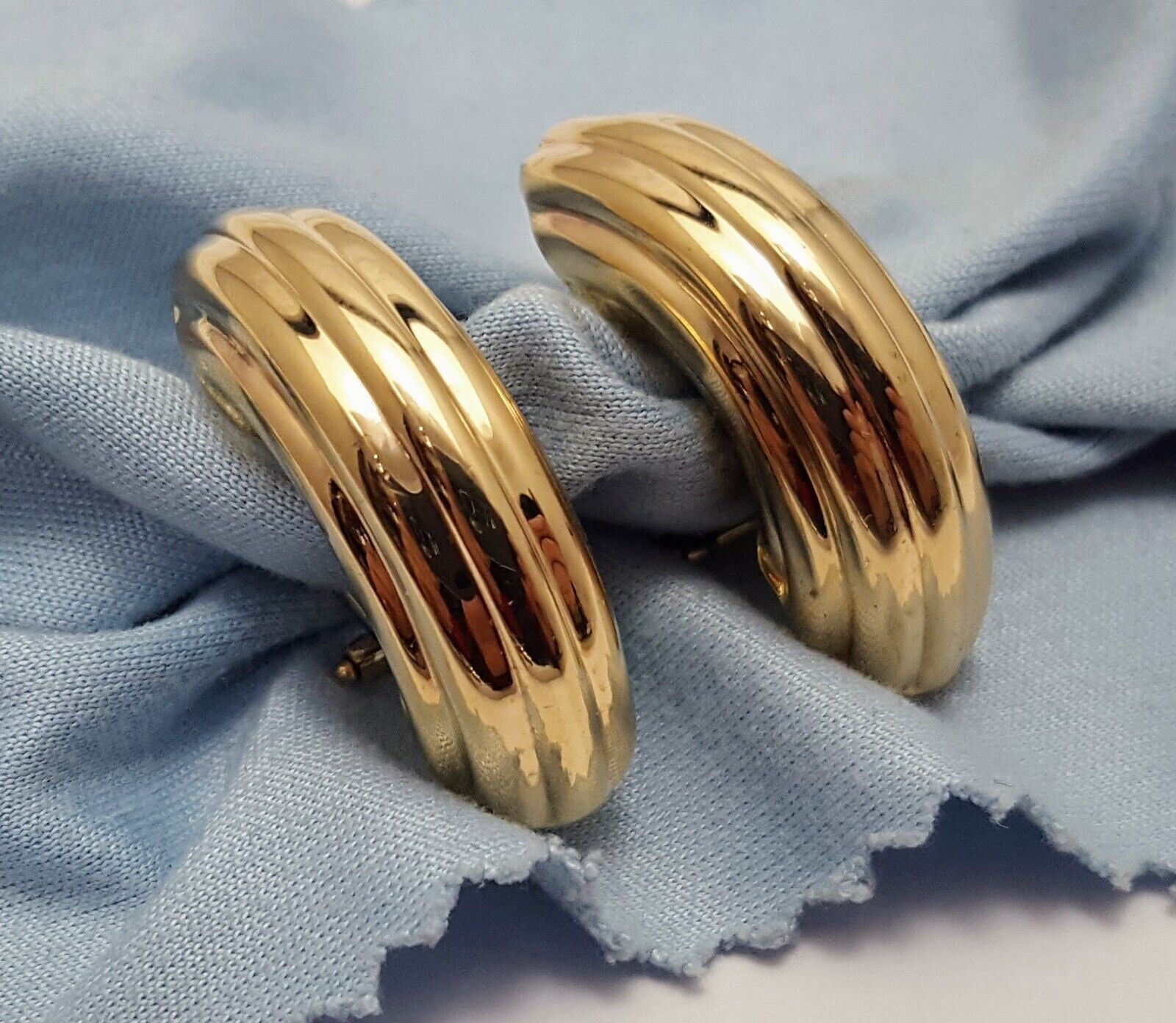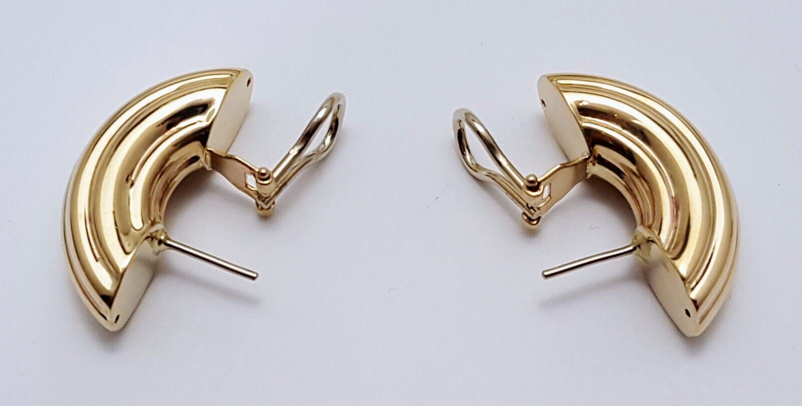 14K Yellow Gold Designer Half Crescent Hoop French Clip Earrings