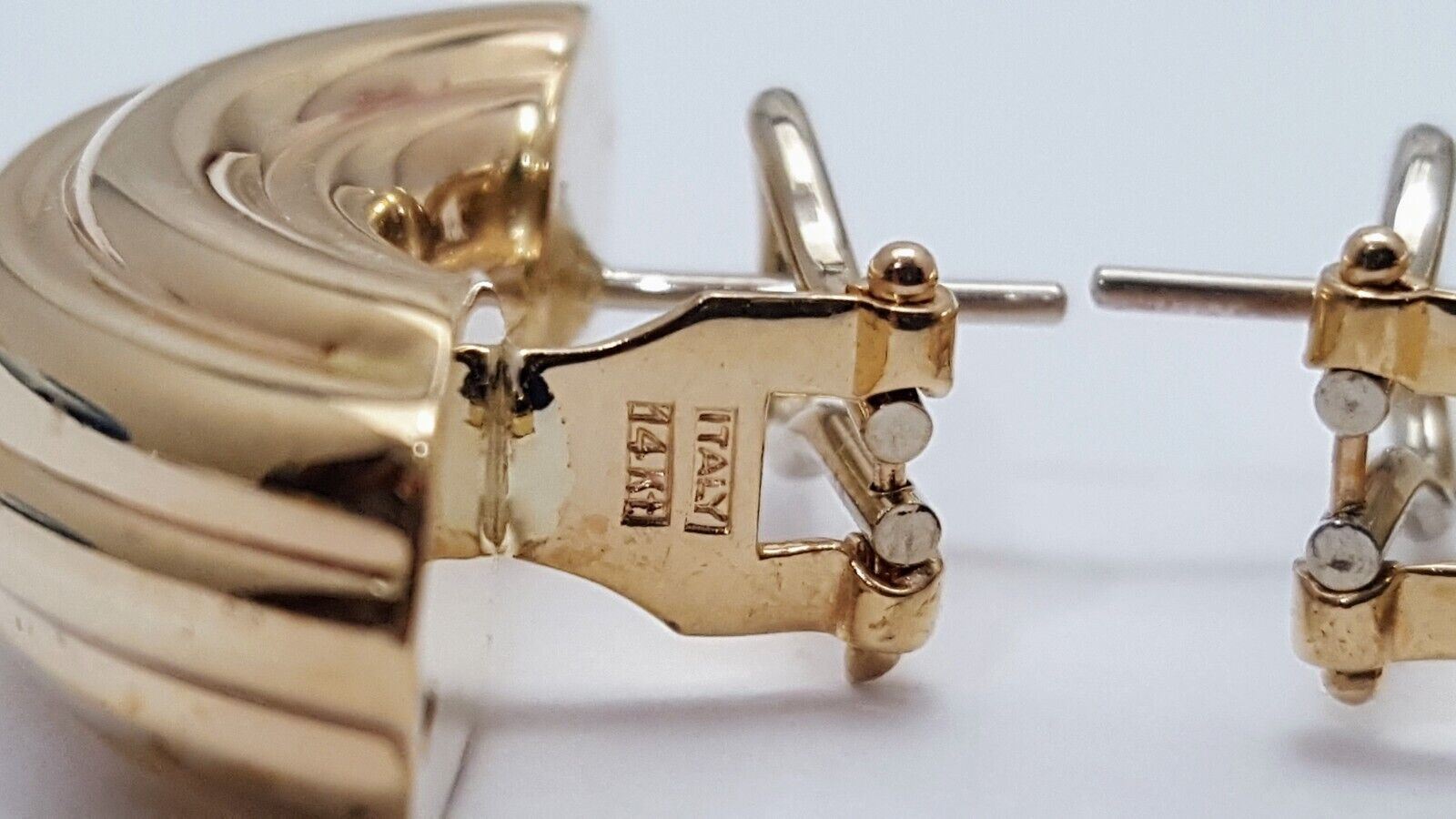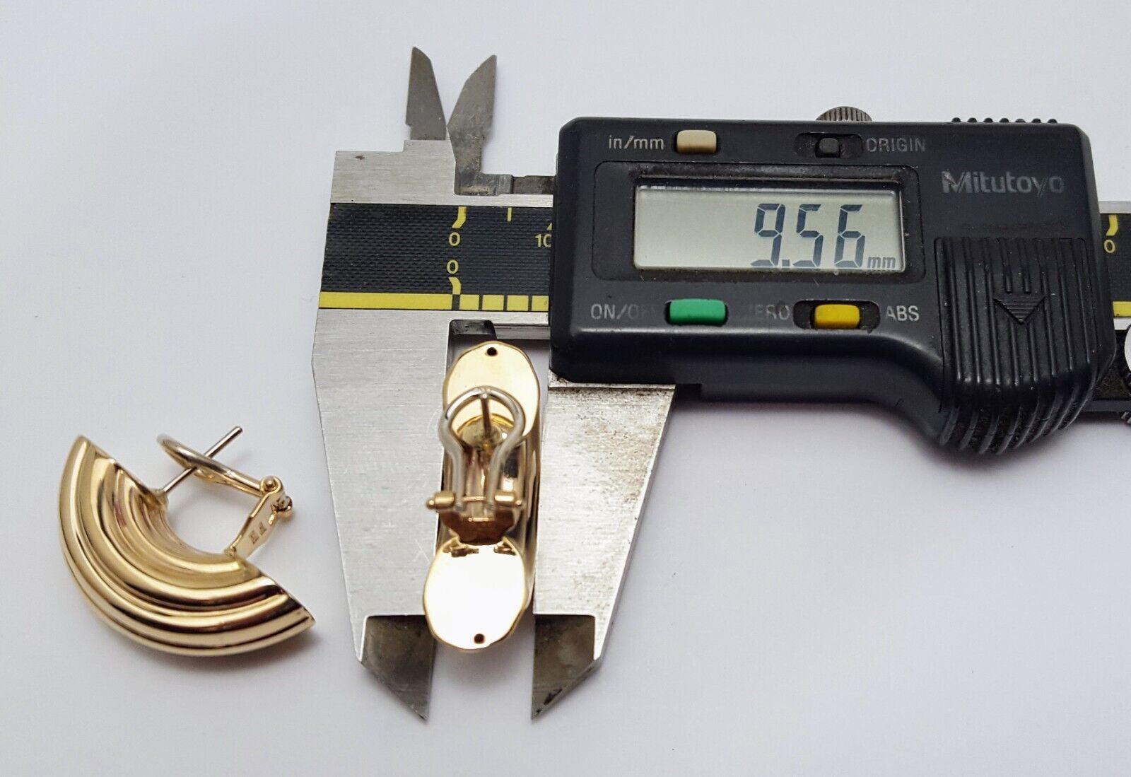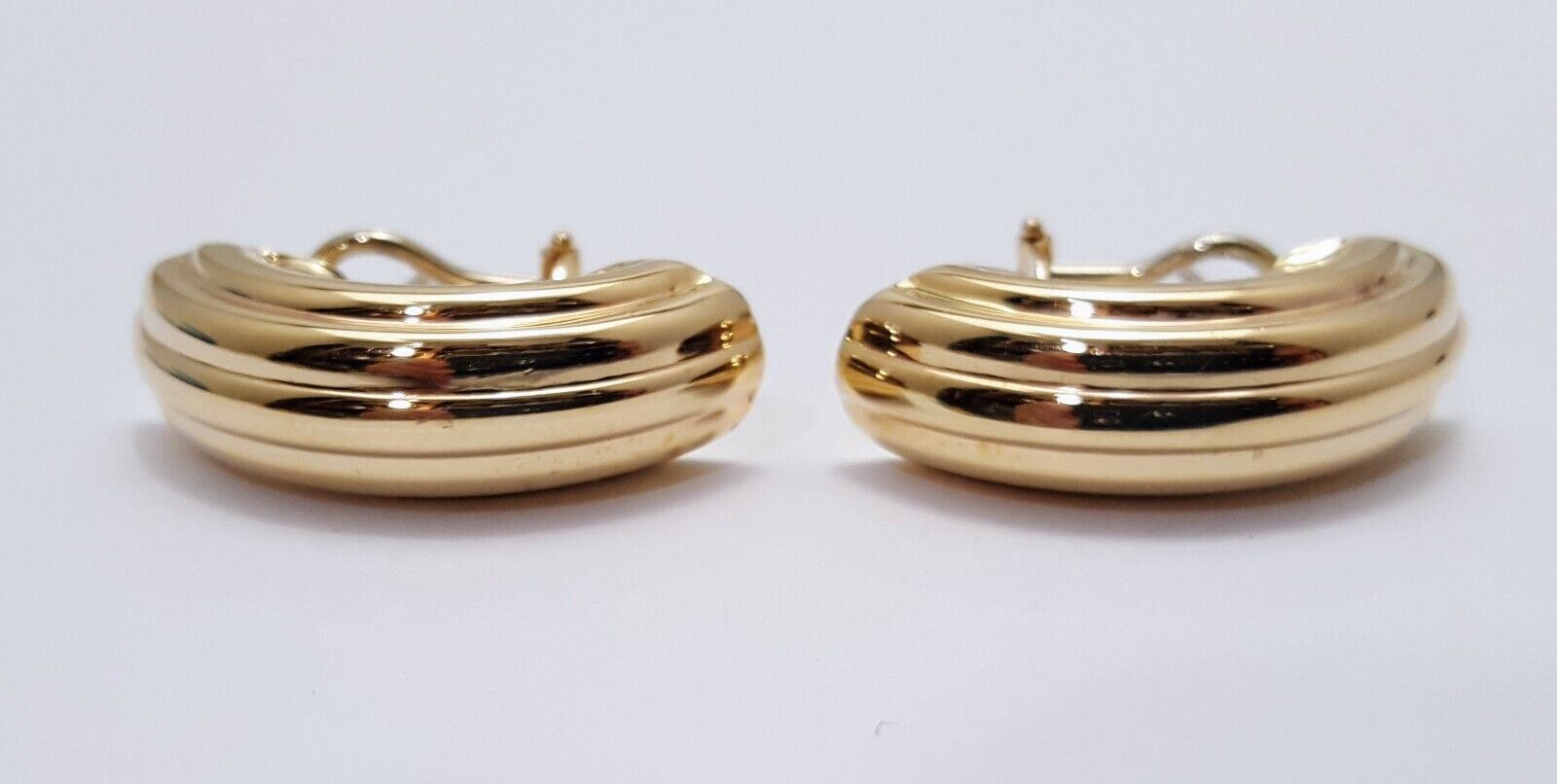 14K Yellow Gold Designer Half Crescent Hoop French Clip Earrings