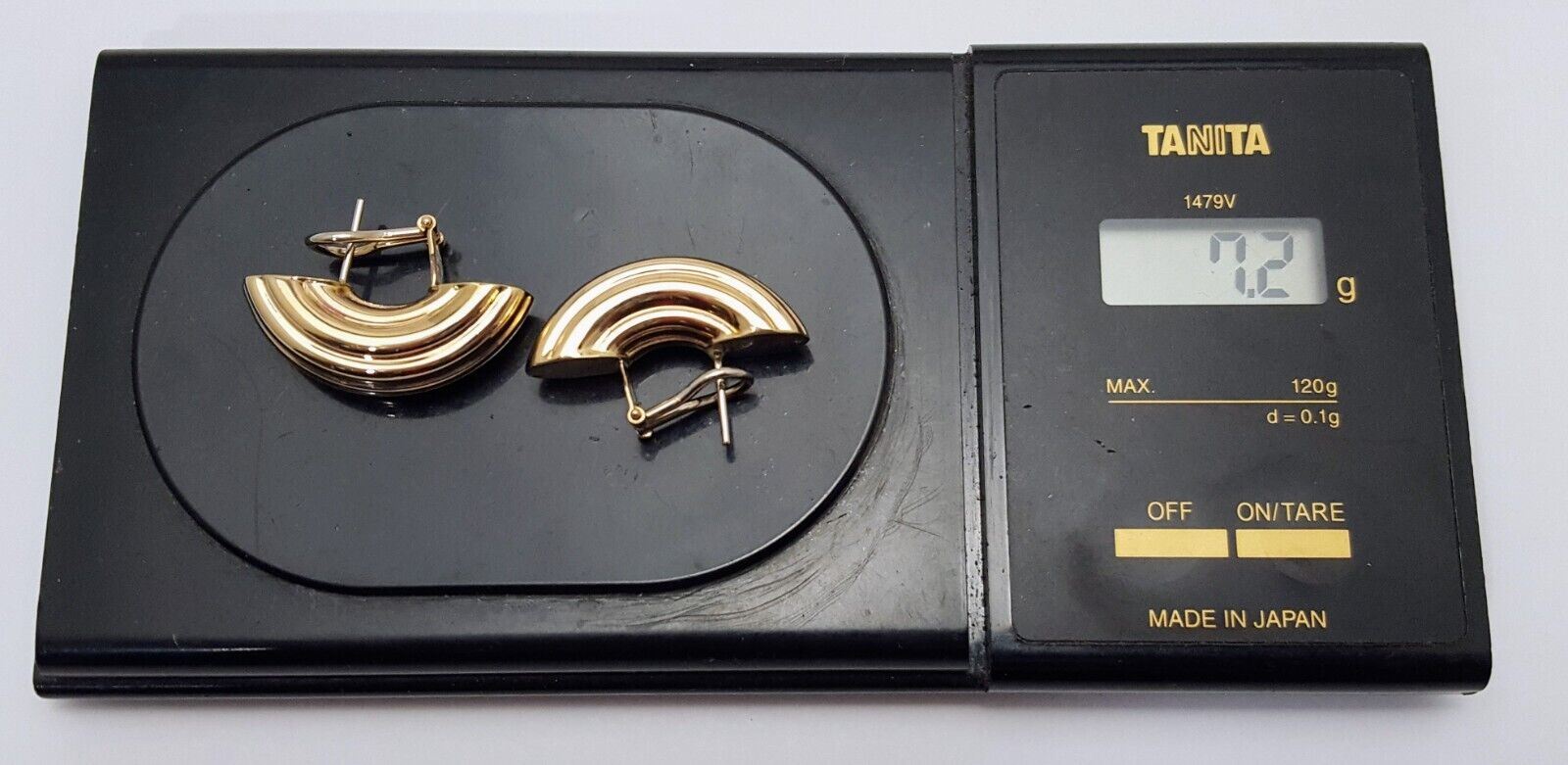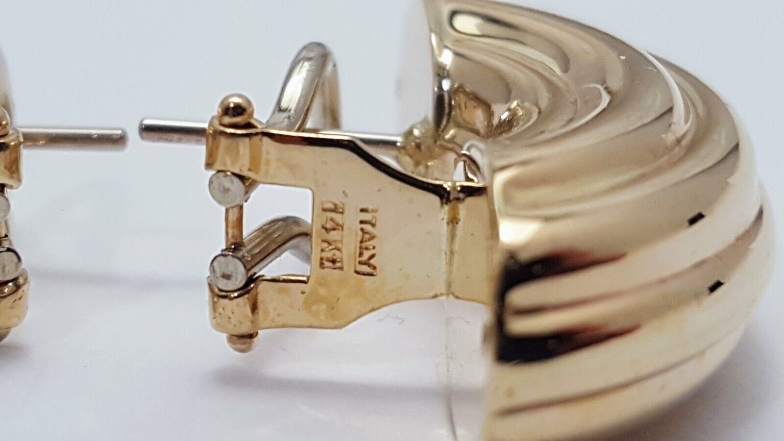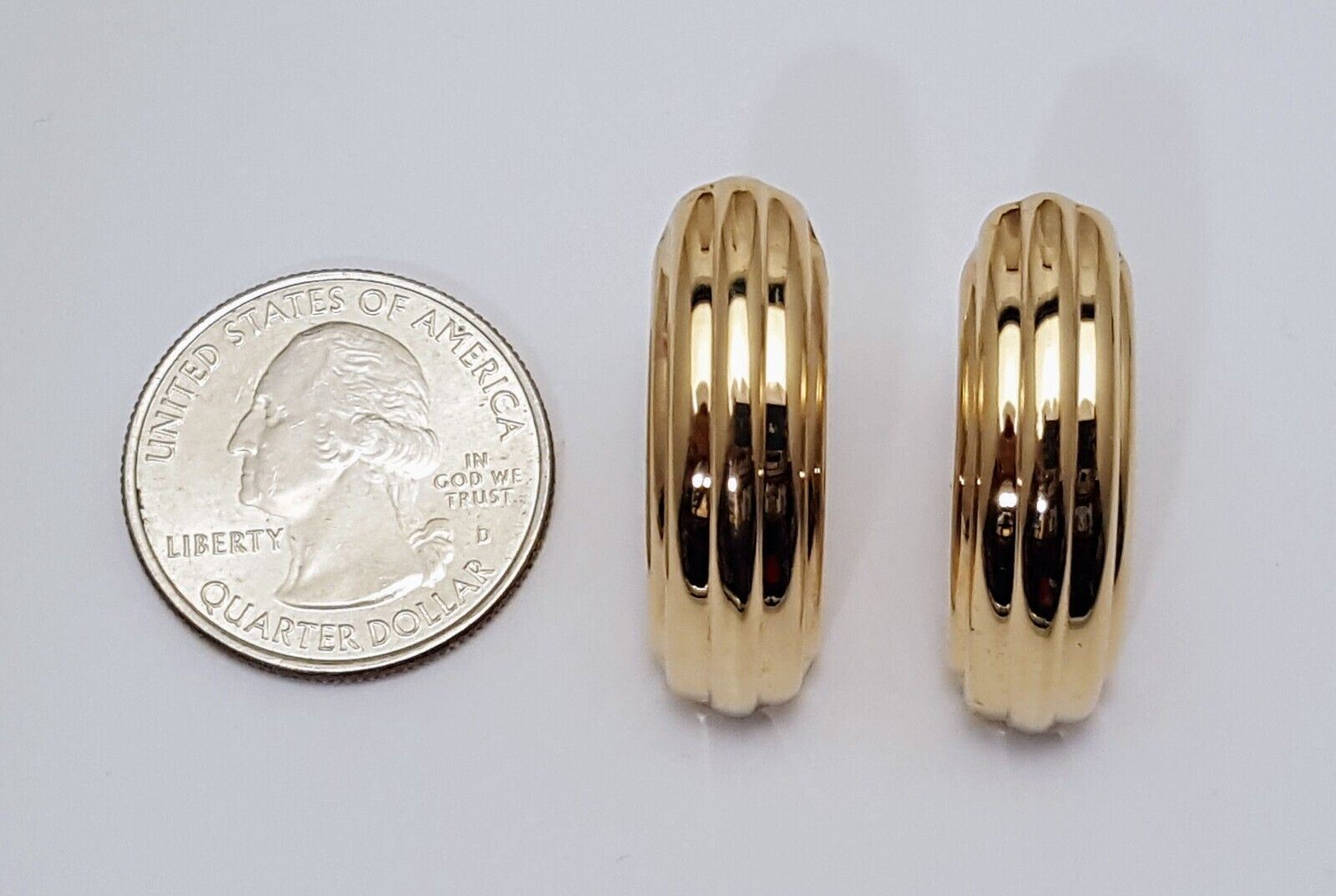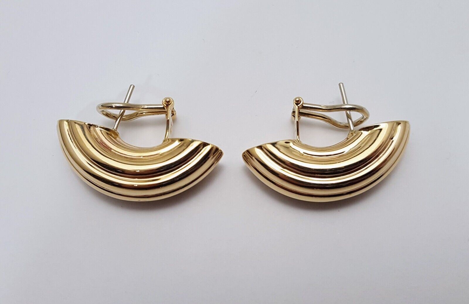 14K Yellow Gold Designer Half Crescent Hoop French Clip Earrings