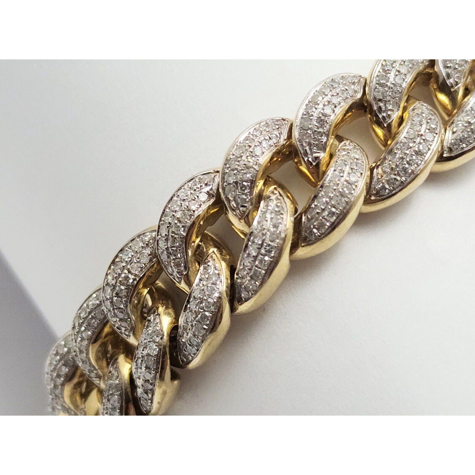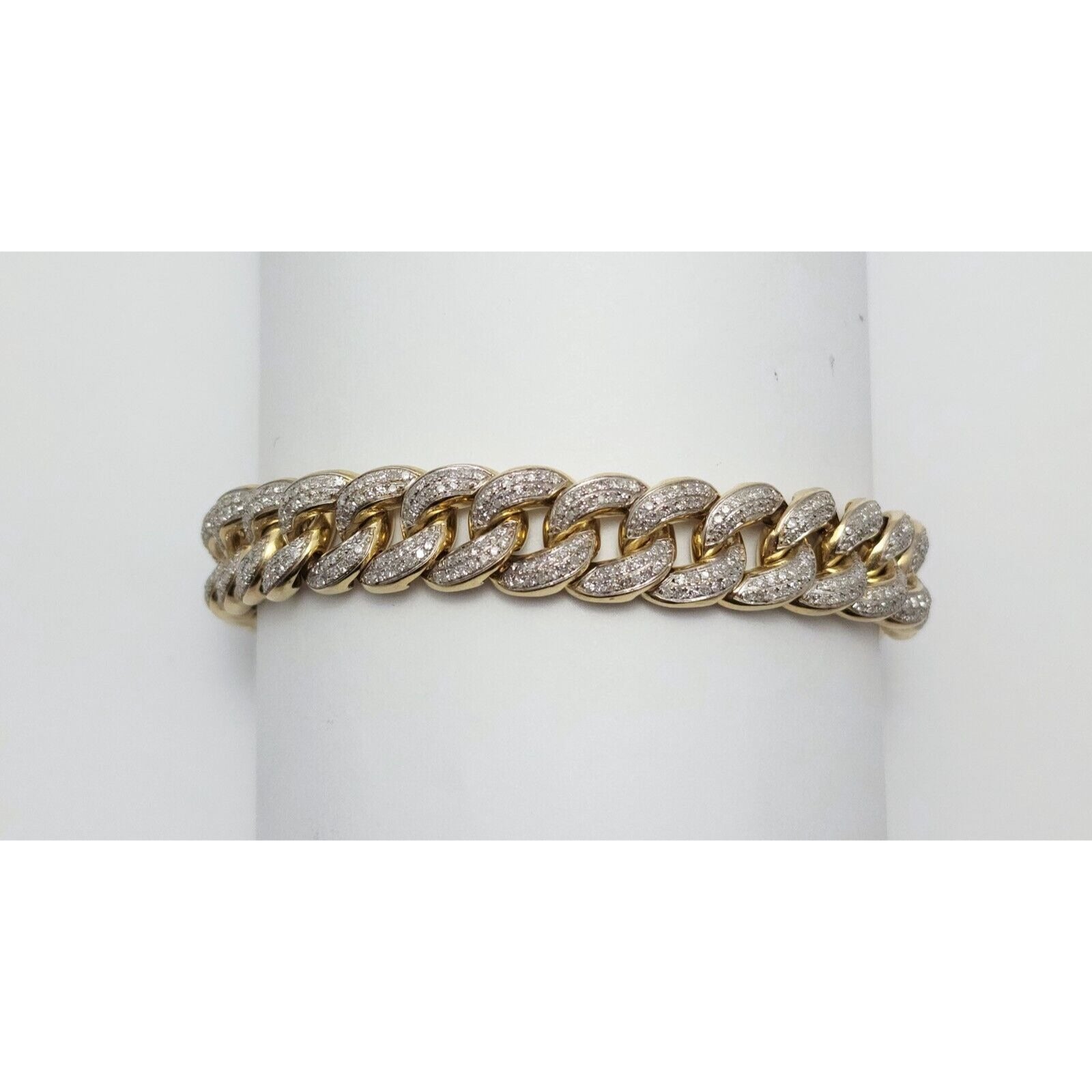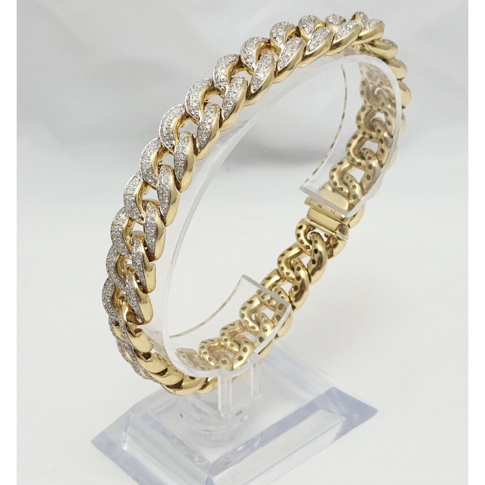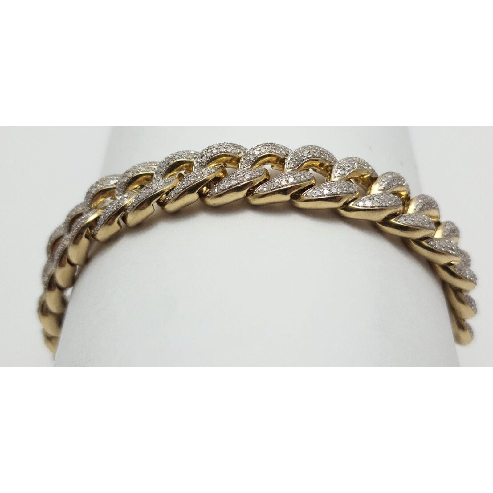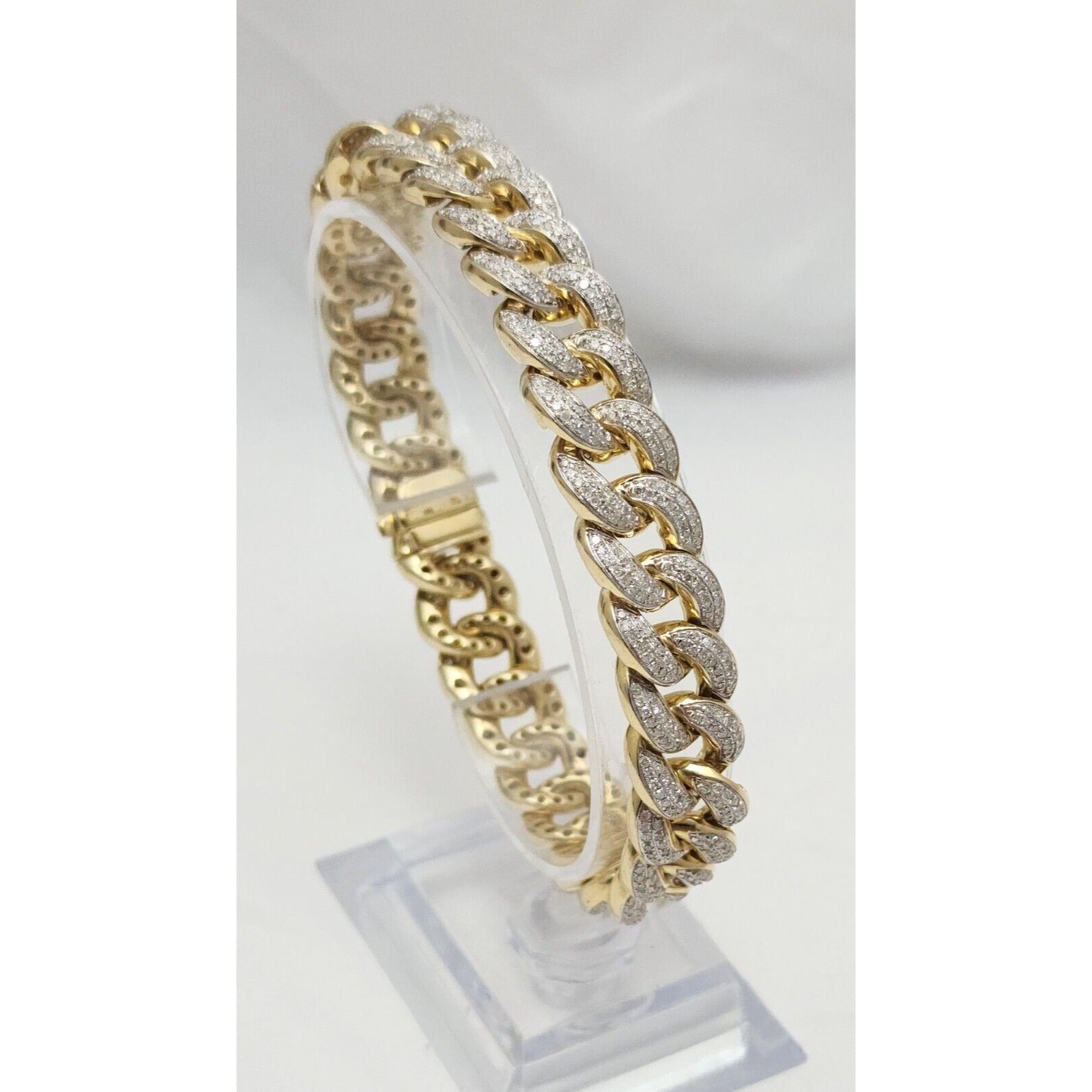 14K Solid Multi Tone Gold Diamond Cuban Link Bracelet
