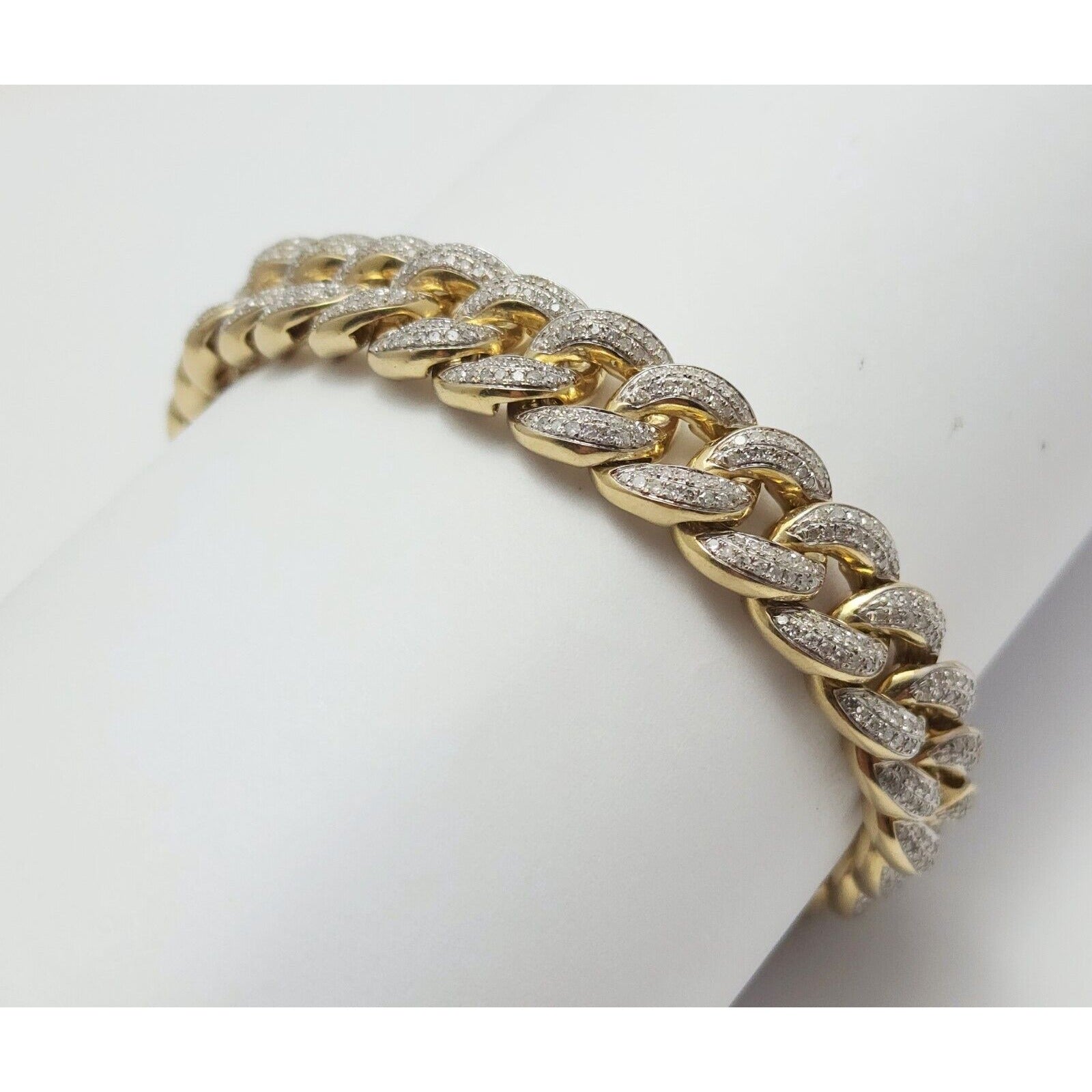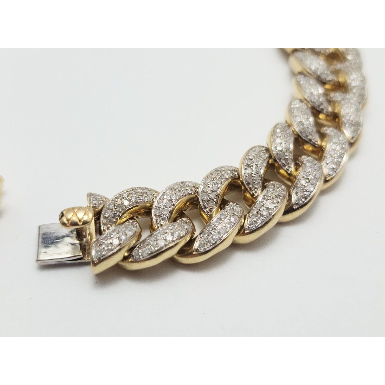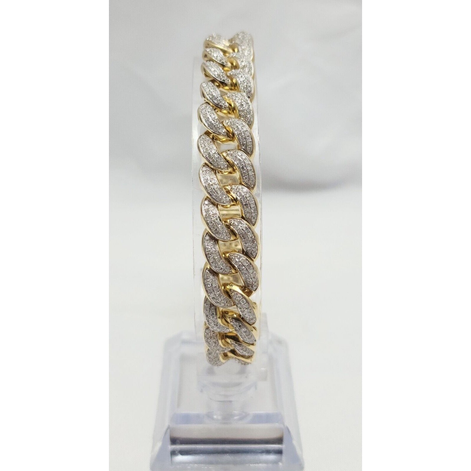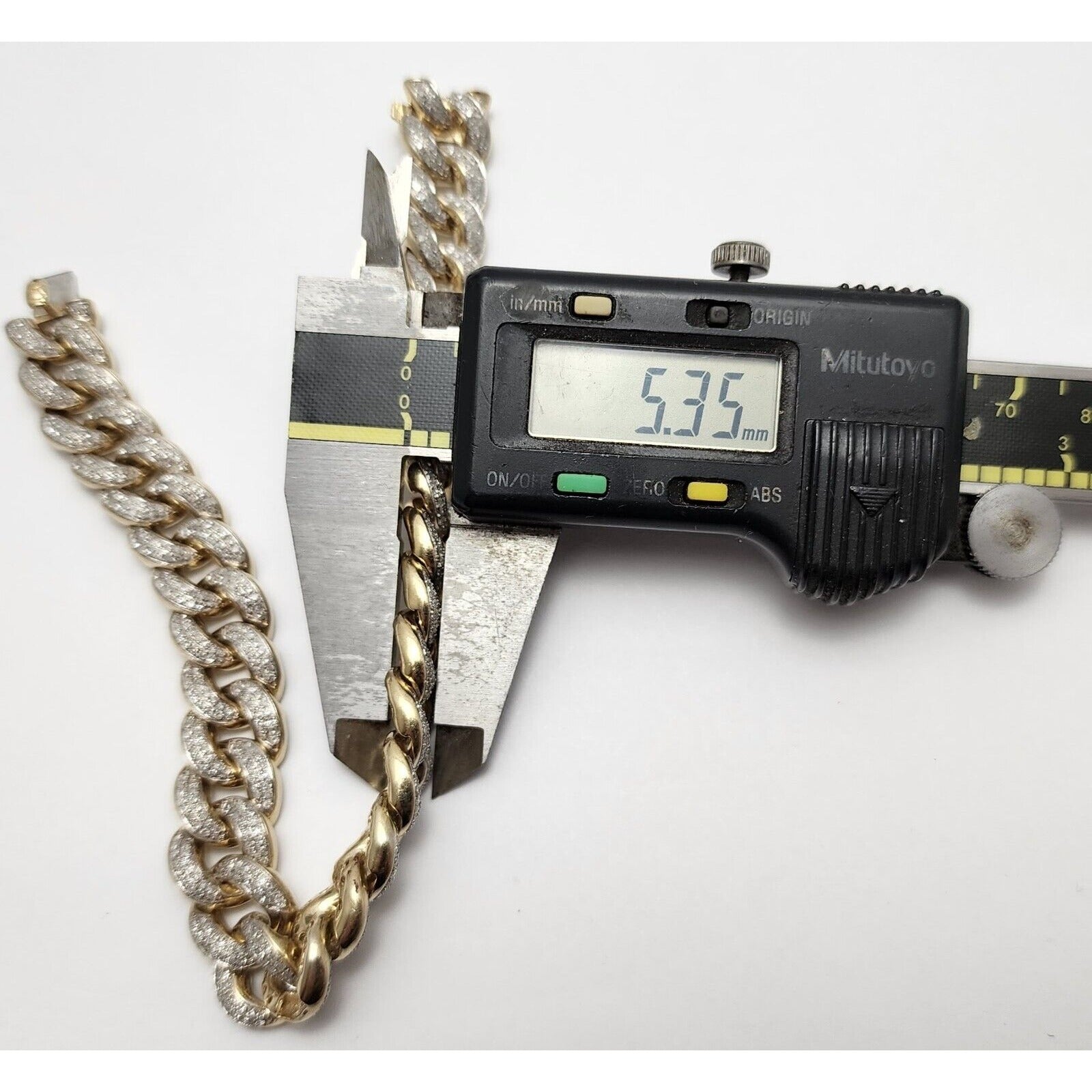 14K Solid Multi Tone Gold Diamond Cuban Link Bracelet