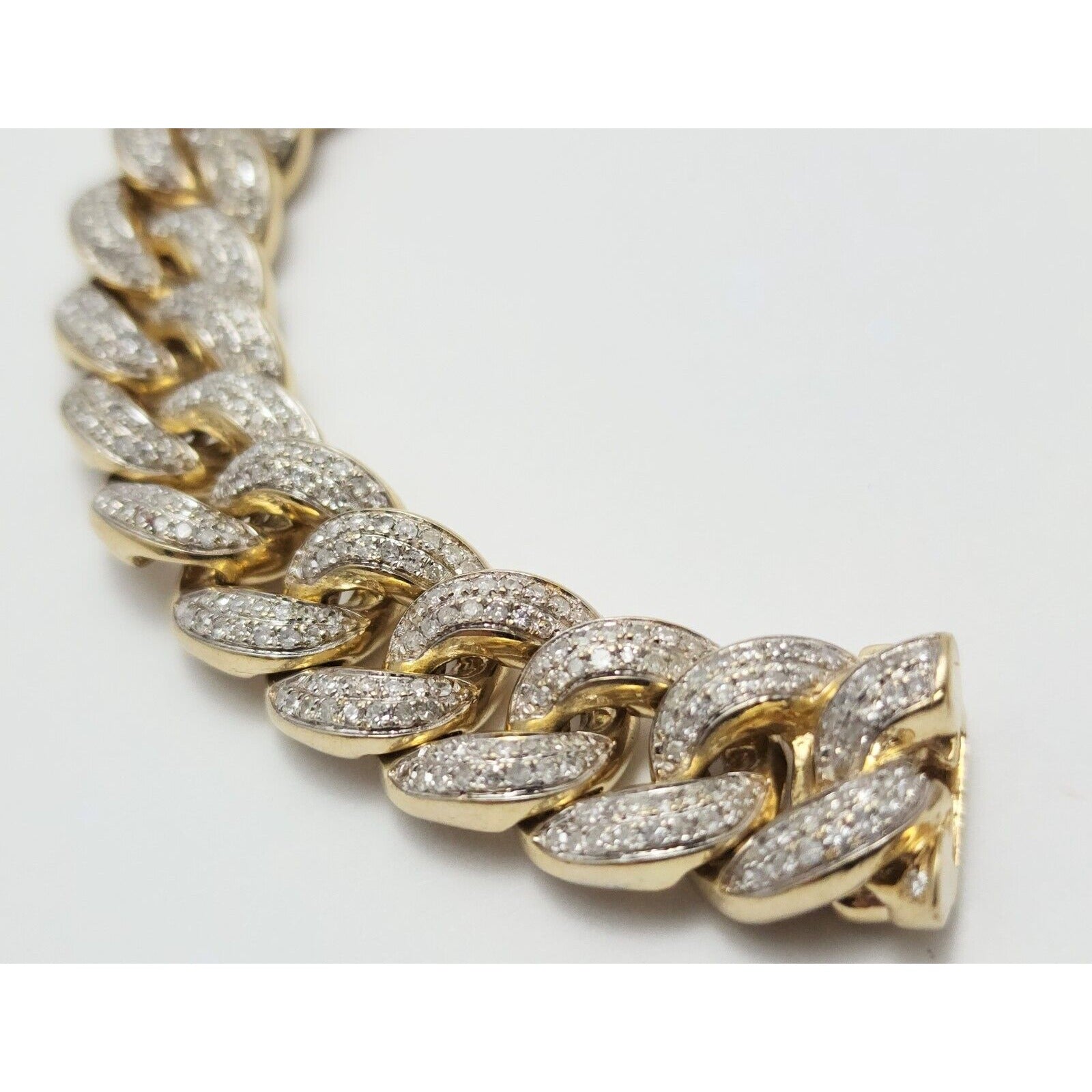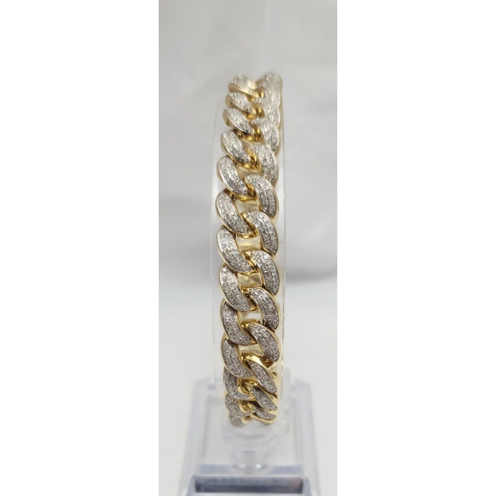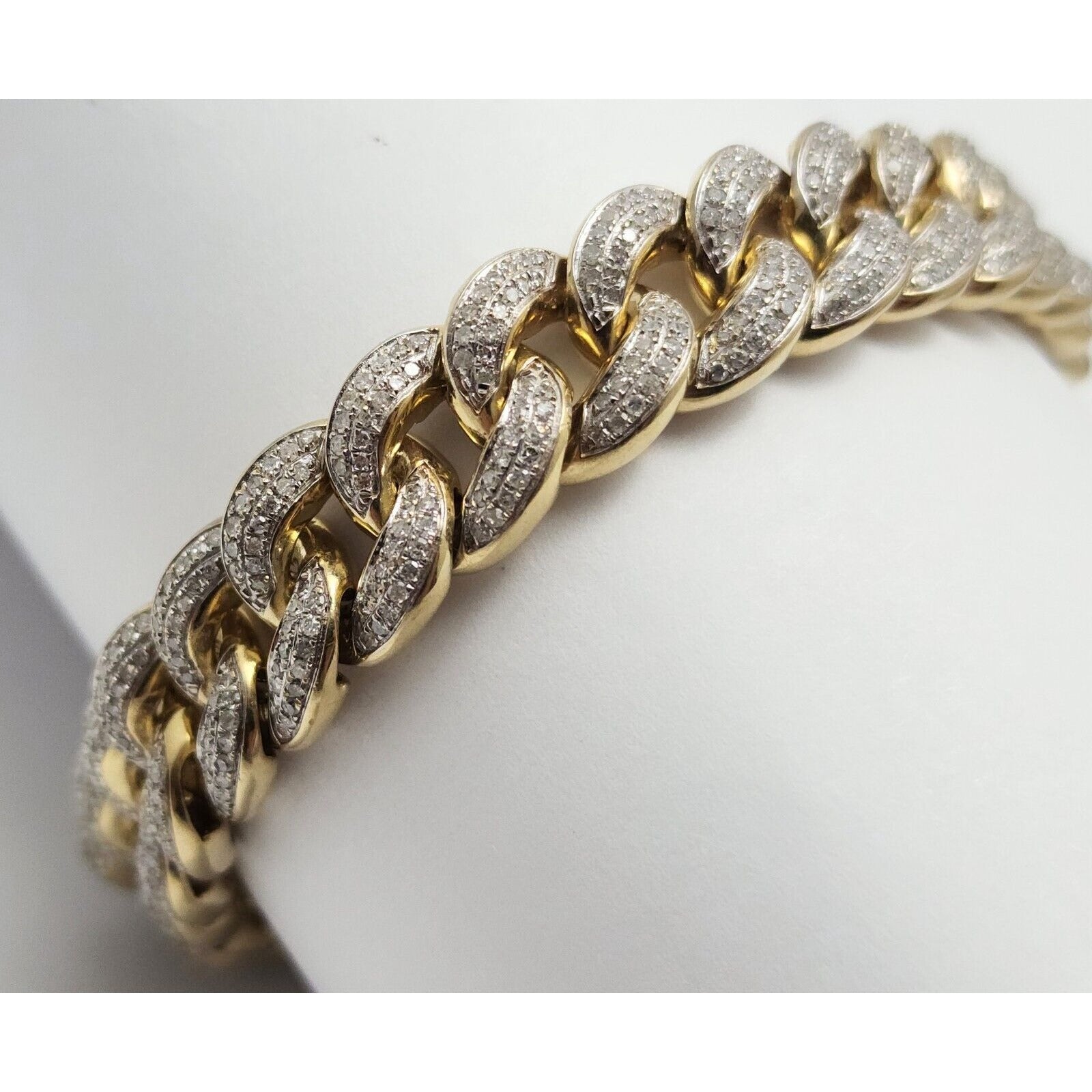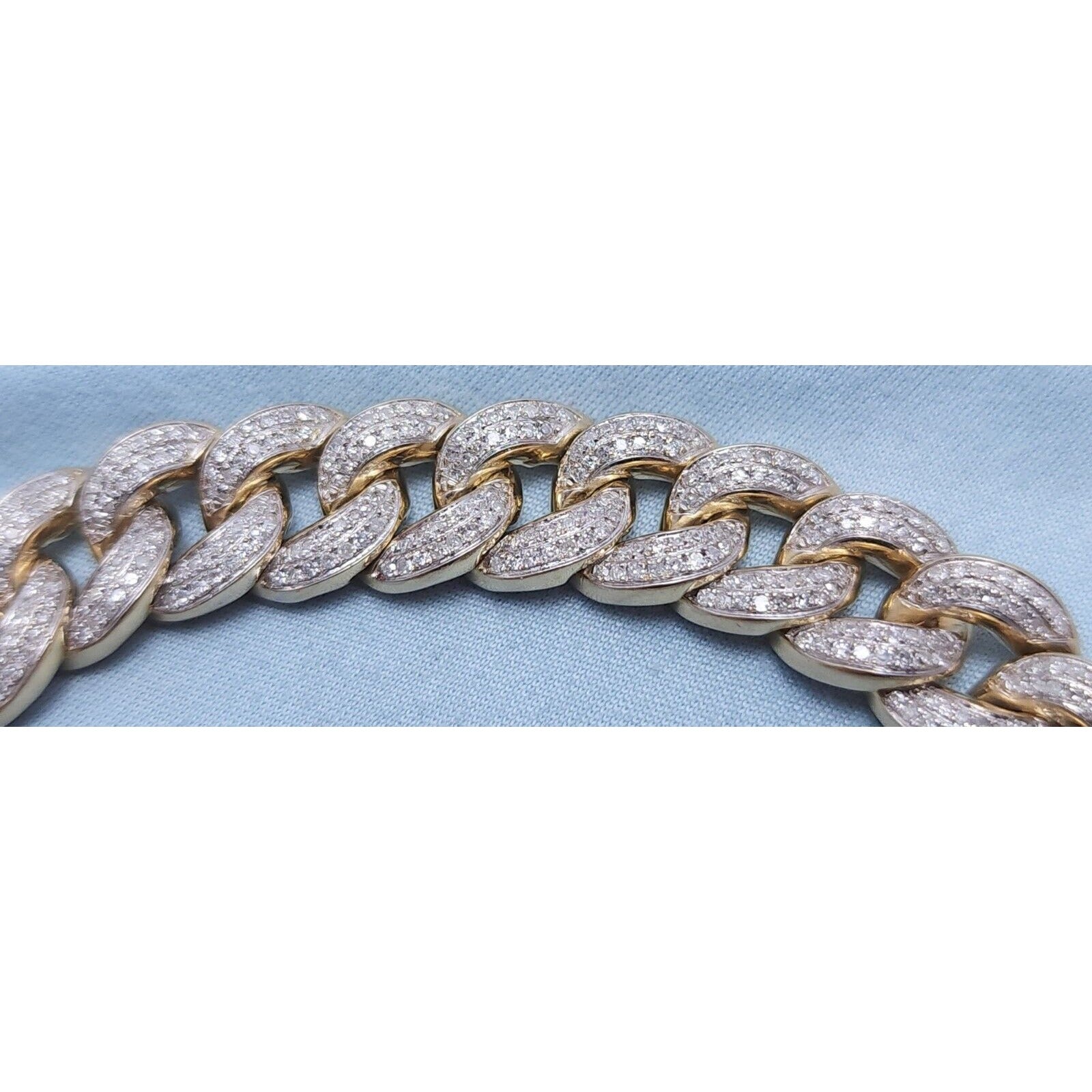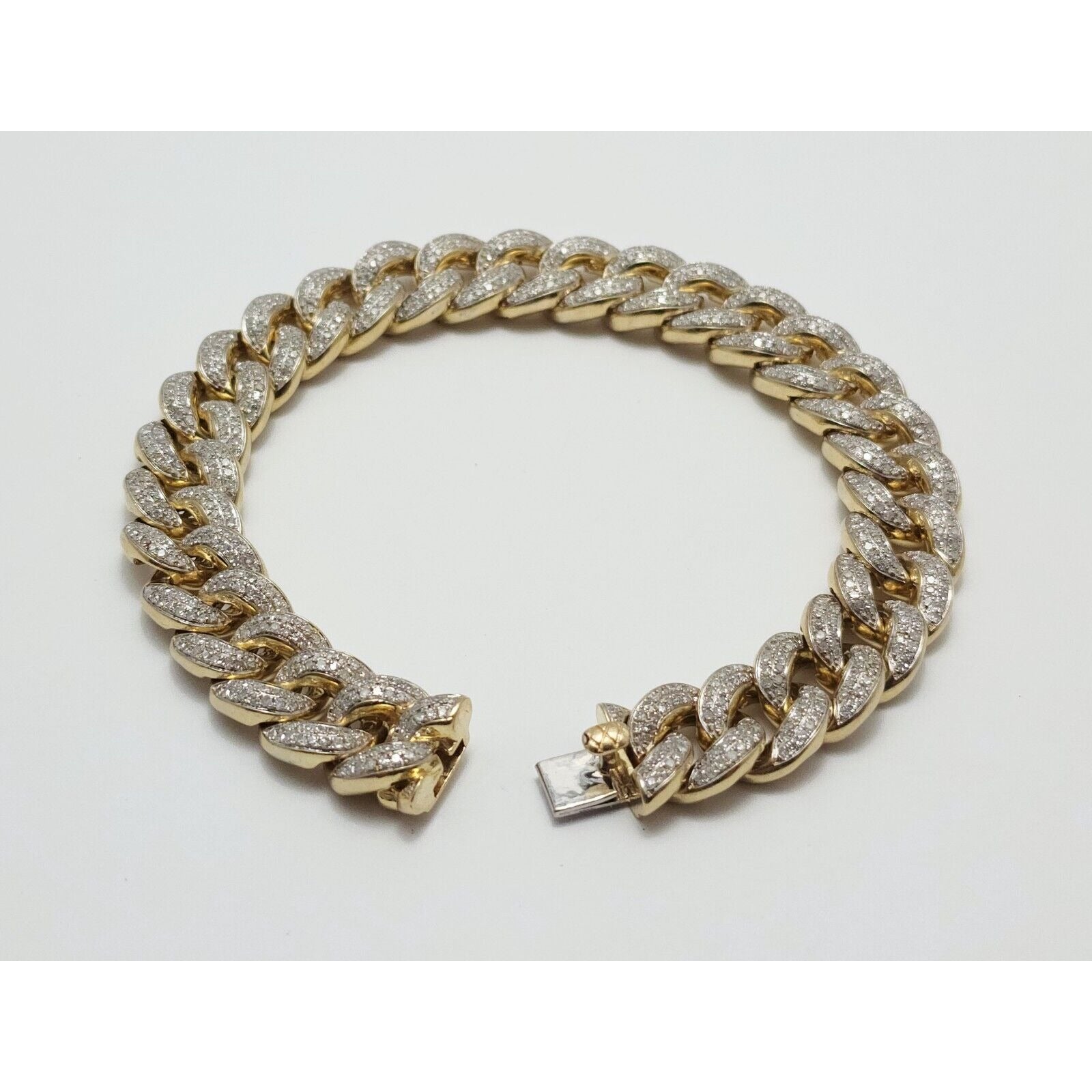14K Solid Multi Tone Gold Diamond Cuban Link Bracelet