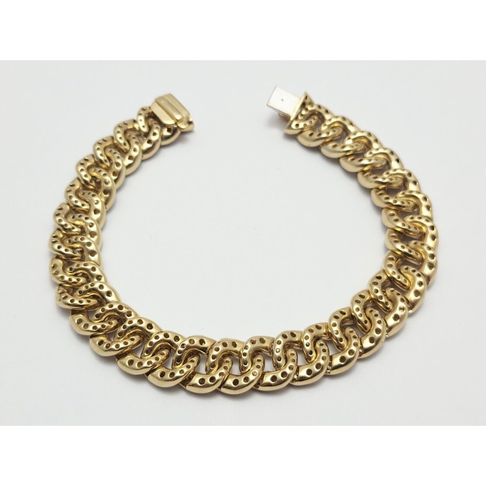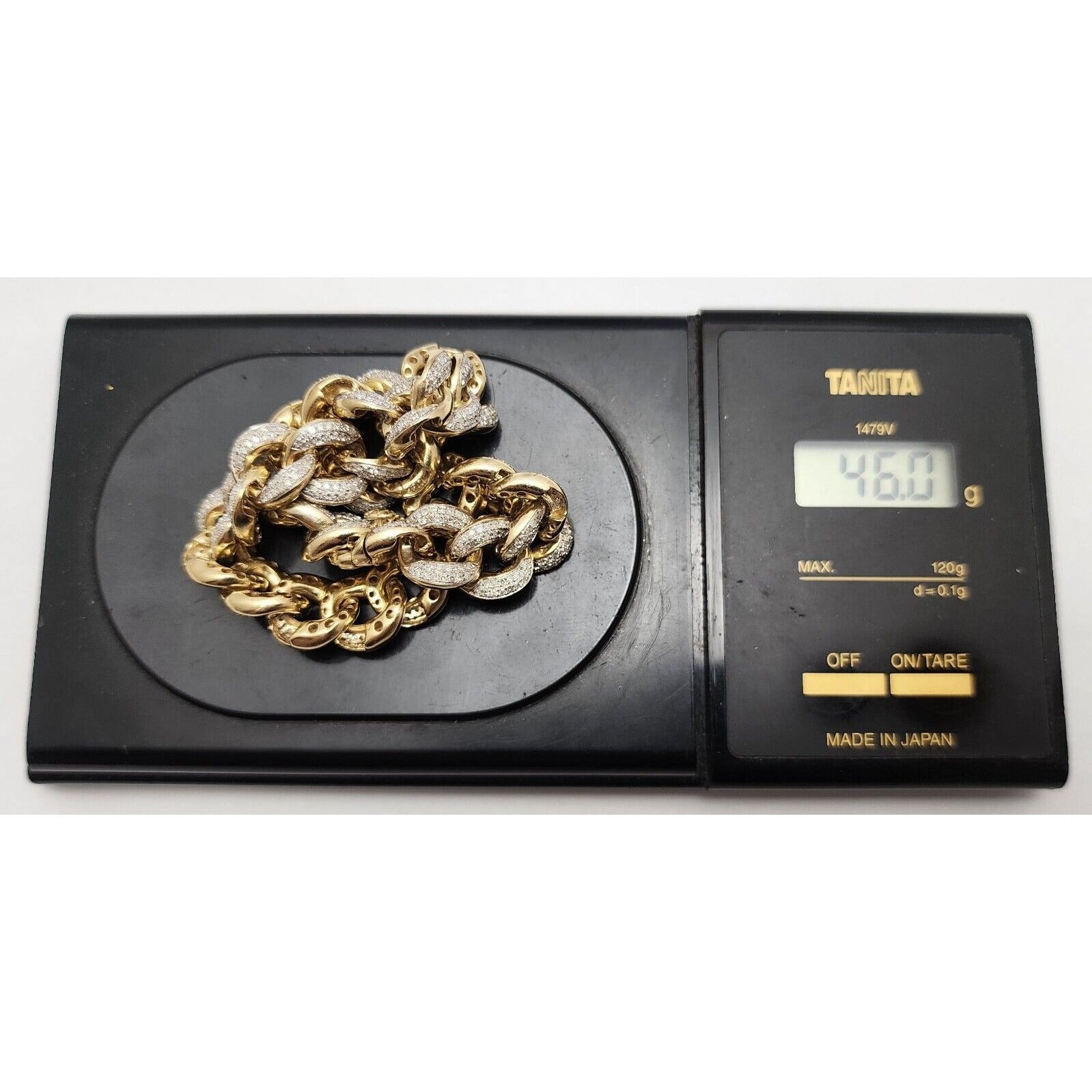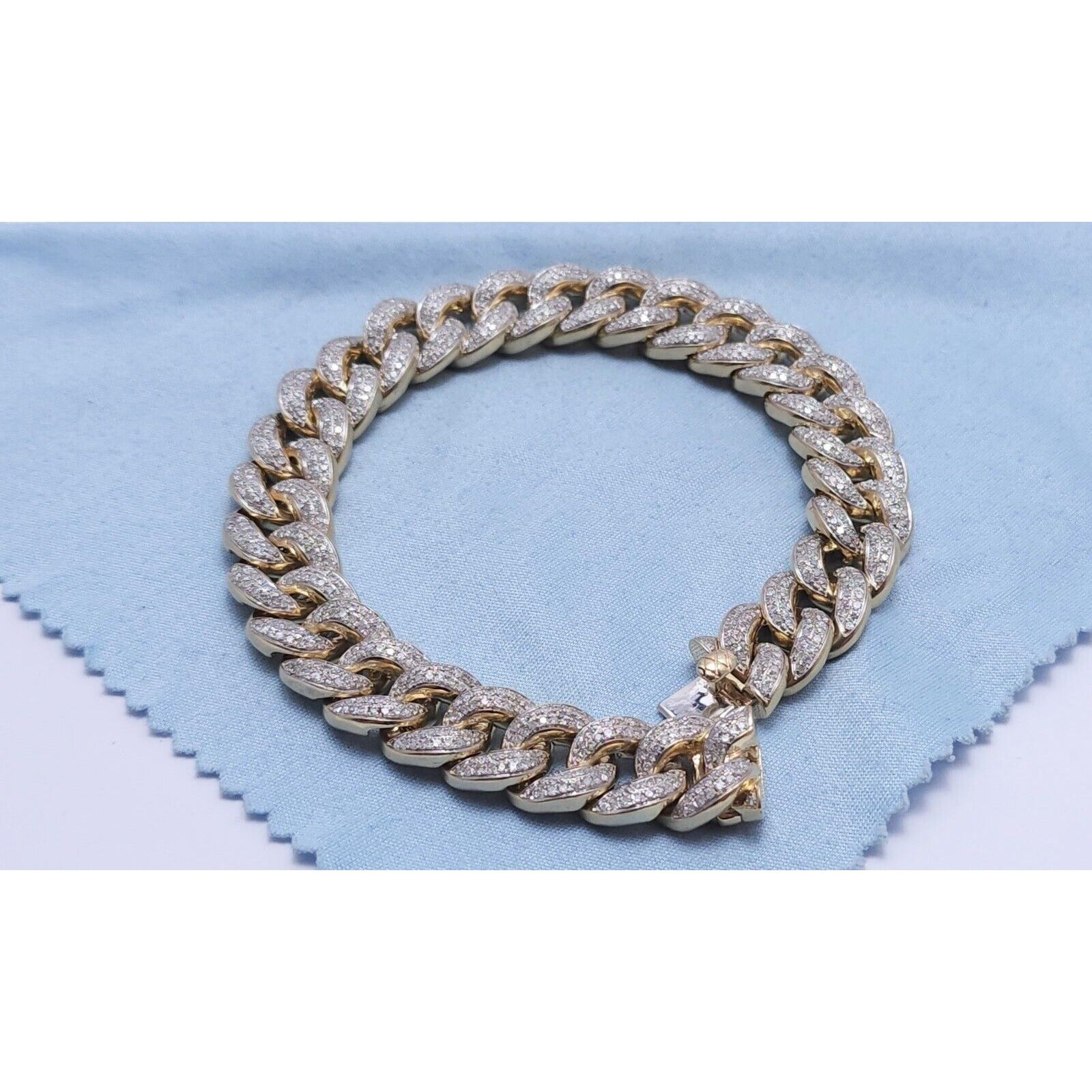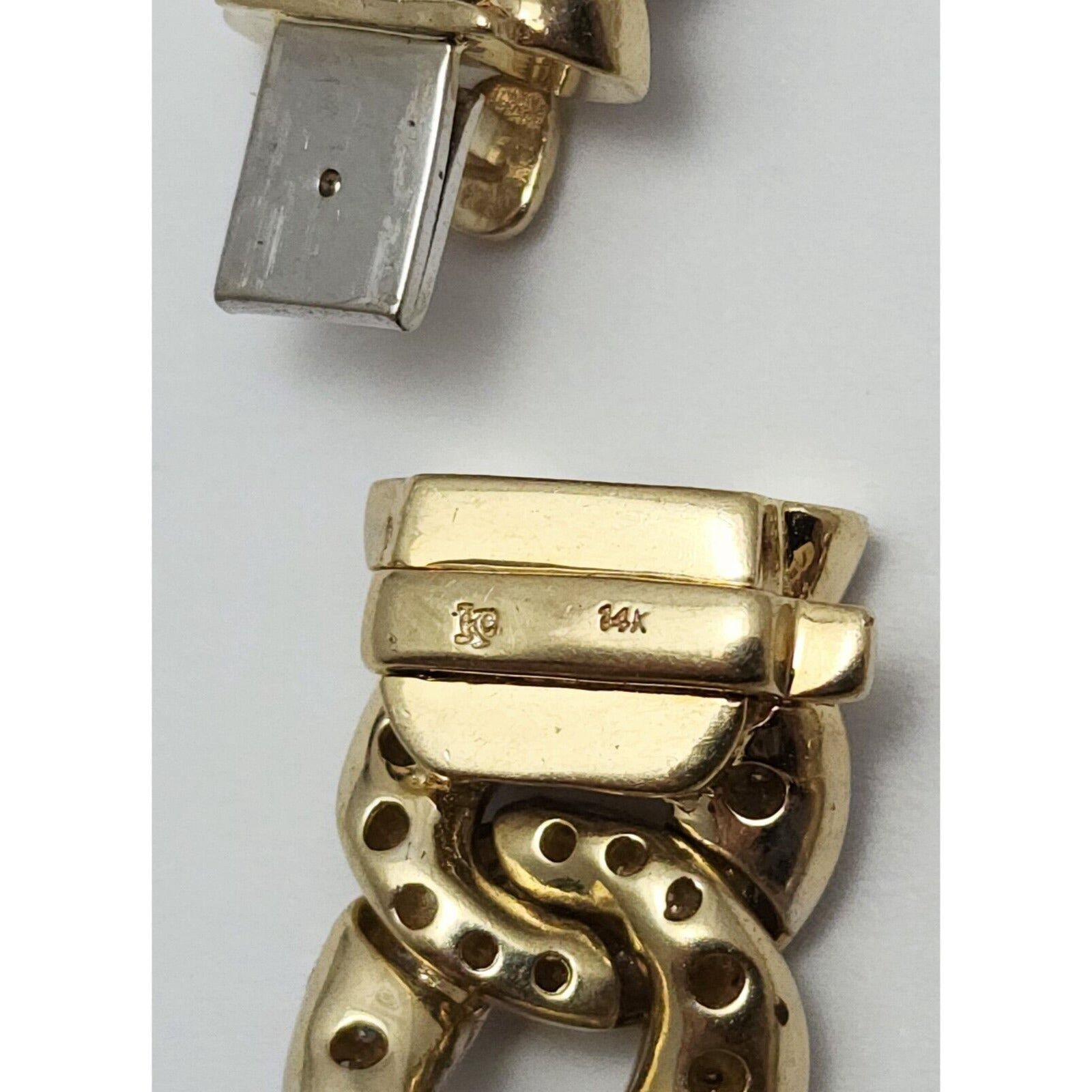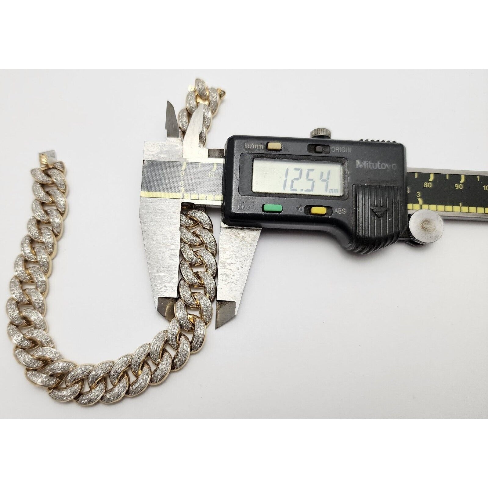 14K Solid Multi Tone Gold Diamond Cuban Link Bracelet