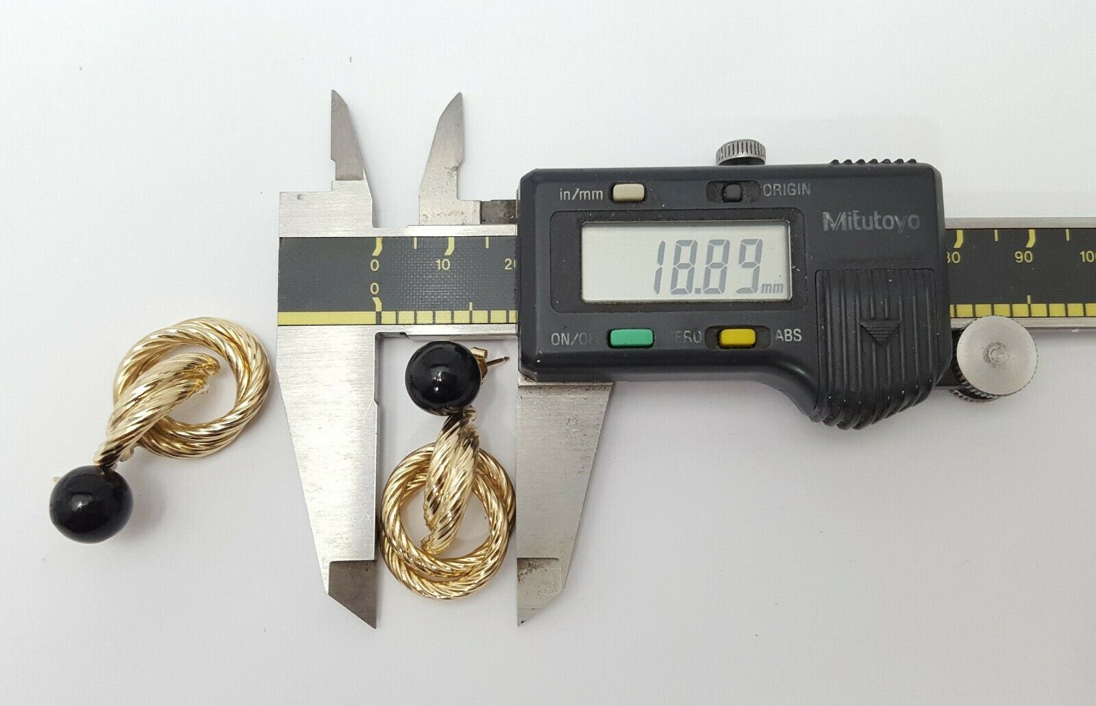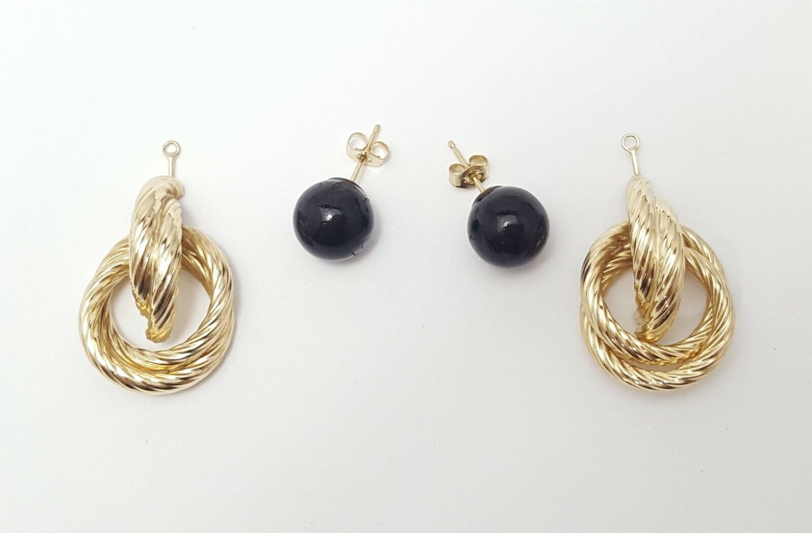 14K Yellow Gold Designer Dangle Hanging Black Ball Jacket Stud Earrings