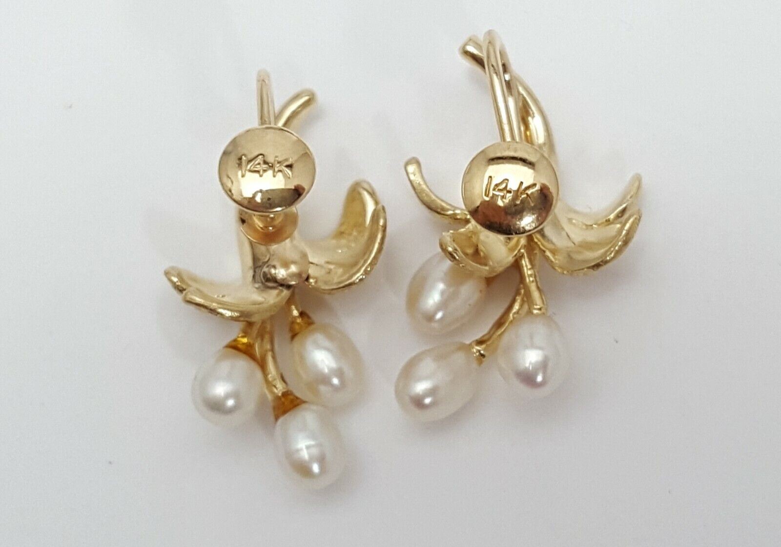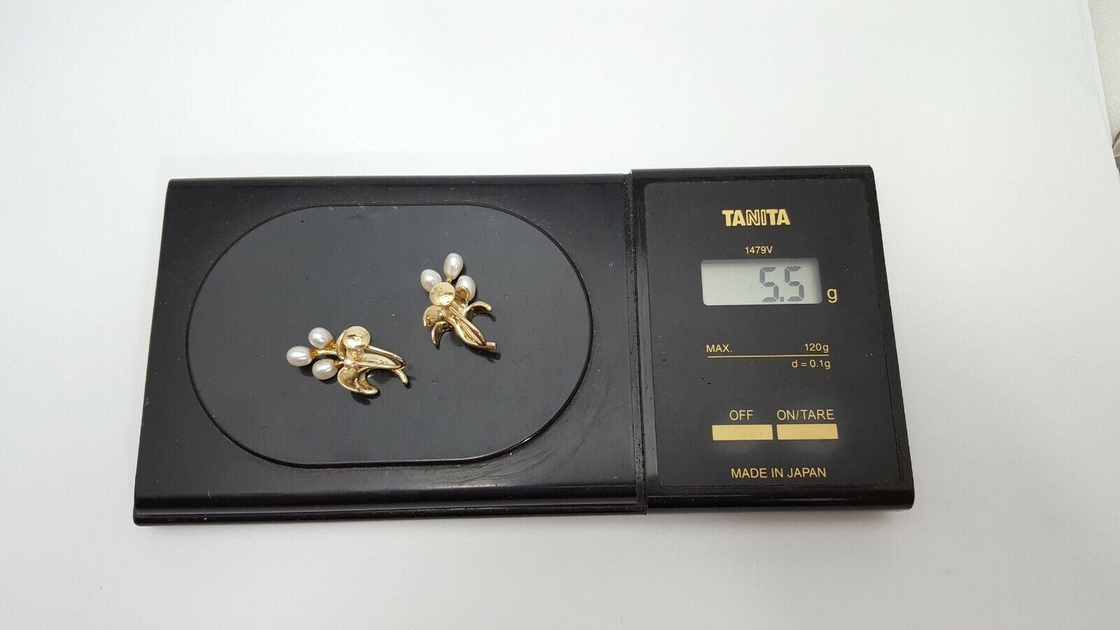14K Yellow Gold Designer Hinged Screw Back Non-Pierced Pearl Earrings