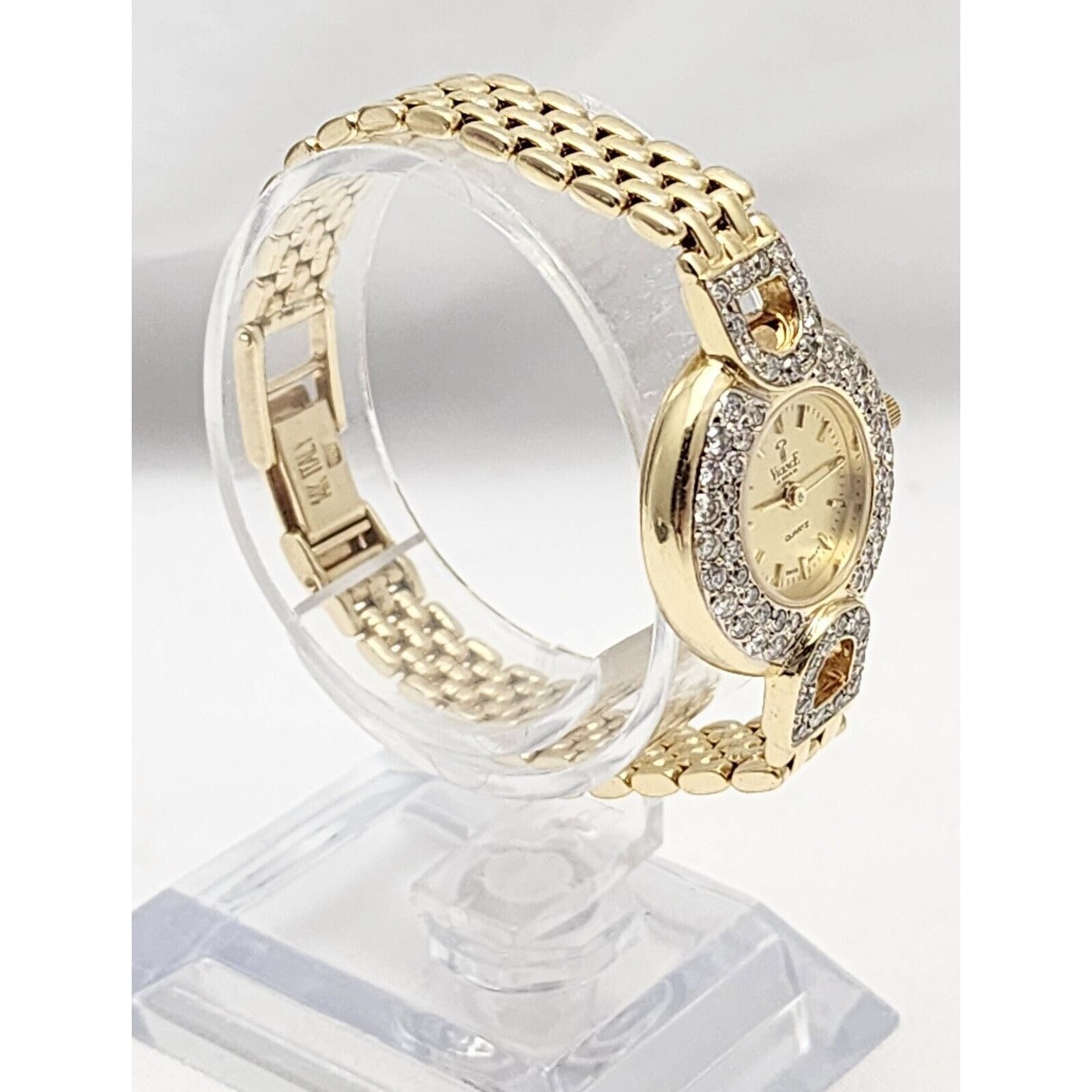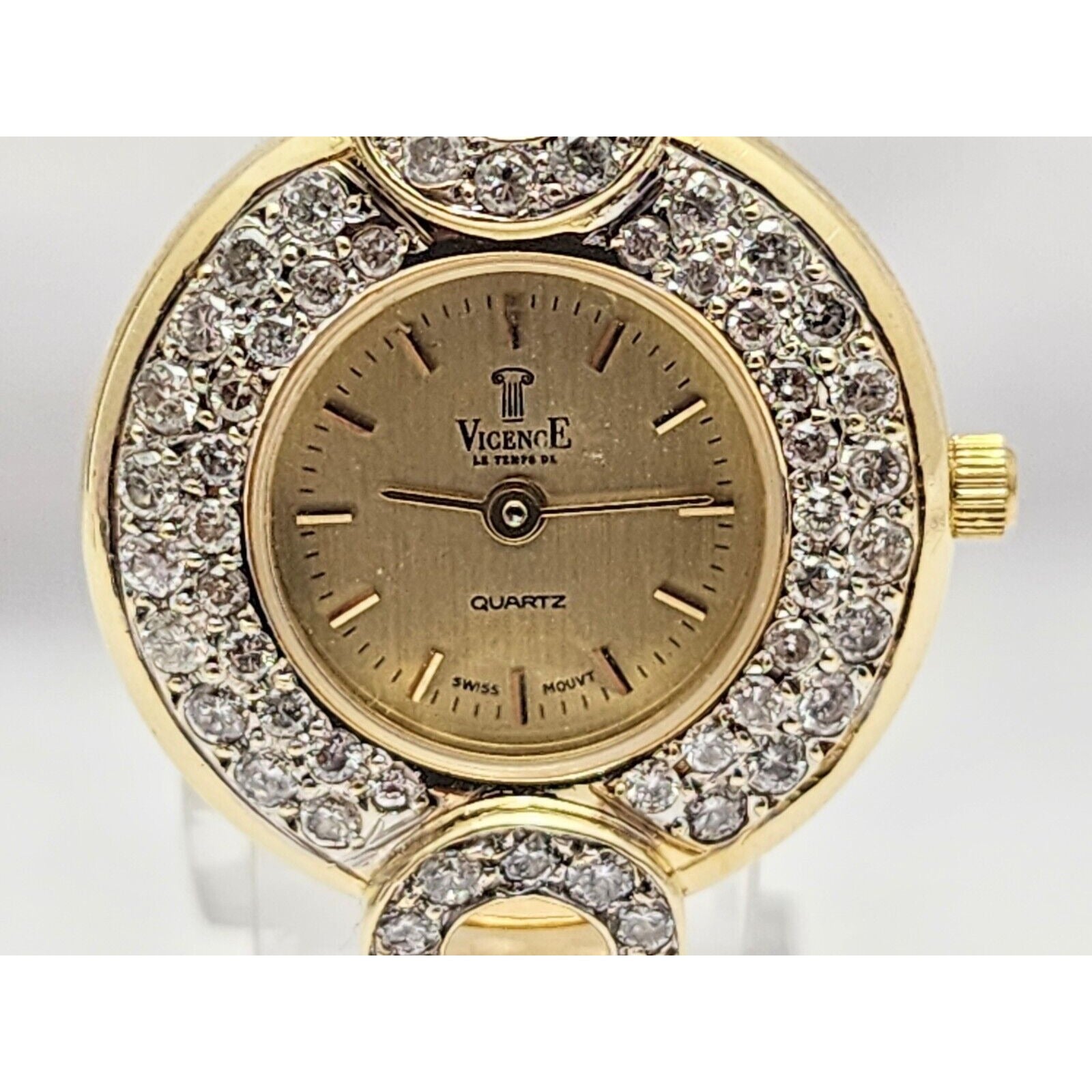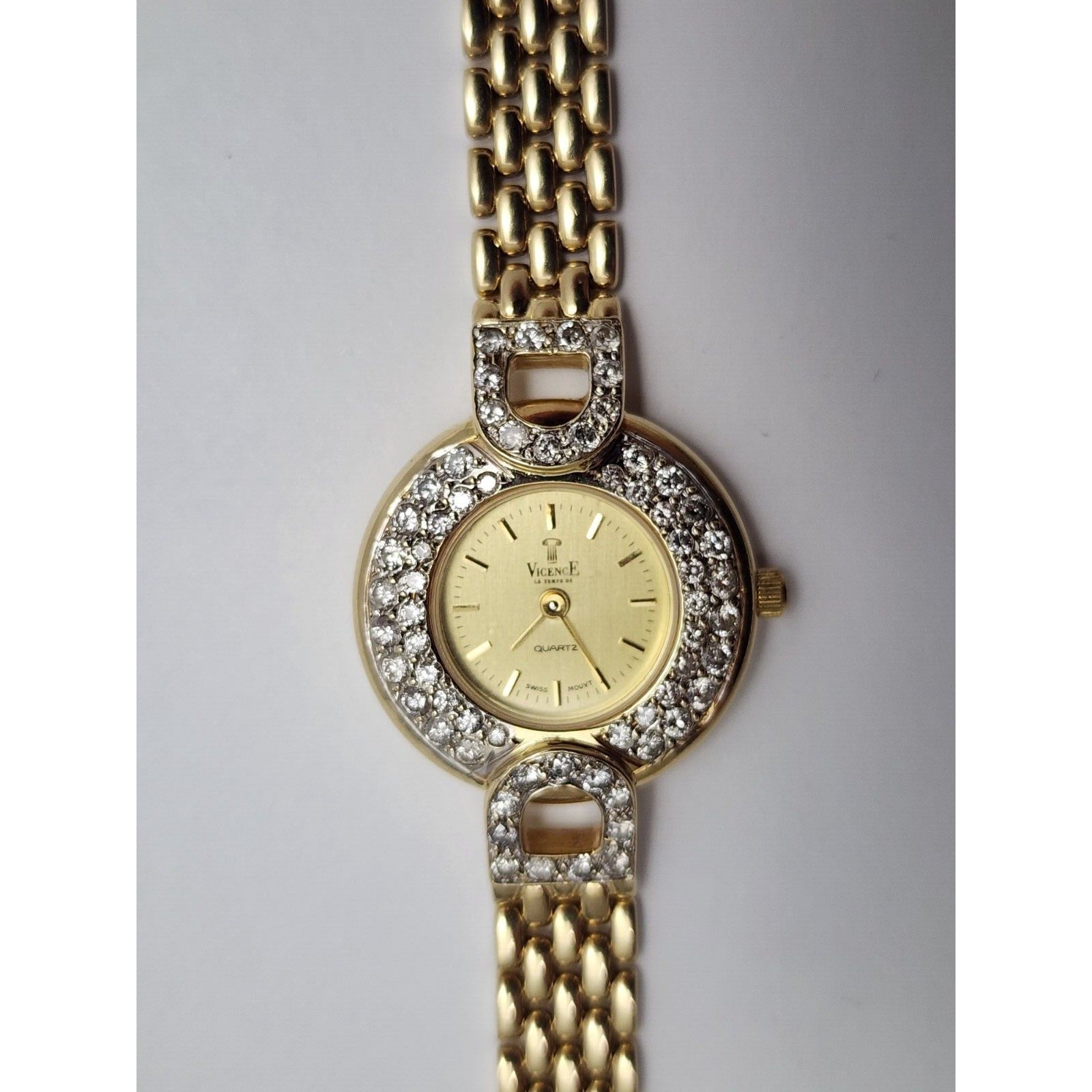 Vicence Quartz 14K Yellow Gold 32.7gr 24mm 1.48ct Diamonds Ladies Watch Italy