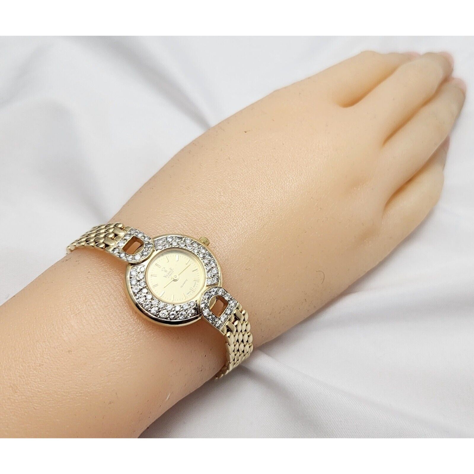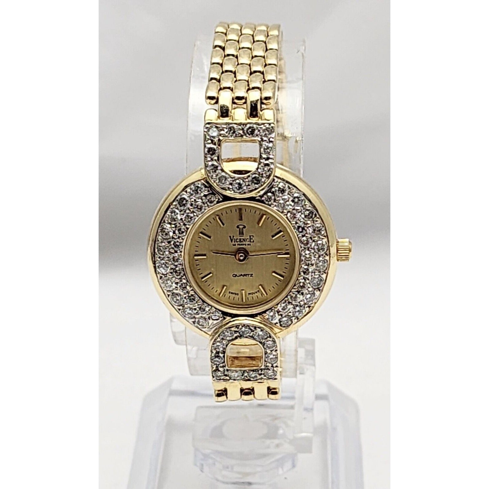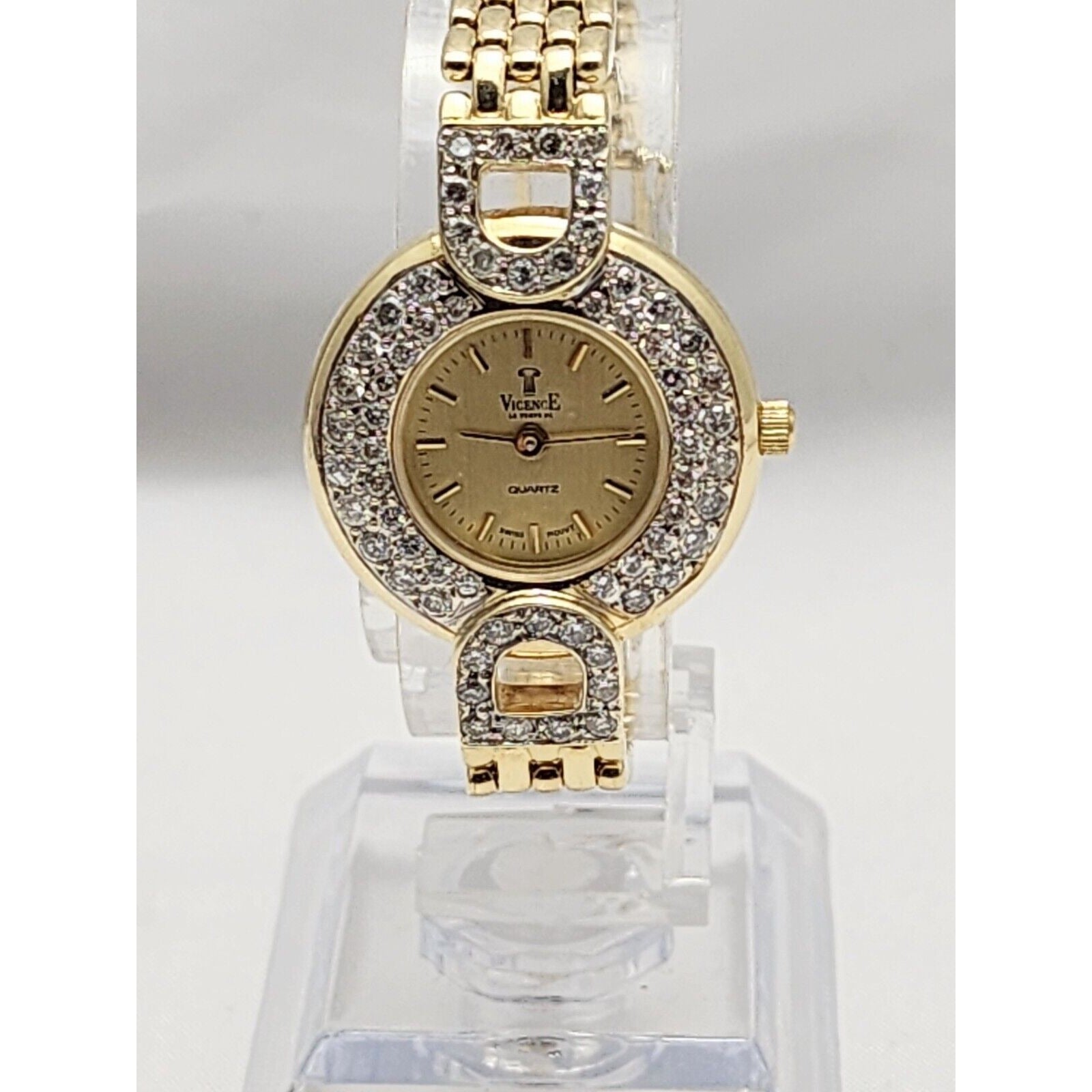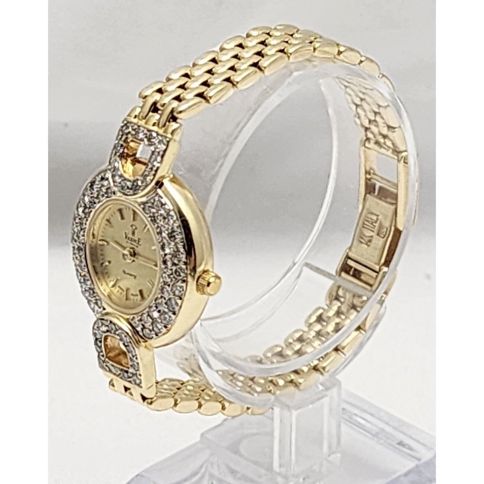 Vicence Quartz 14K Yellow Gold 32.7gr 24mm 1.48ct Diamonds Ladies Watch Italy