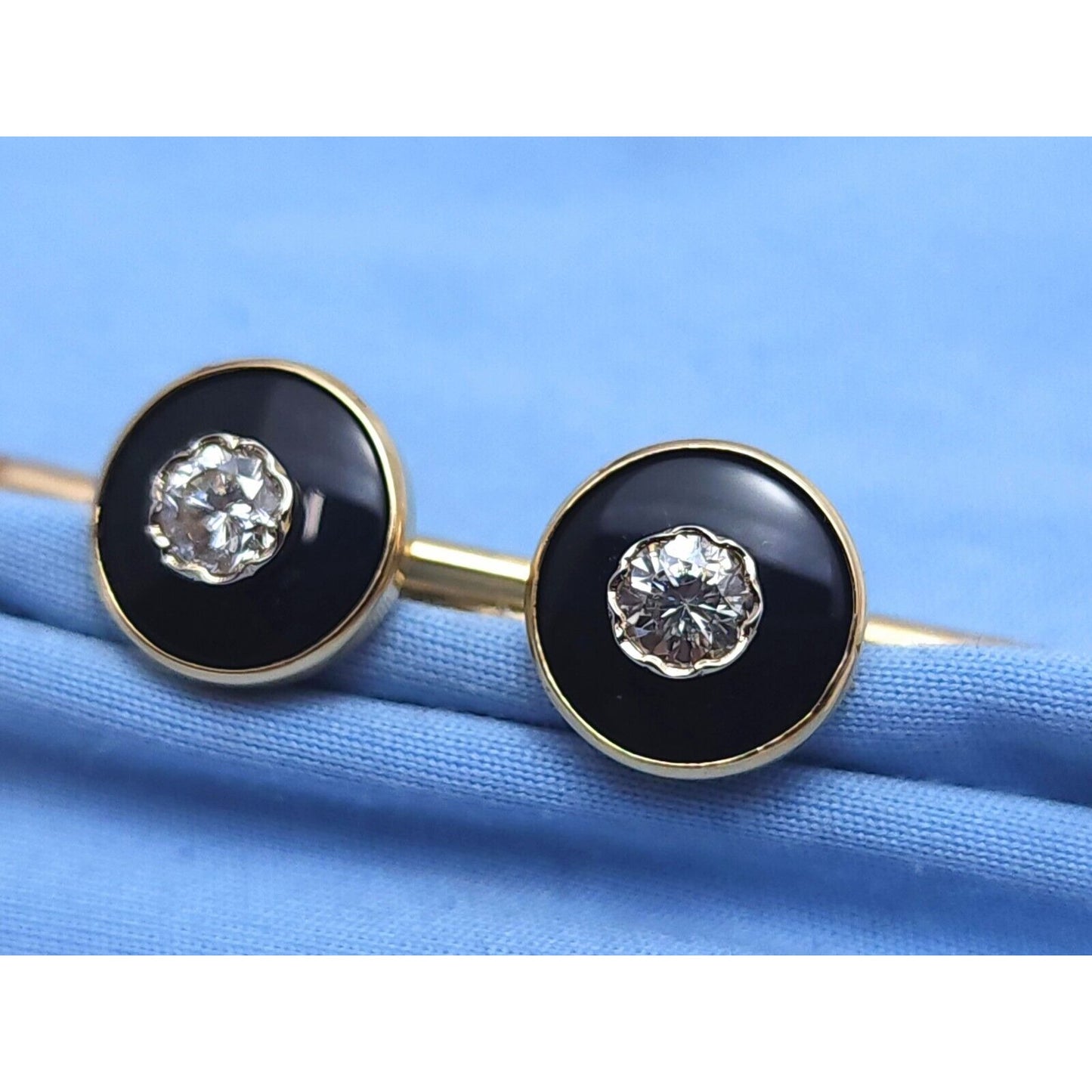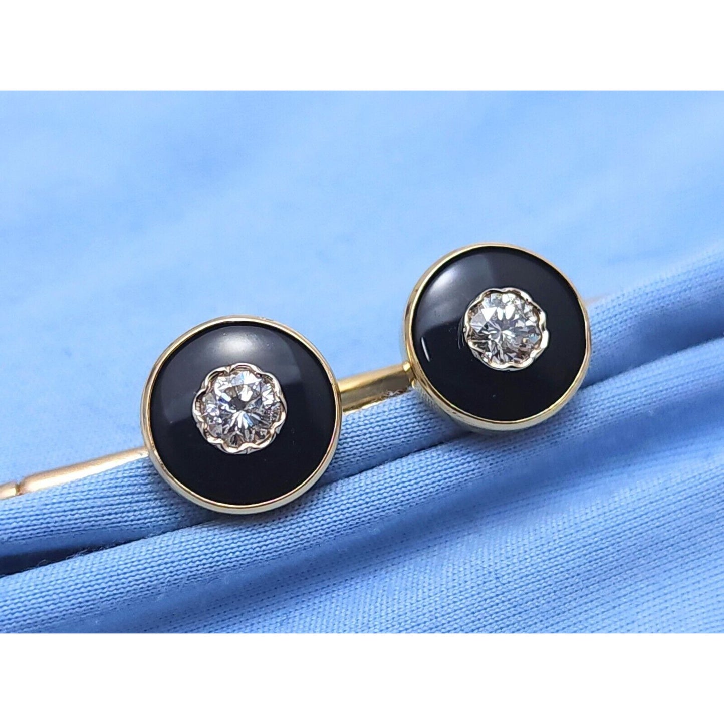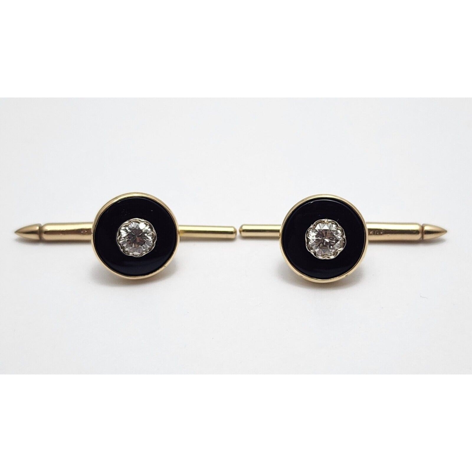 Vintage 1/20 14K Karat Gold Filled Black Onyx & Diamond Cufflinks