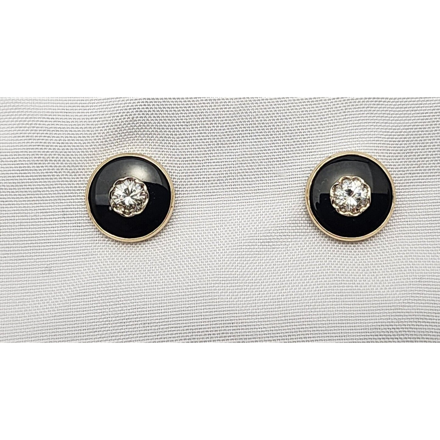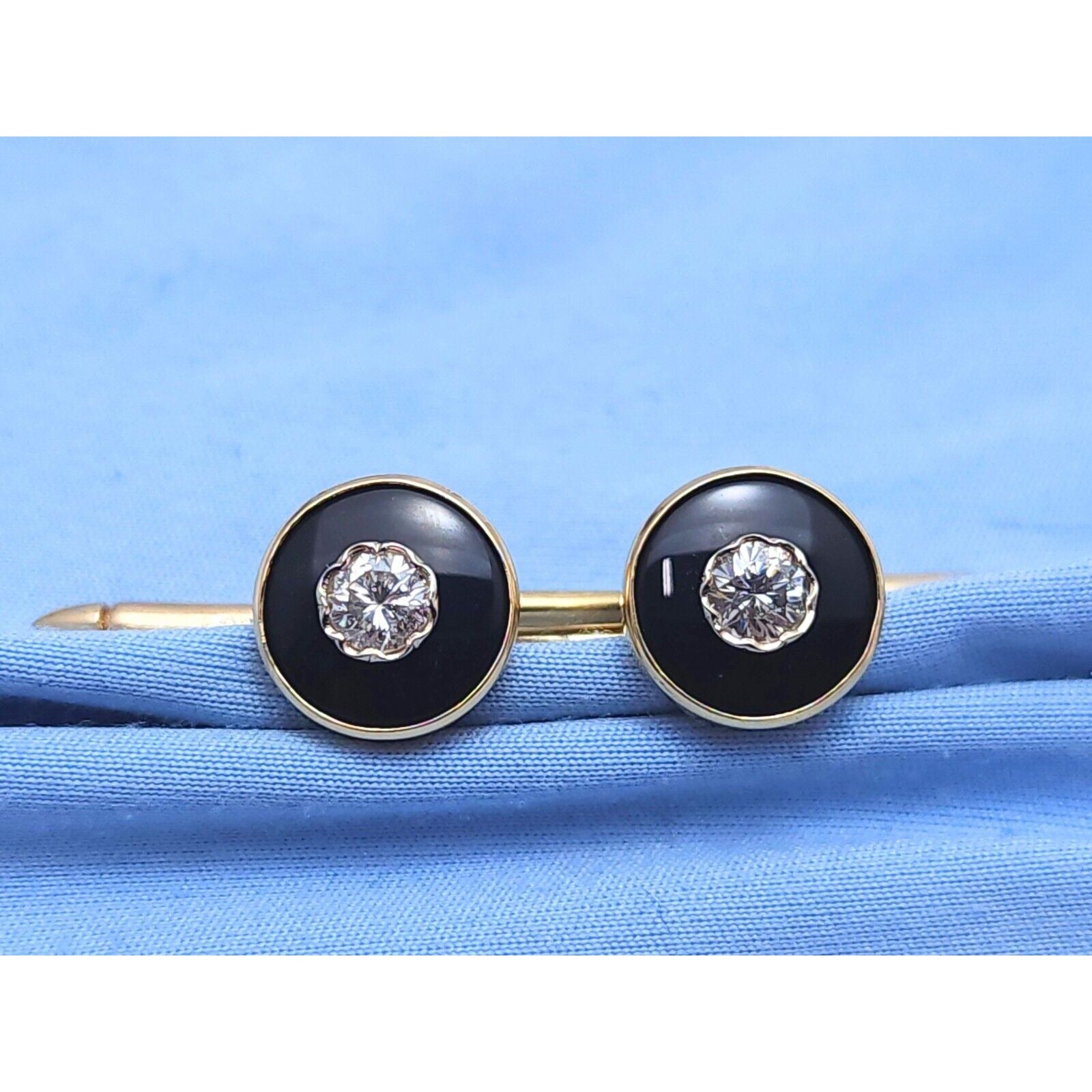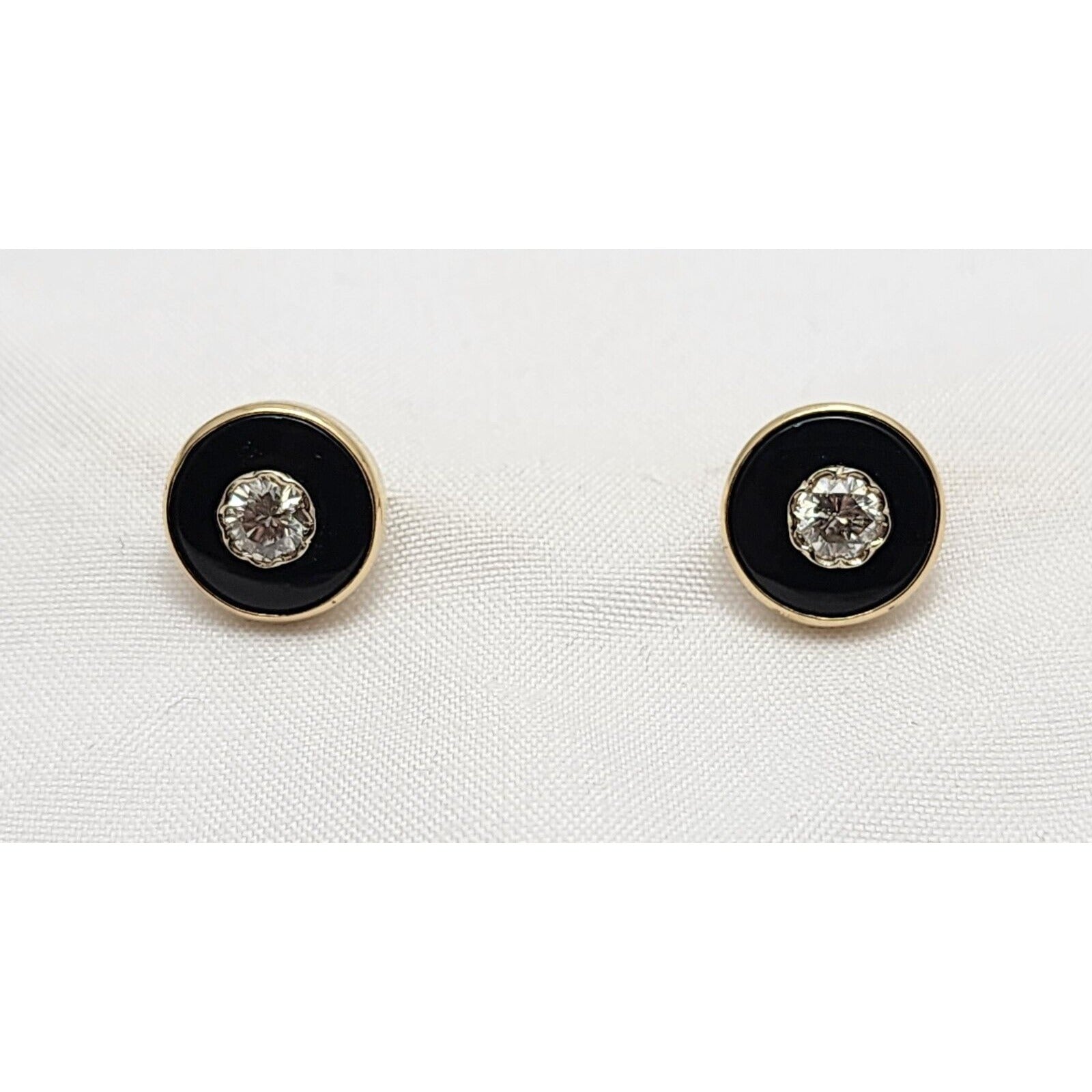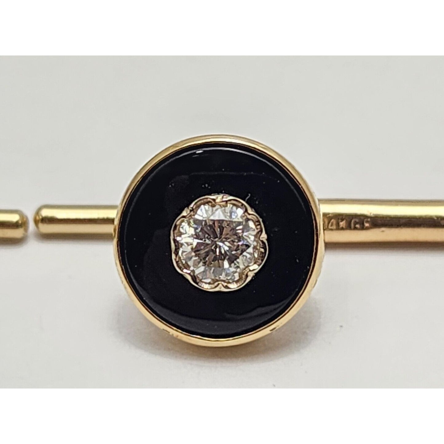 Vintage 1/20 14K Karat Gold Filled Black Onyx & Diamond Cufflinks