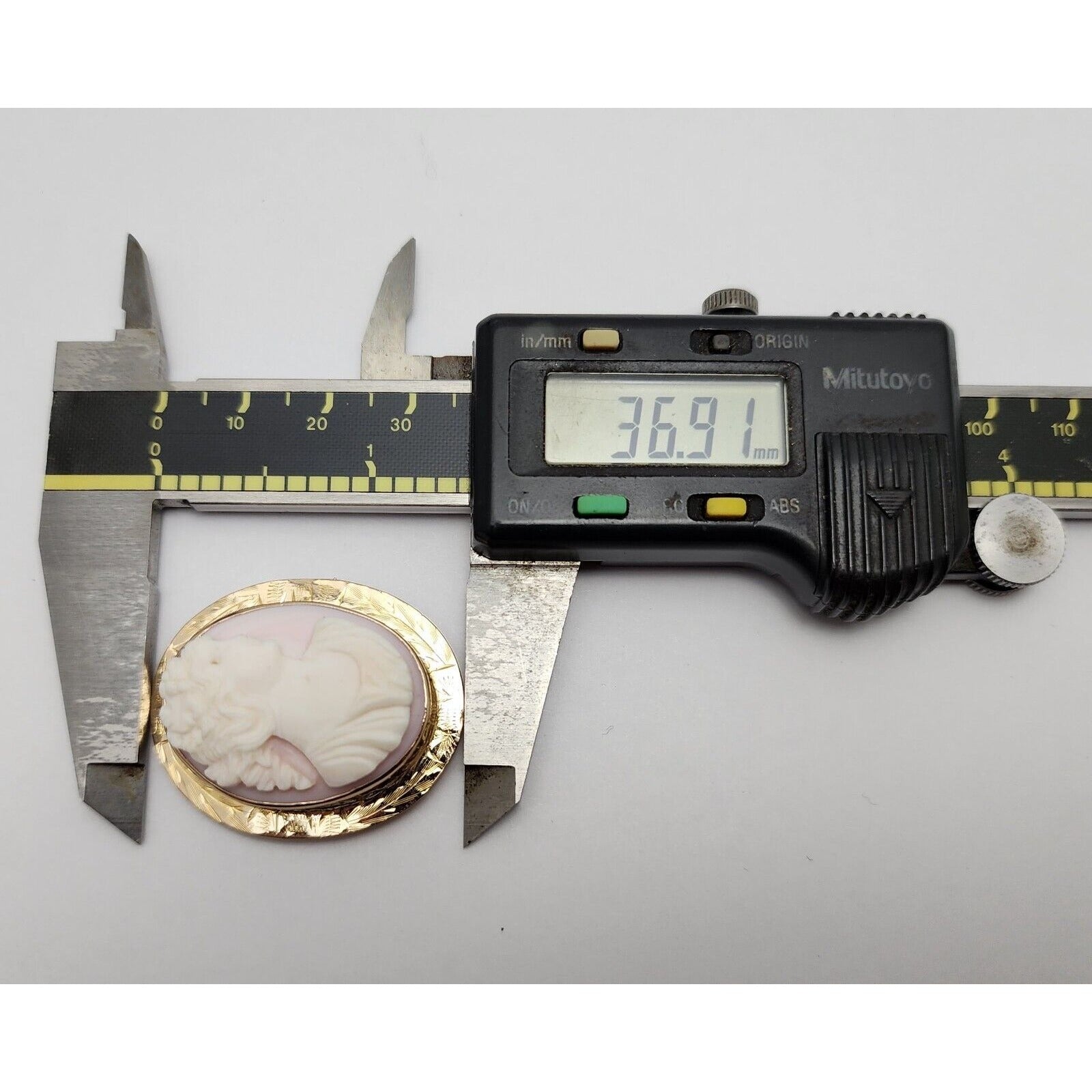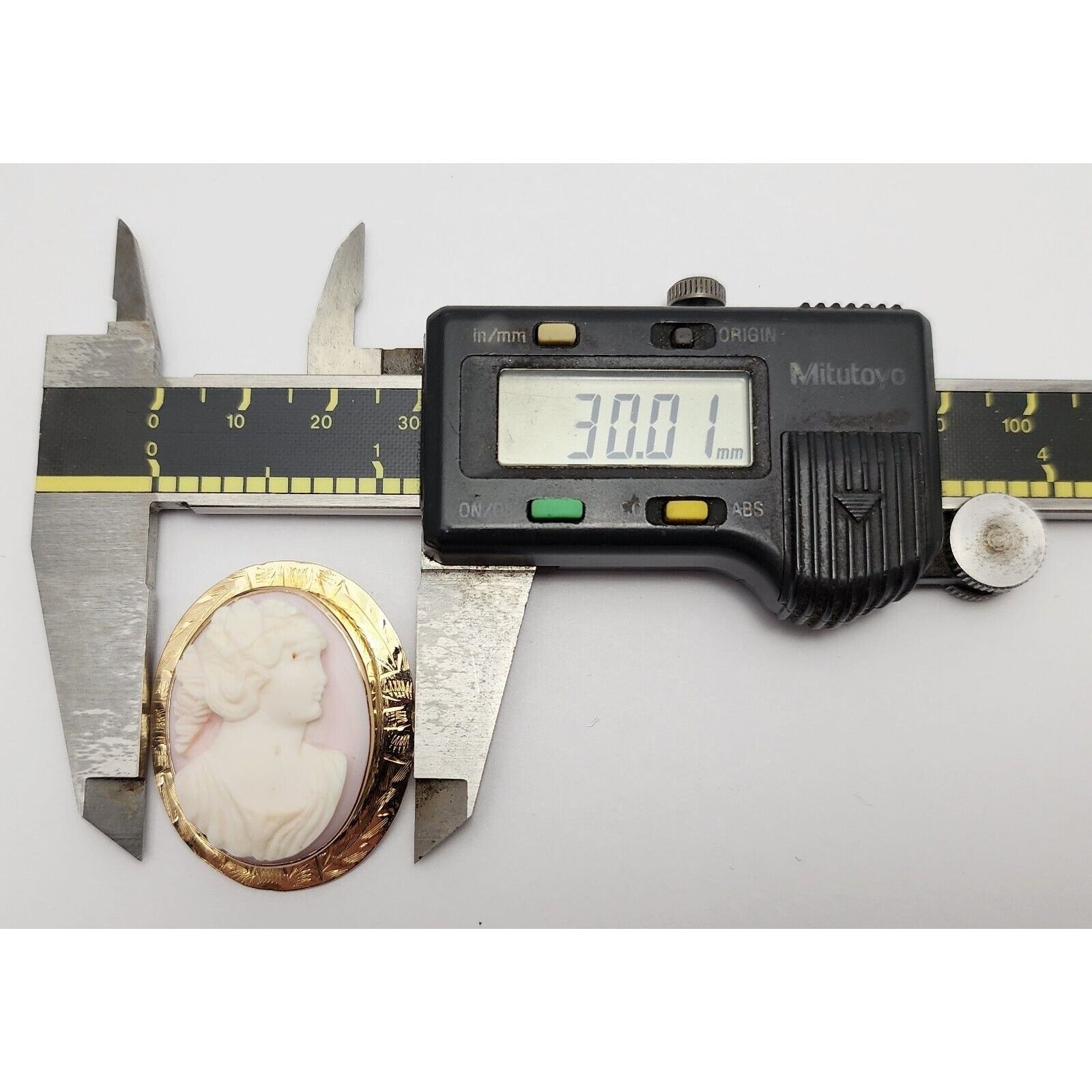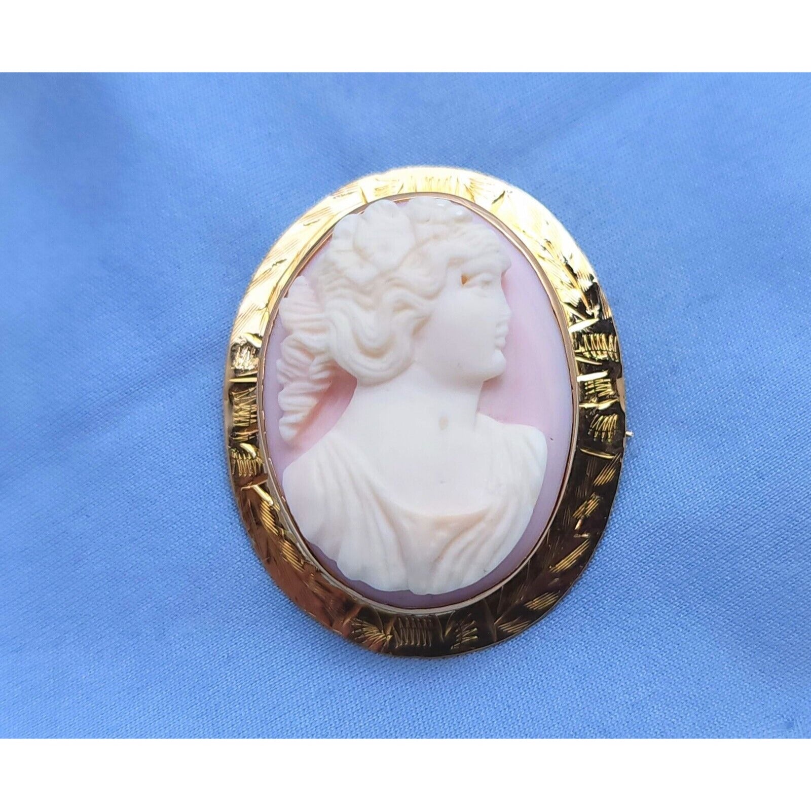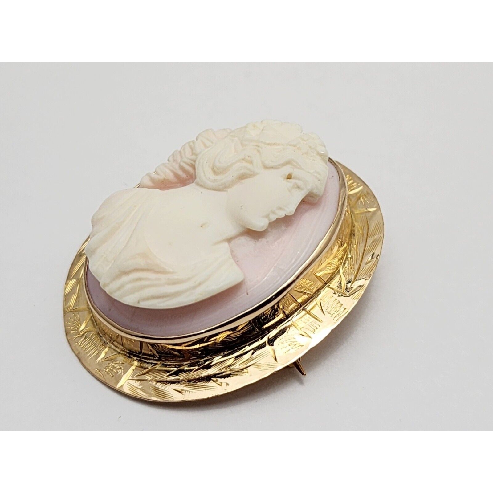 Vintage 10K Yellow Gold Floral Pink Cameo Oval Brooch Pin