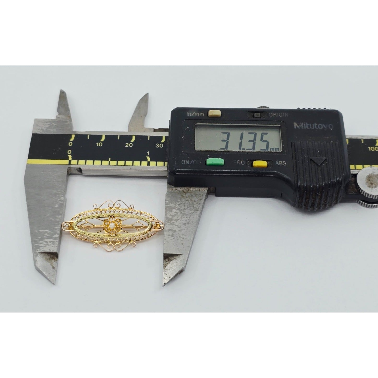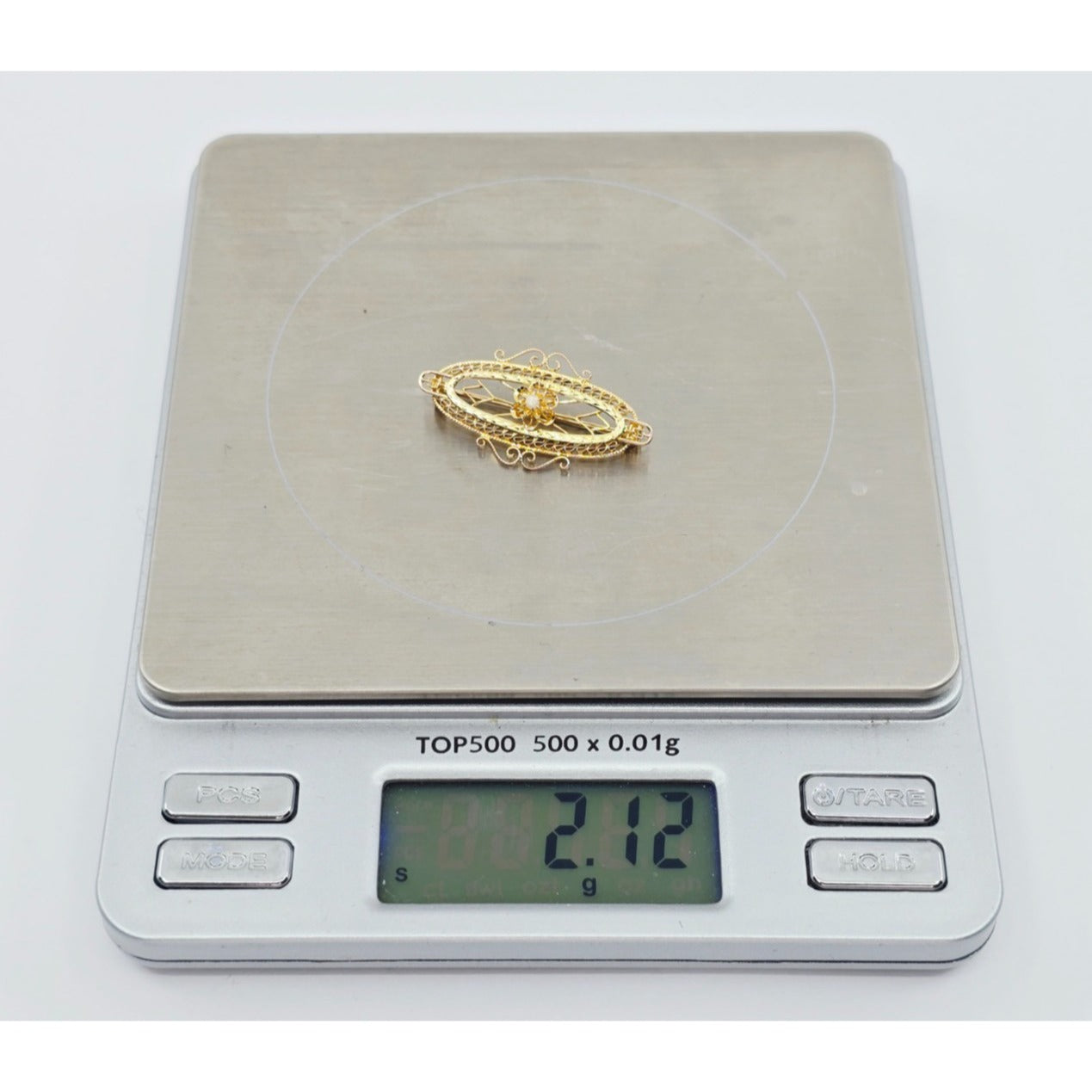 Vintage 10K Yellow Gold Round Pearl Brooch Pin