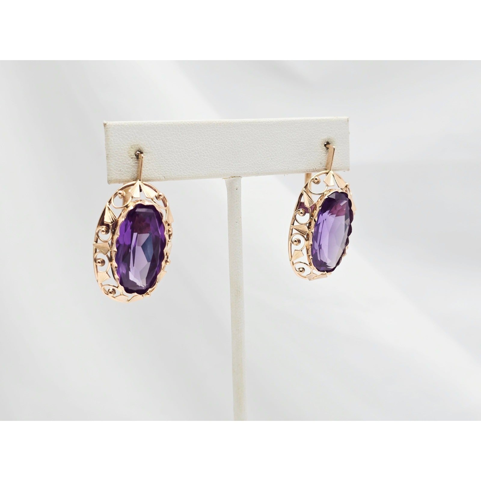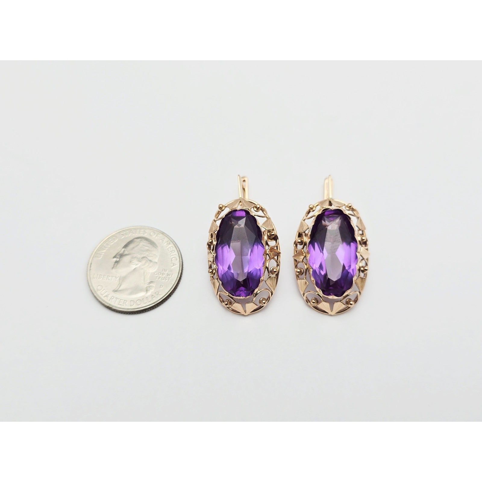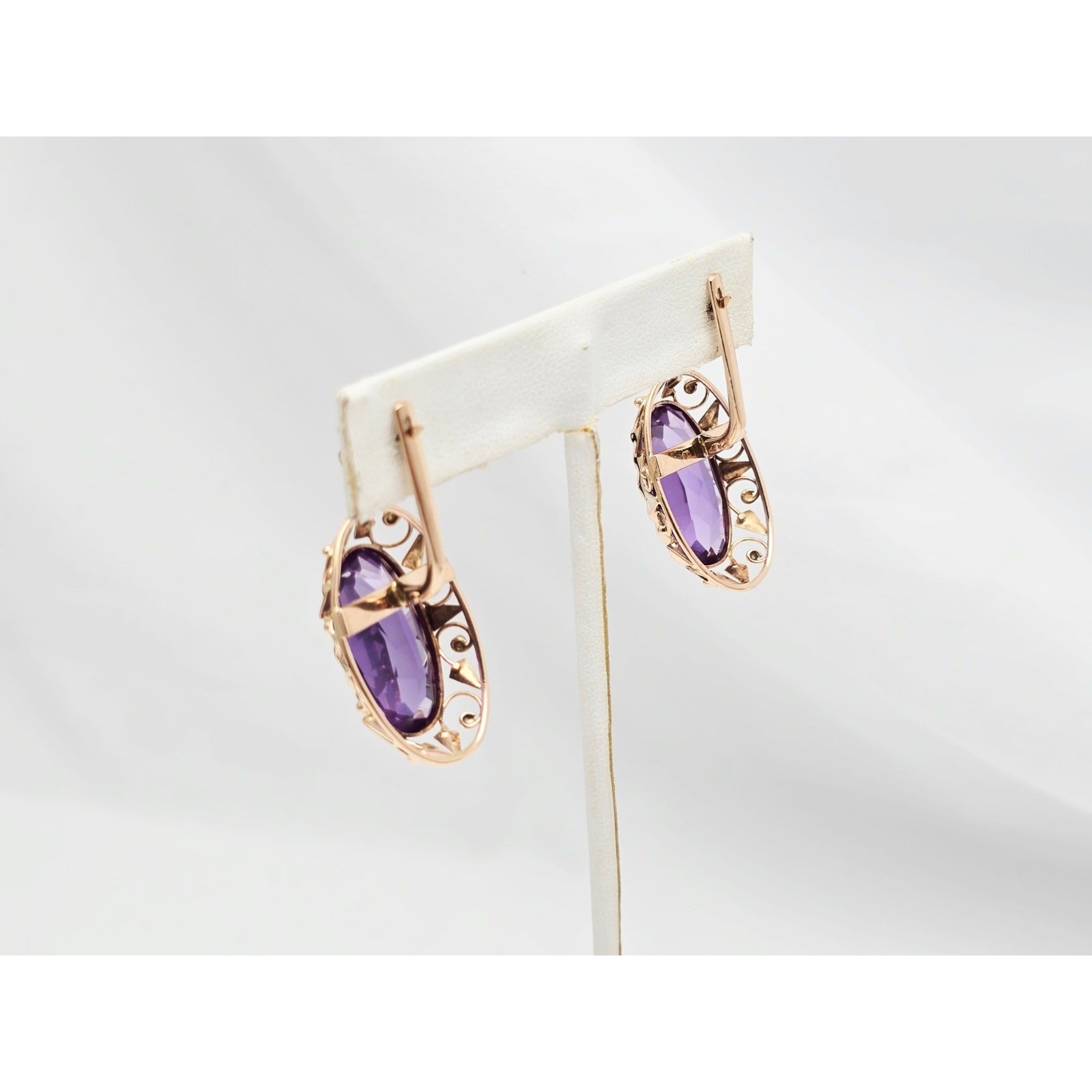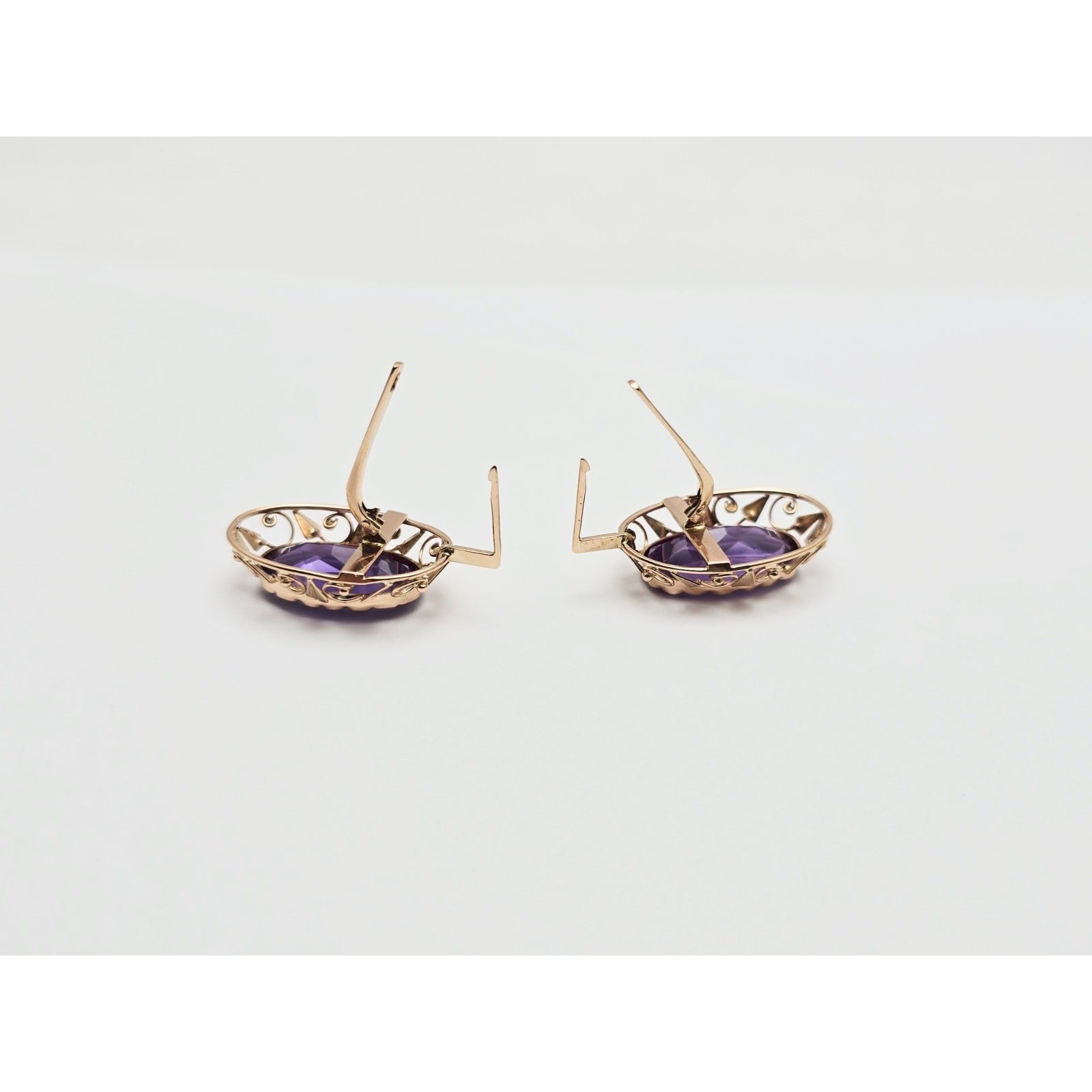 Vintage 14K Rose Gold Amethyst Latch Back Hinge Earrings