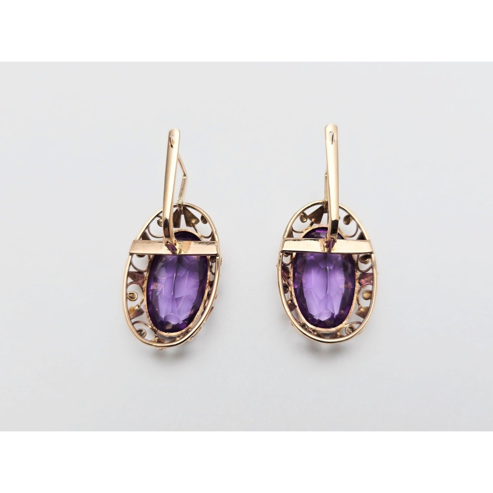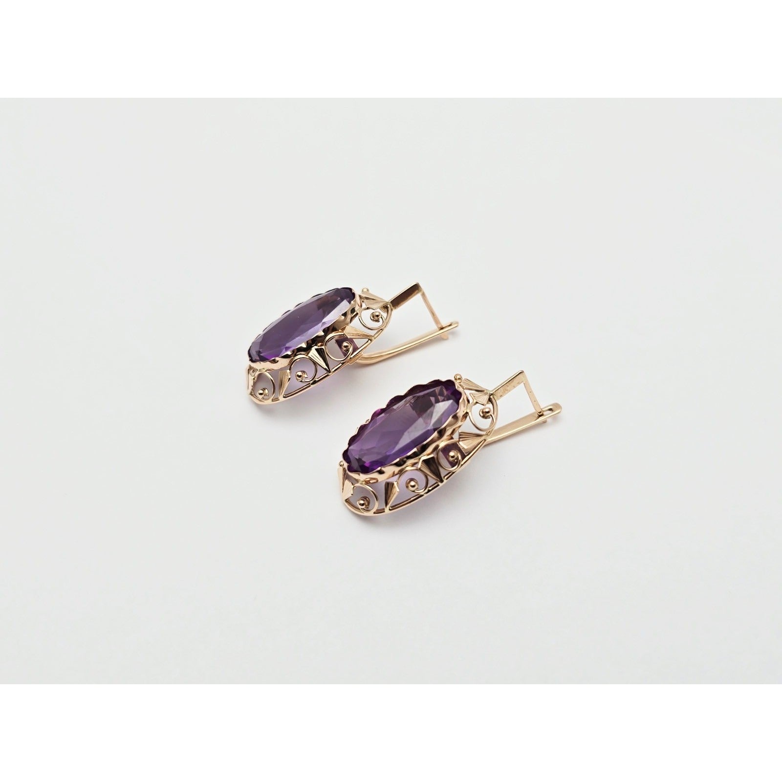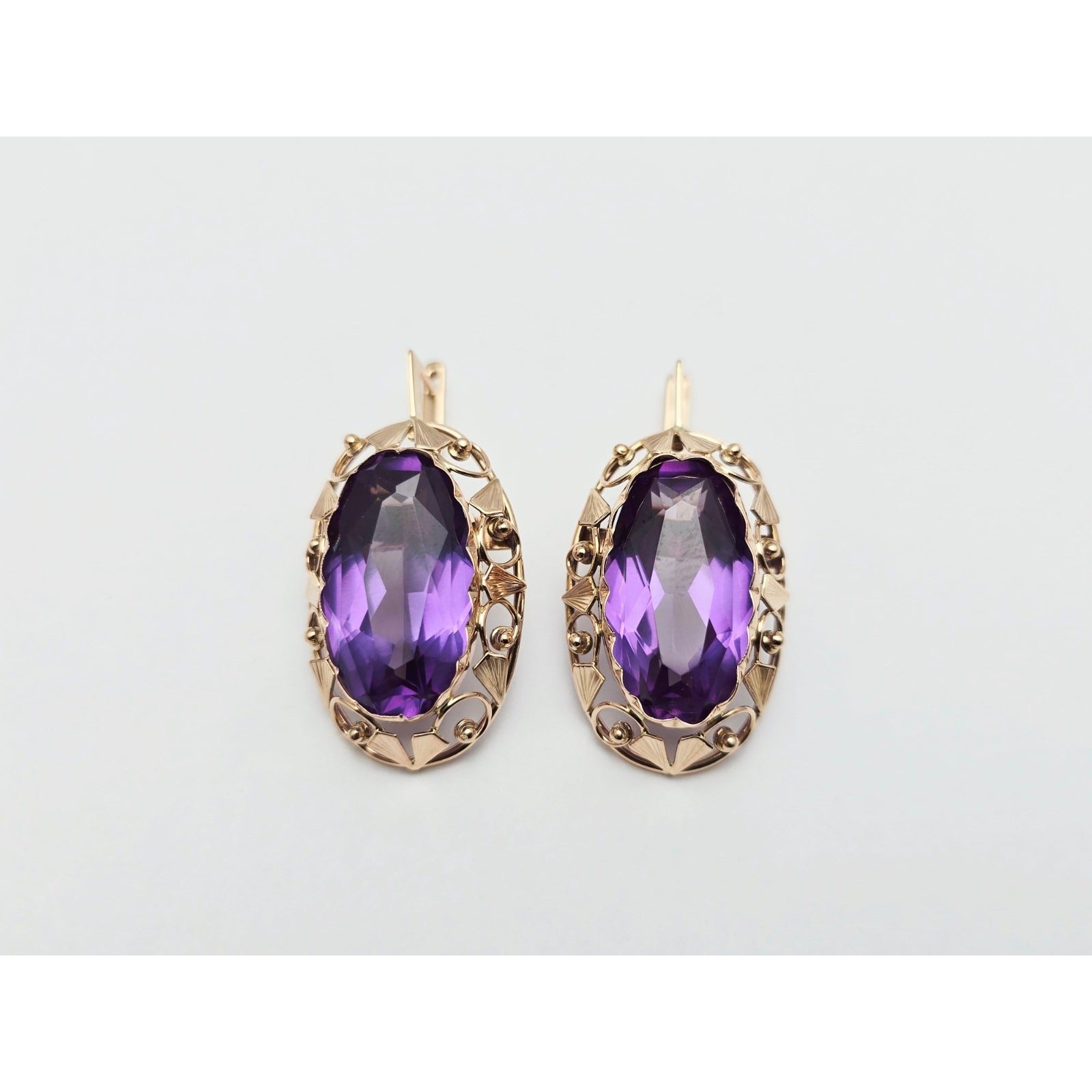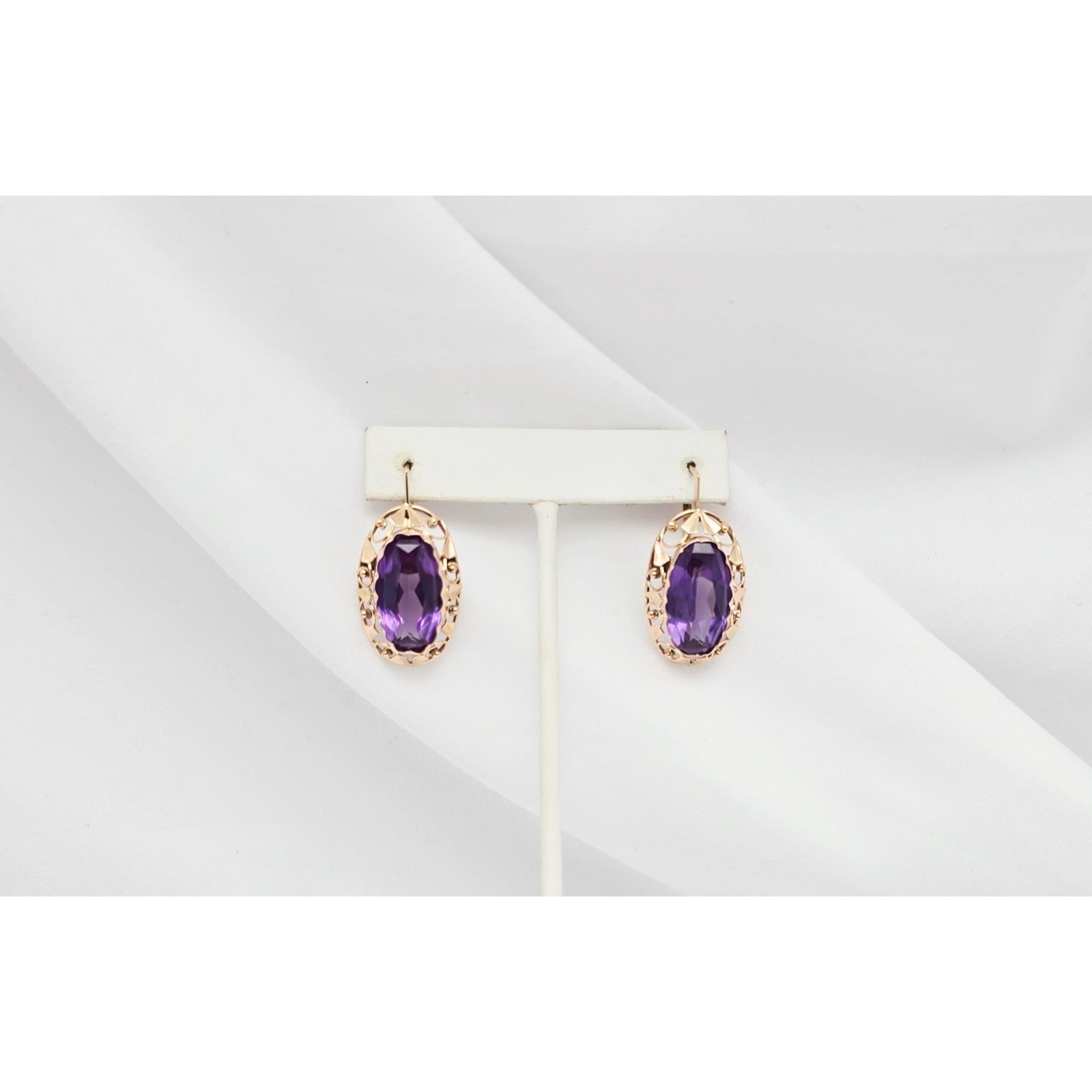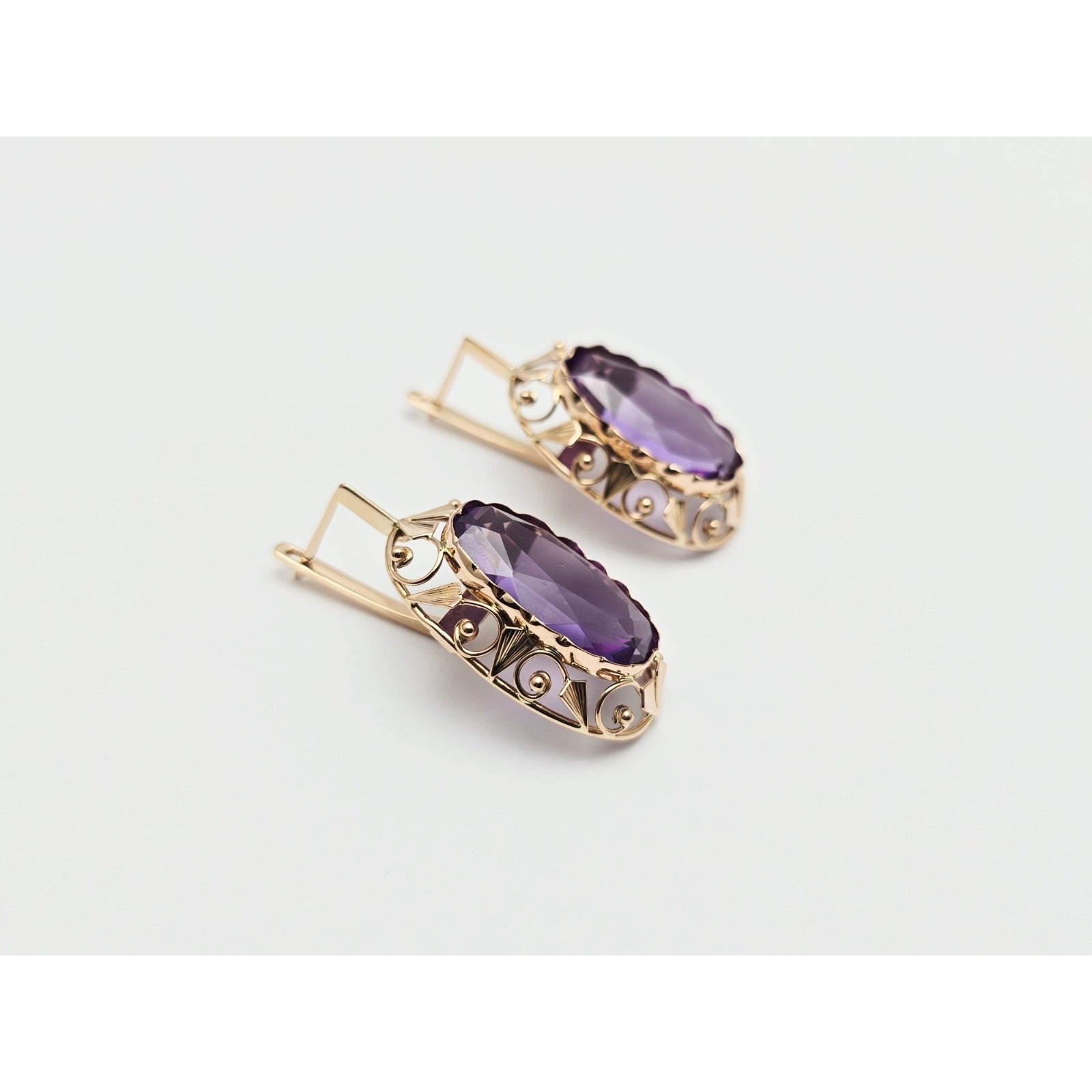Vintage 14K Rose Gold Amethyst Latch Back Hinge Earrings