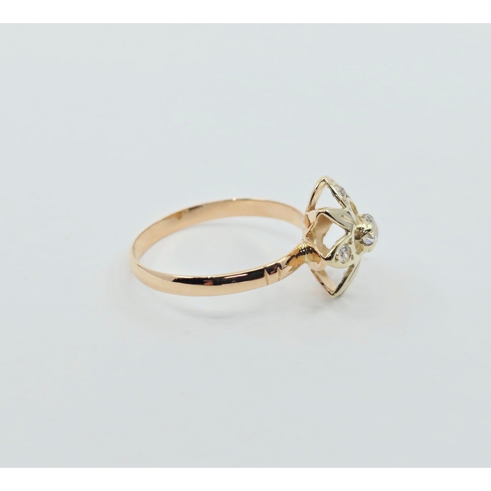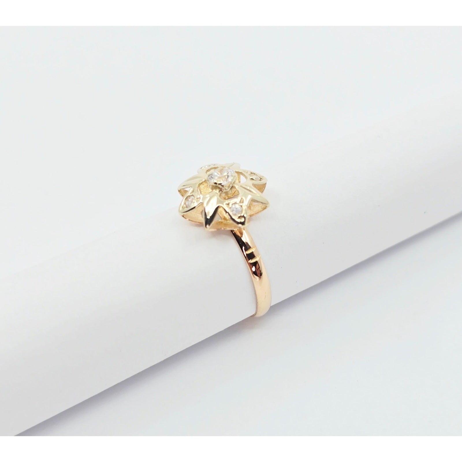 Vintage 14K Two Tone Gold Star Shaped CZ Ring