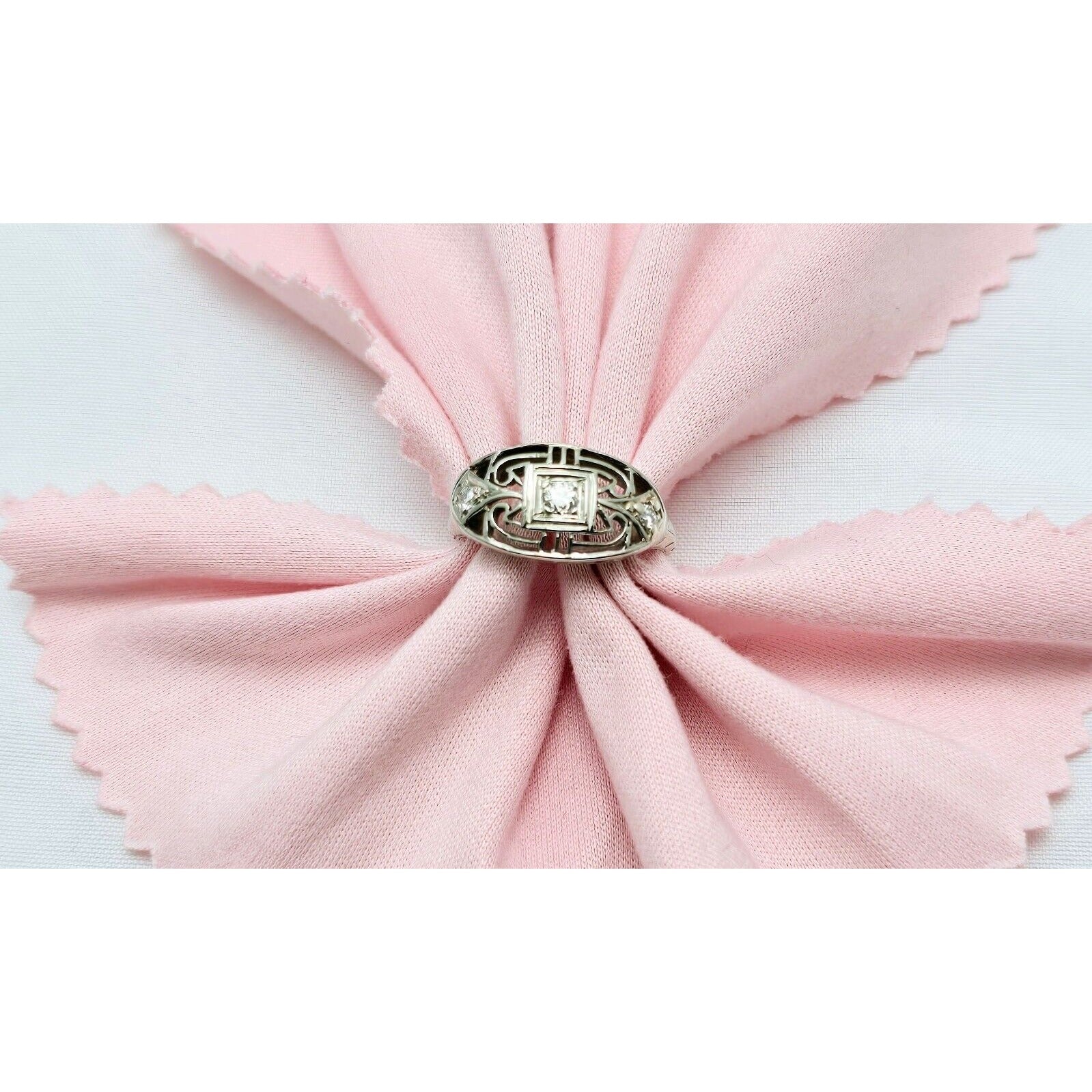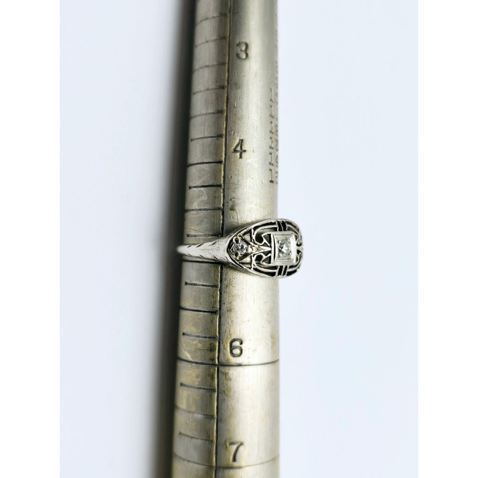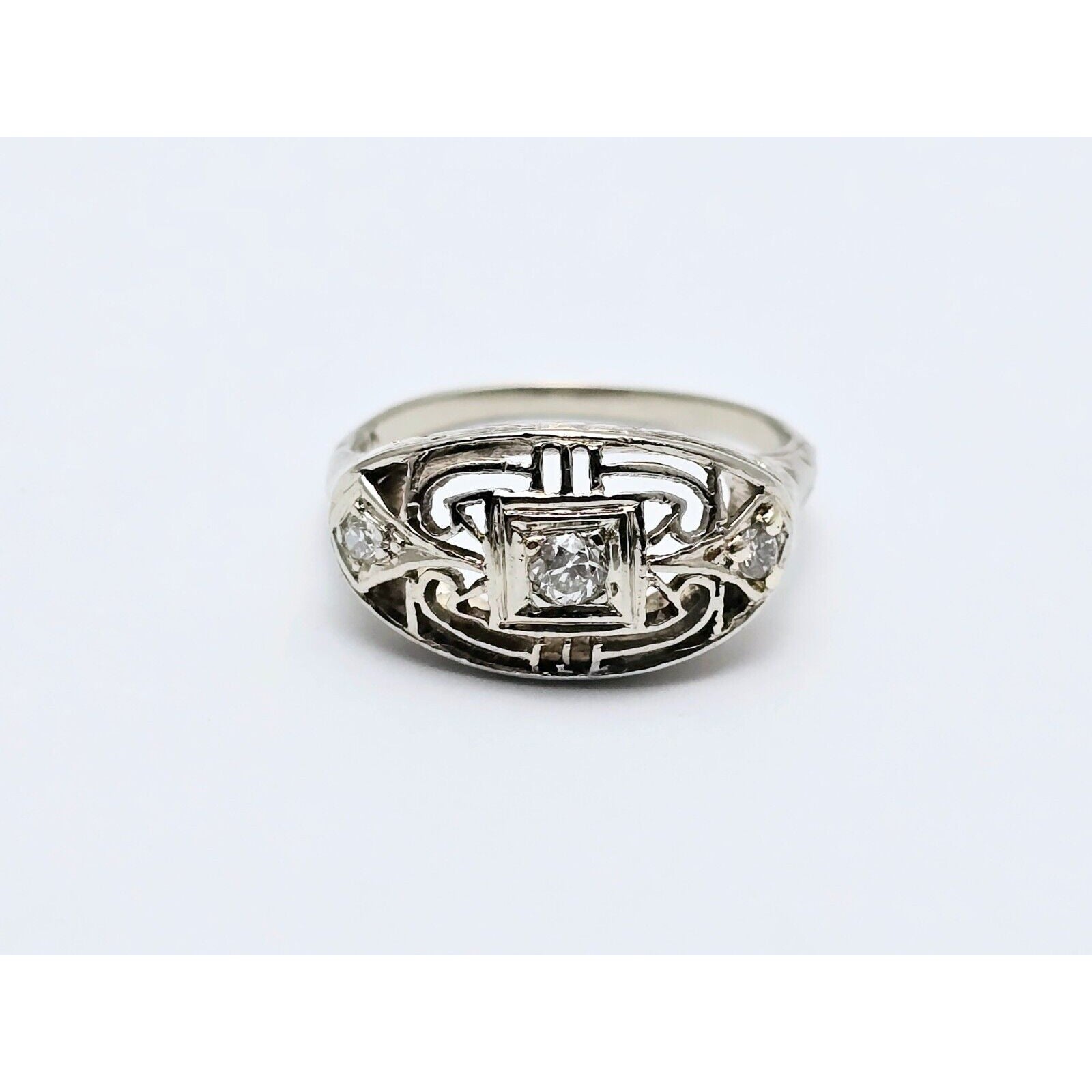 Vintage 14K White Gold 3 Old Cut Diamond Ring