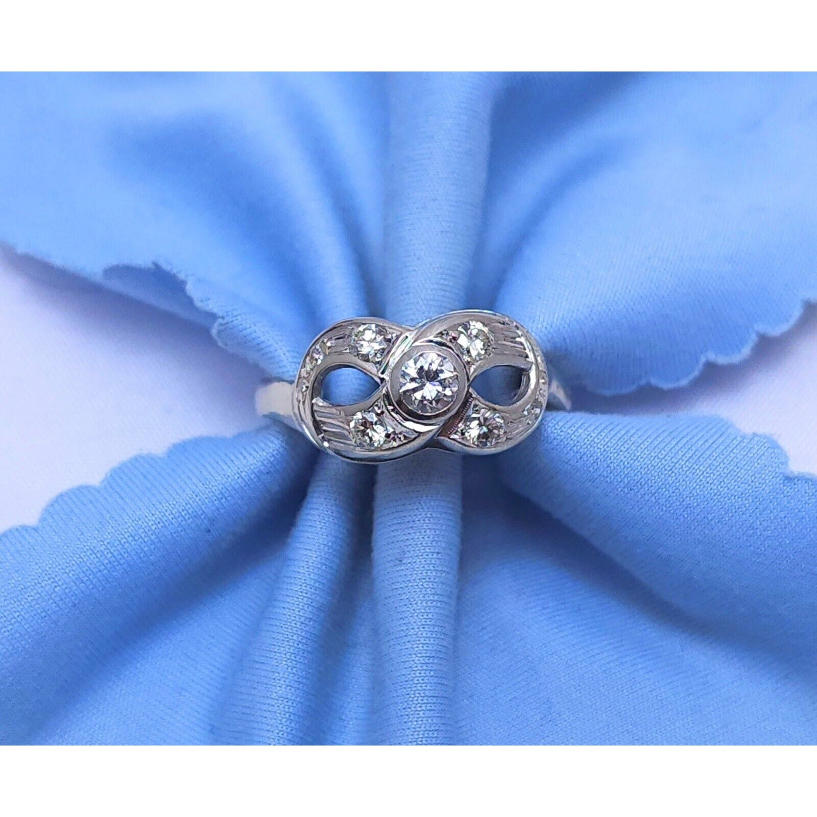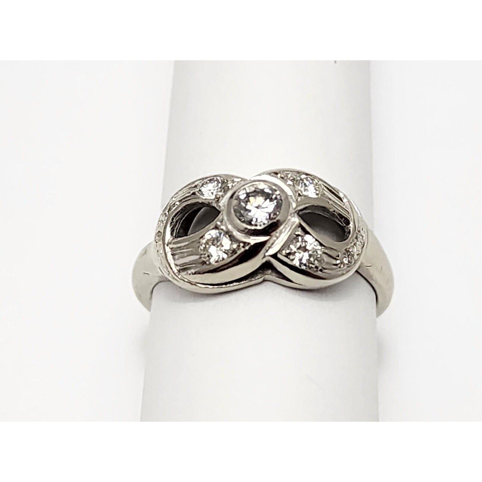 Vintage 14K White Gold Infinity Diamond Statement Ring