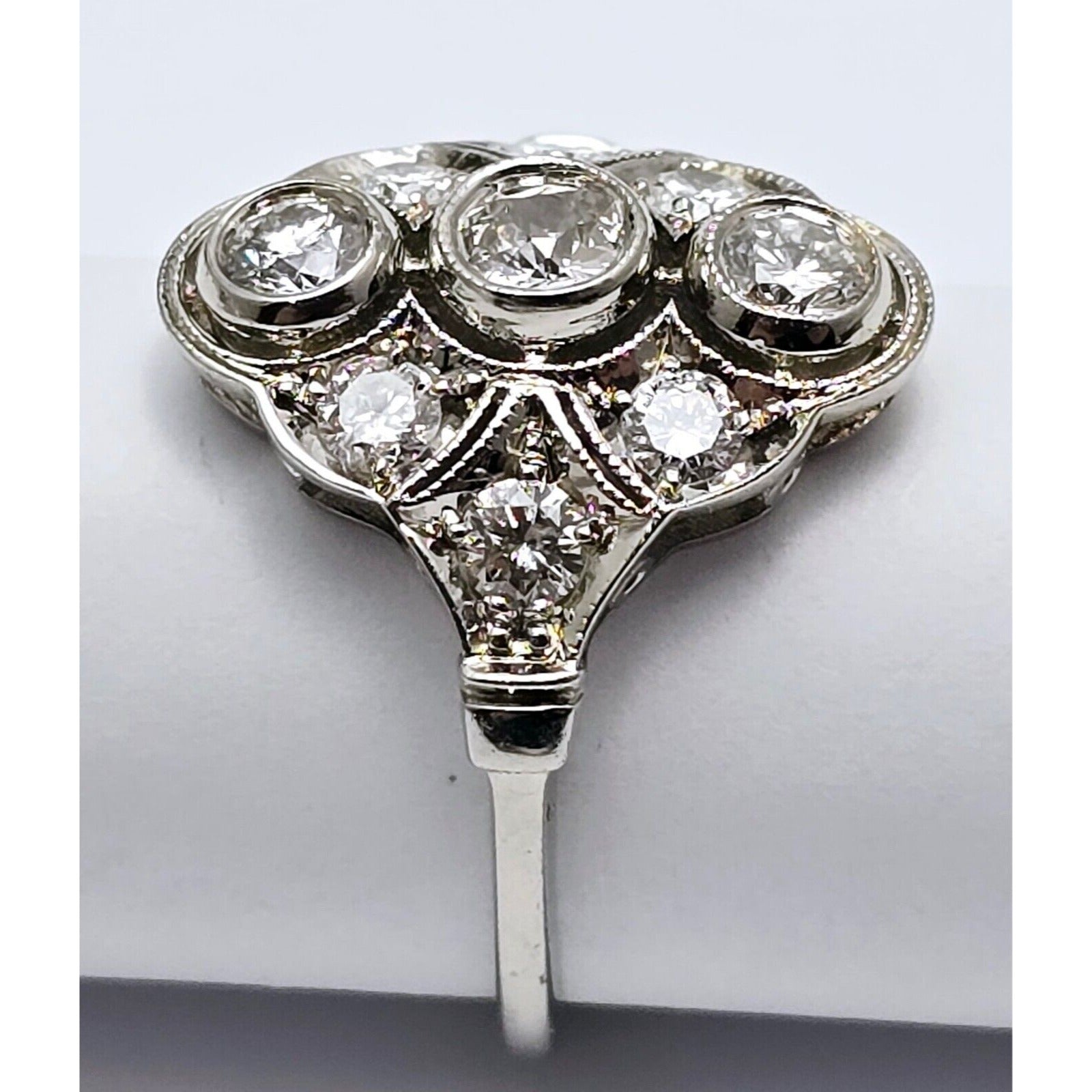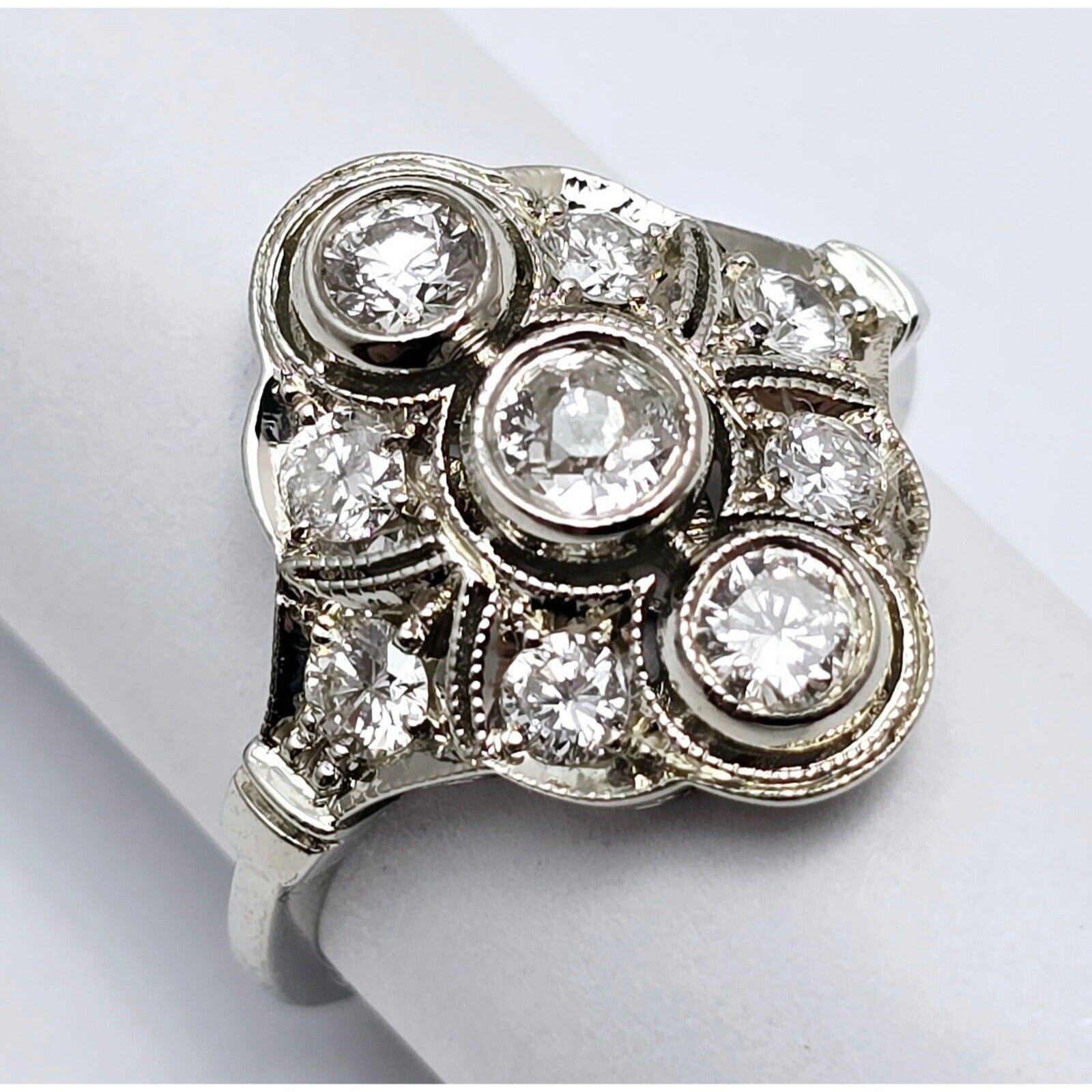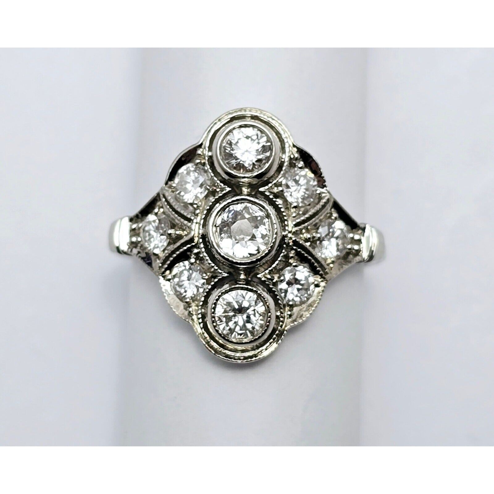 Vintage 14K White Gold Old Cut Diamond Cocktail Ring