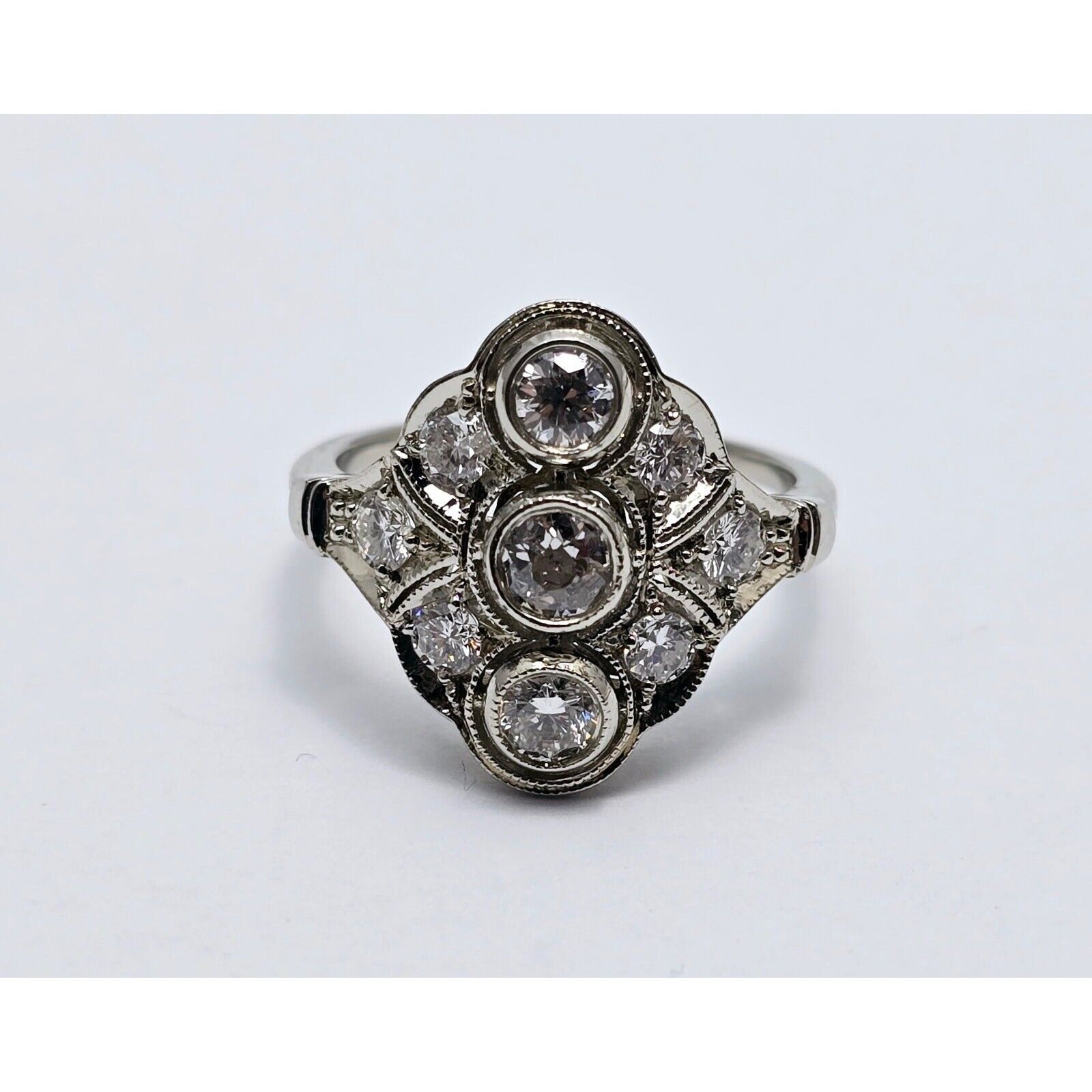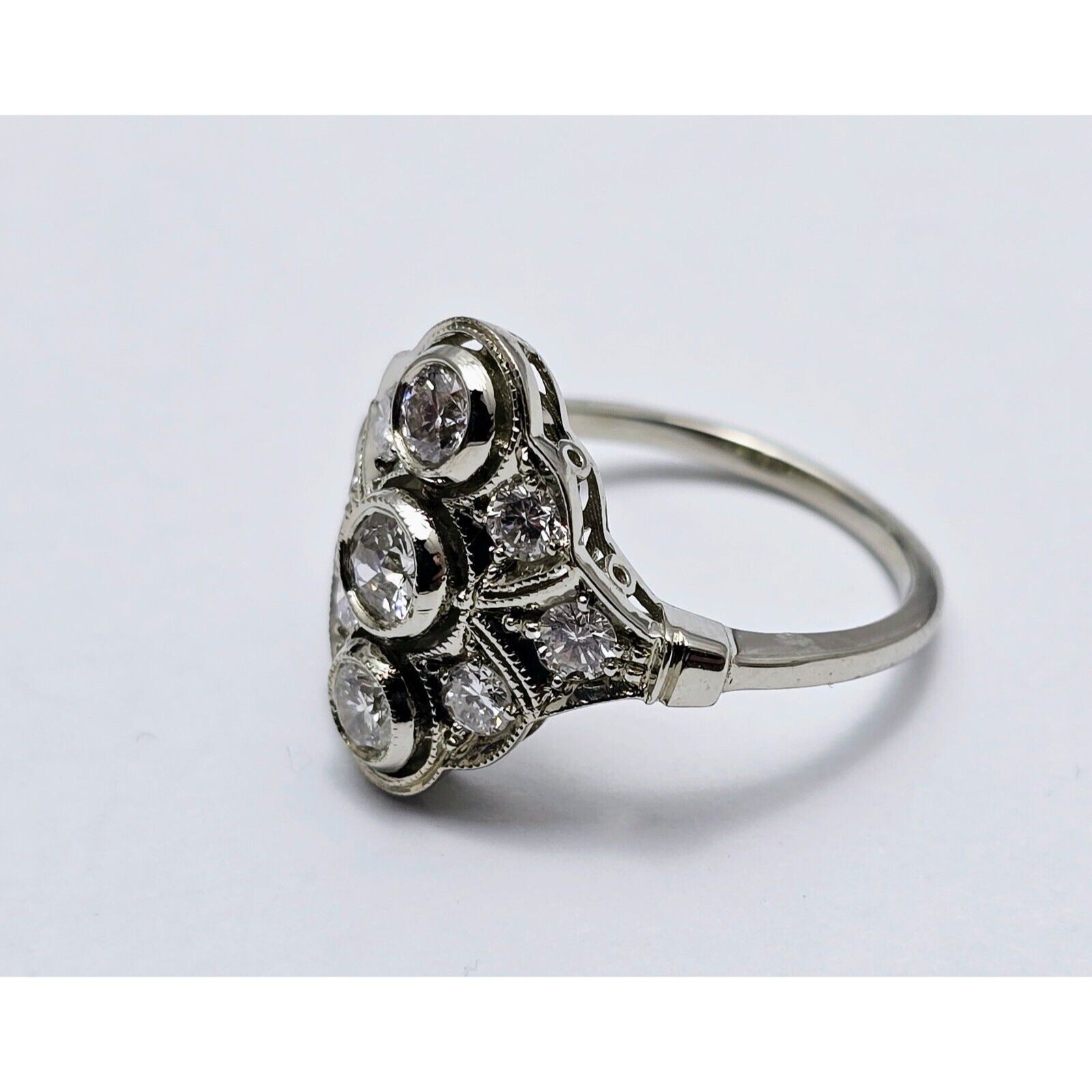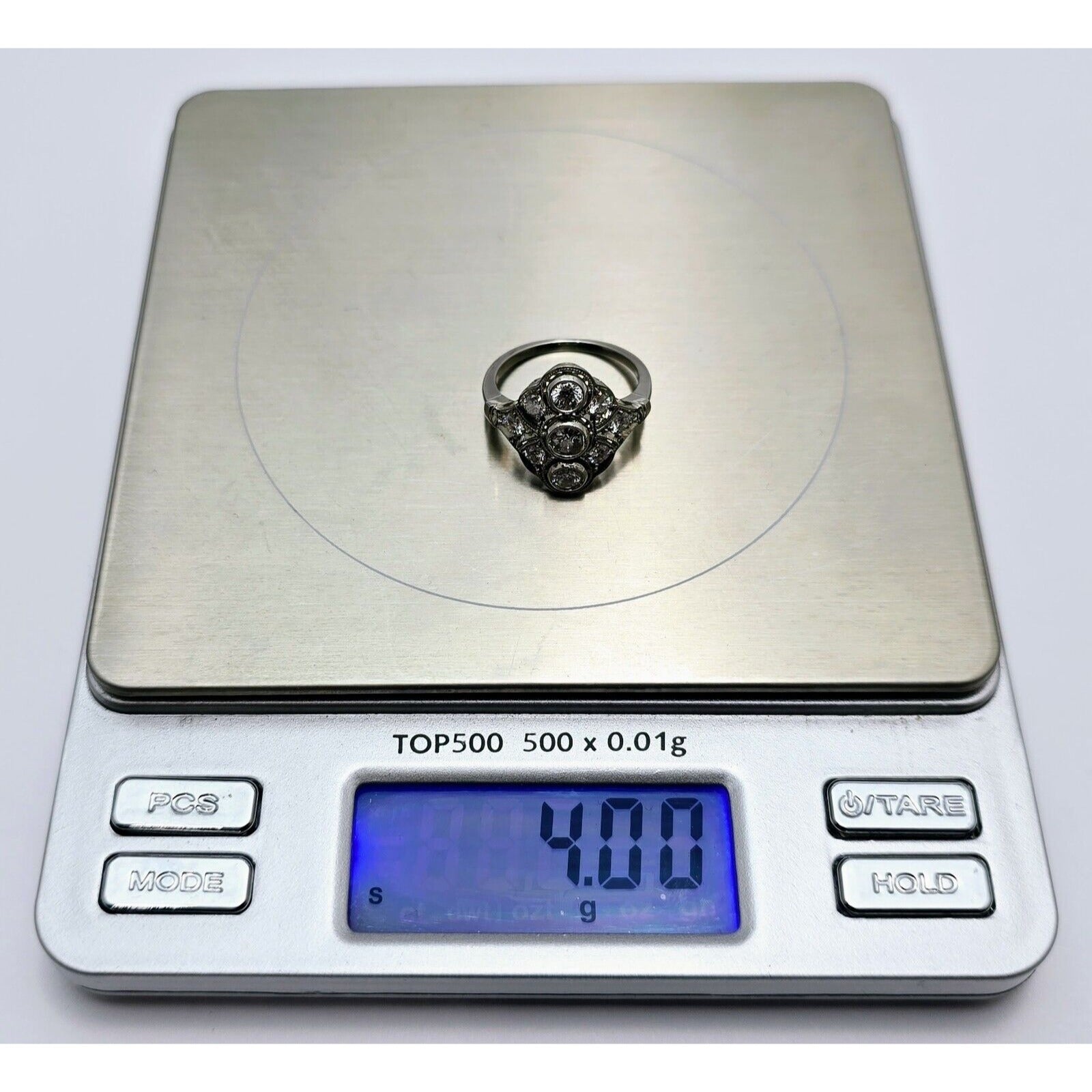 Vintage 14K White Gold Old Cut Diamond Cocktail Ring