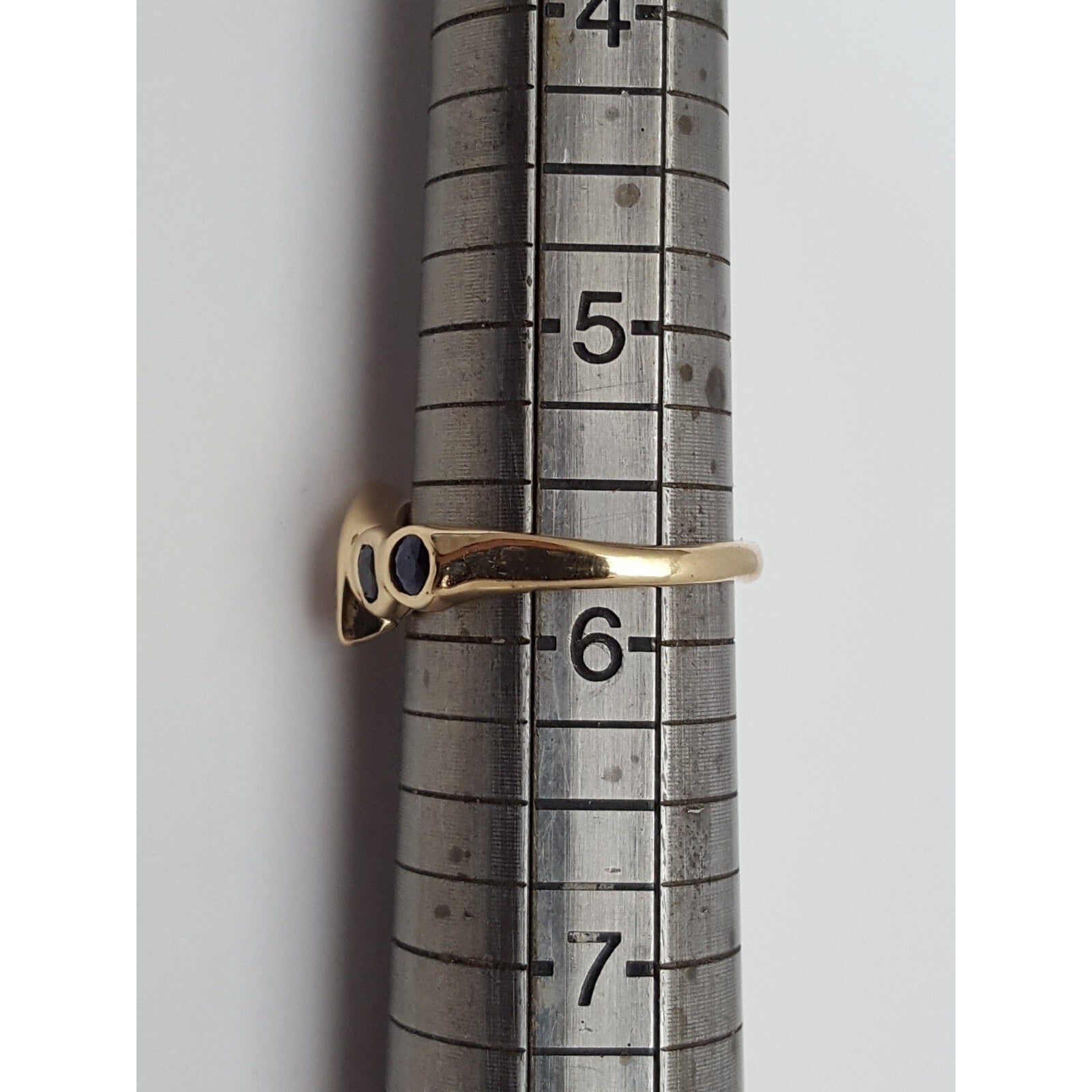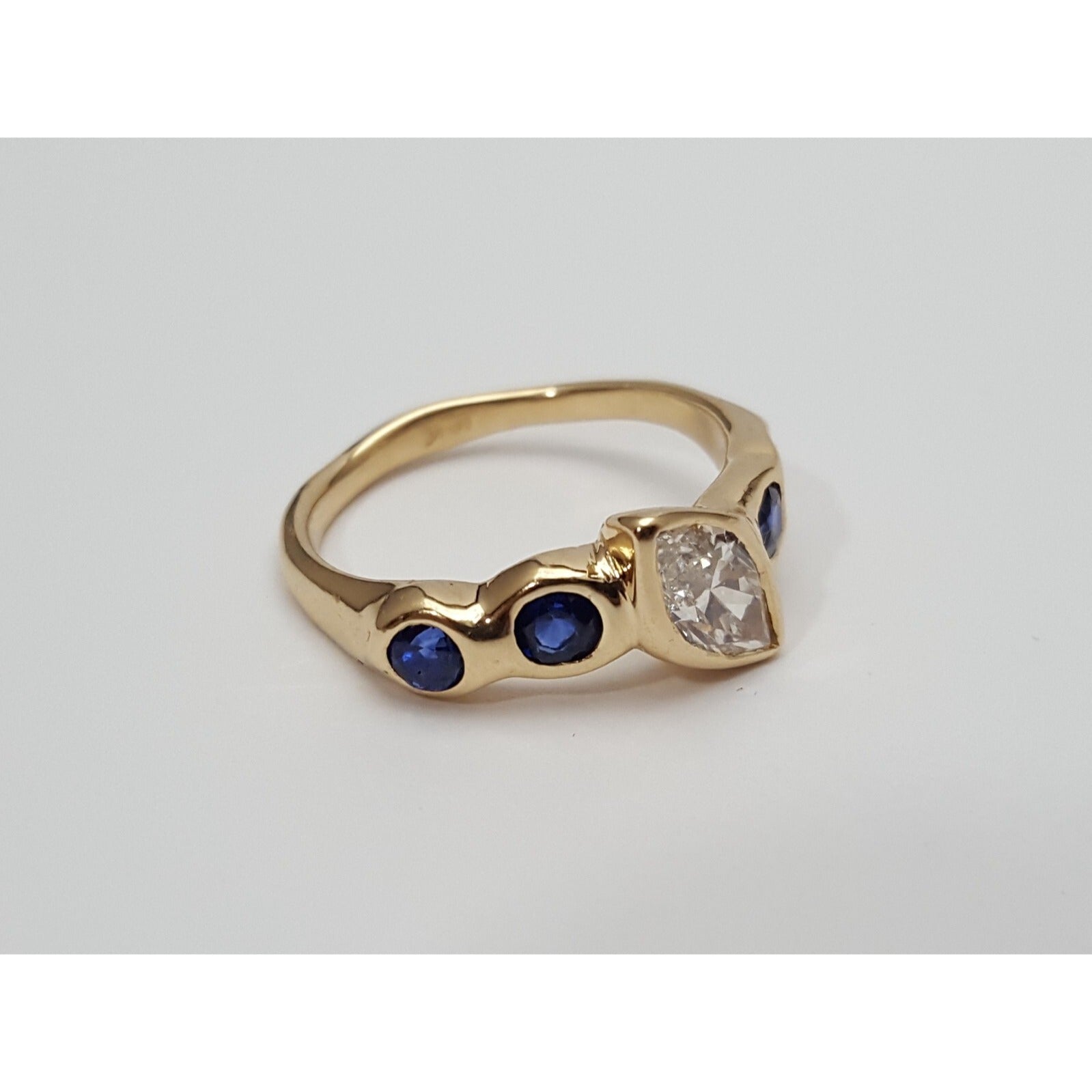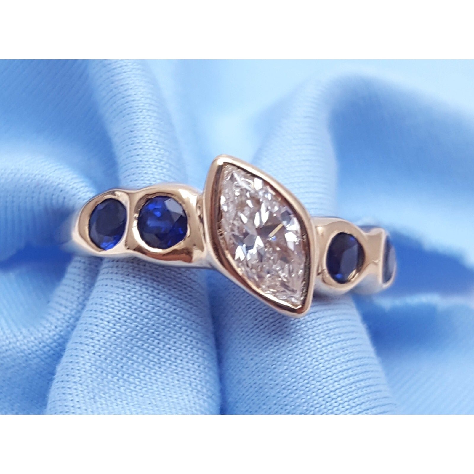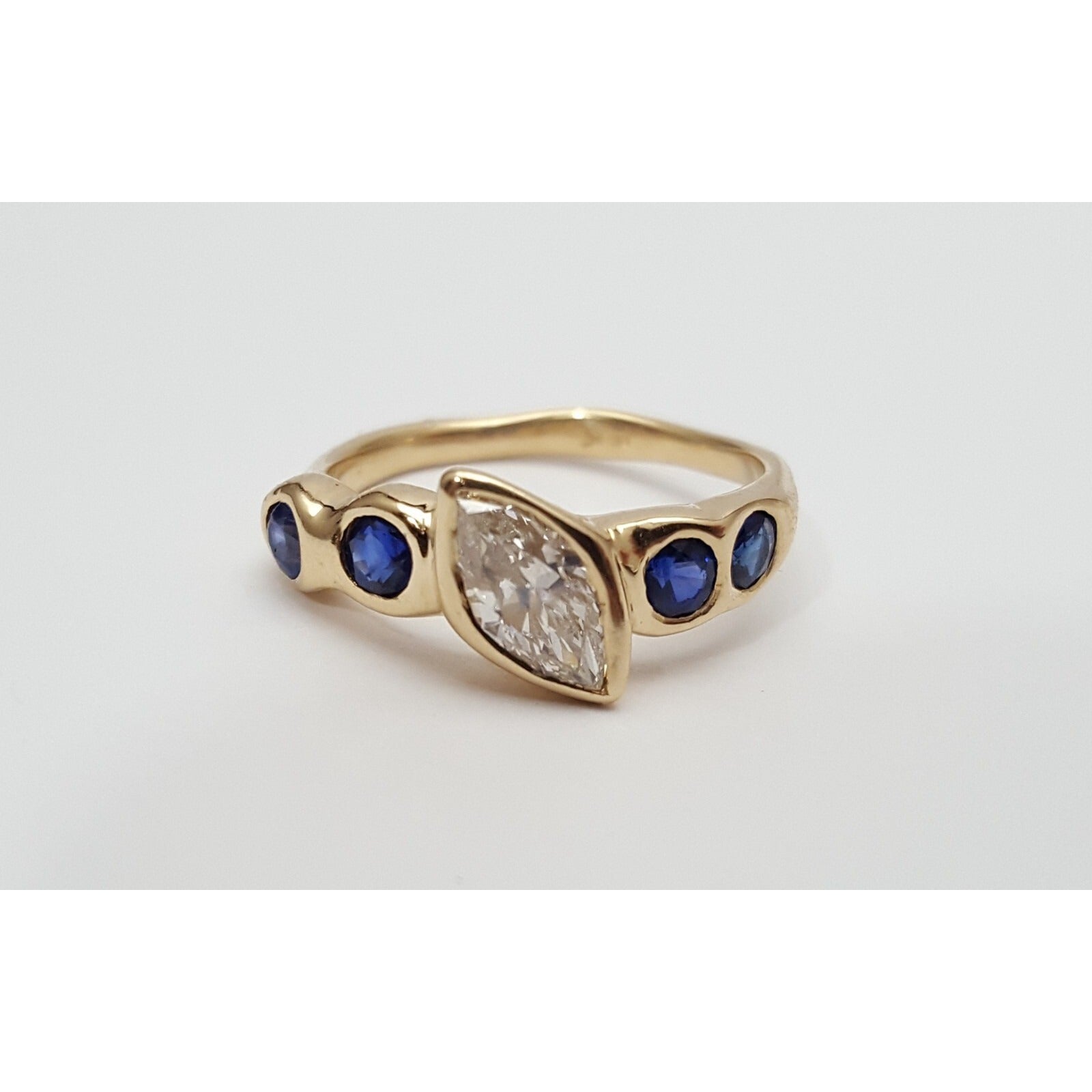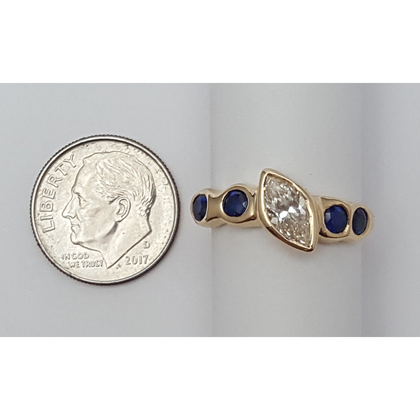Vintage 14K Yellow Gold Marquise Diamond & Round Sapphire Ring
