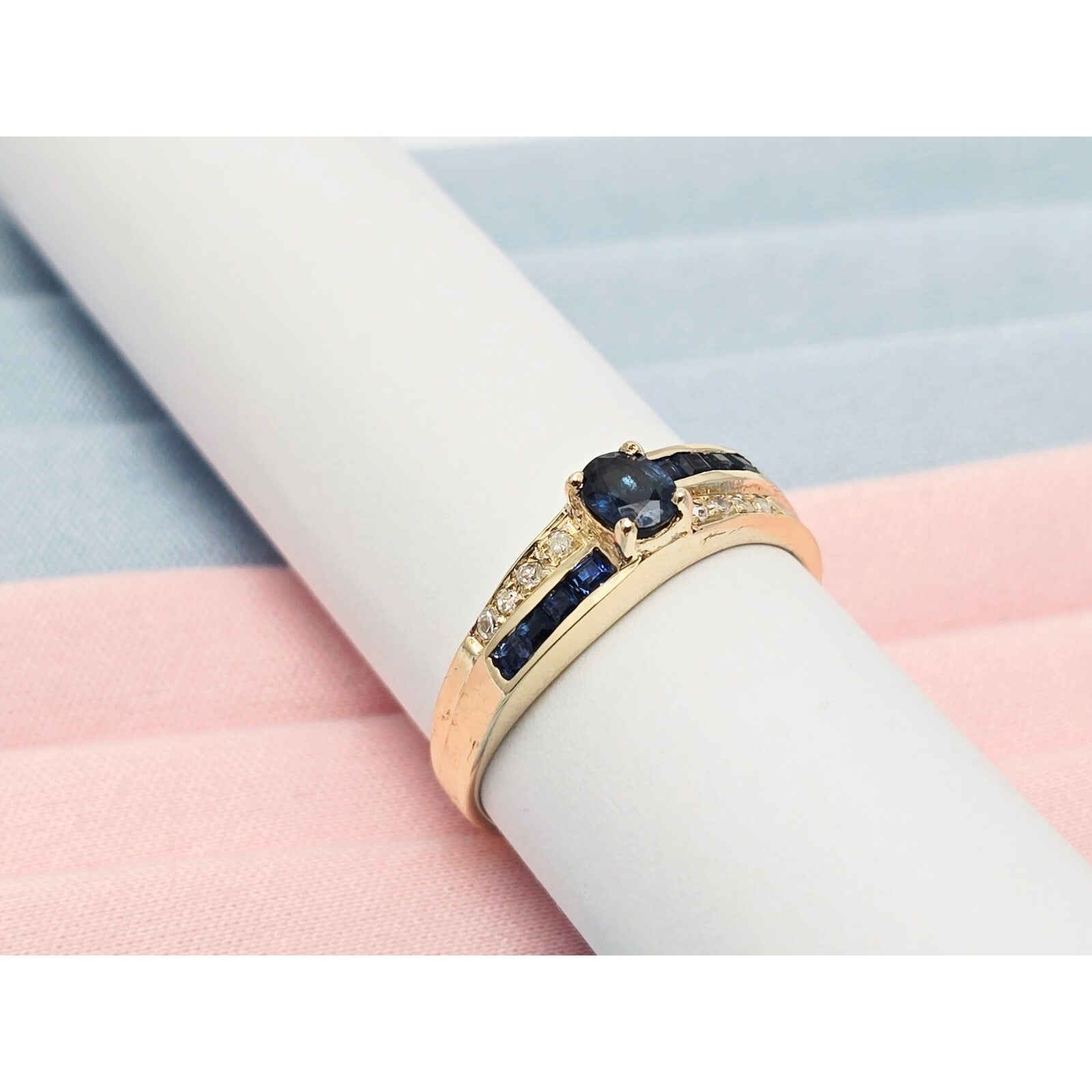 Vintage 8K Yellow Gold Blue Spinel & Diamond Ring