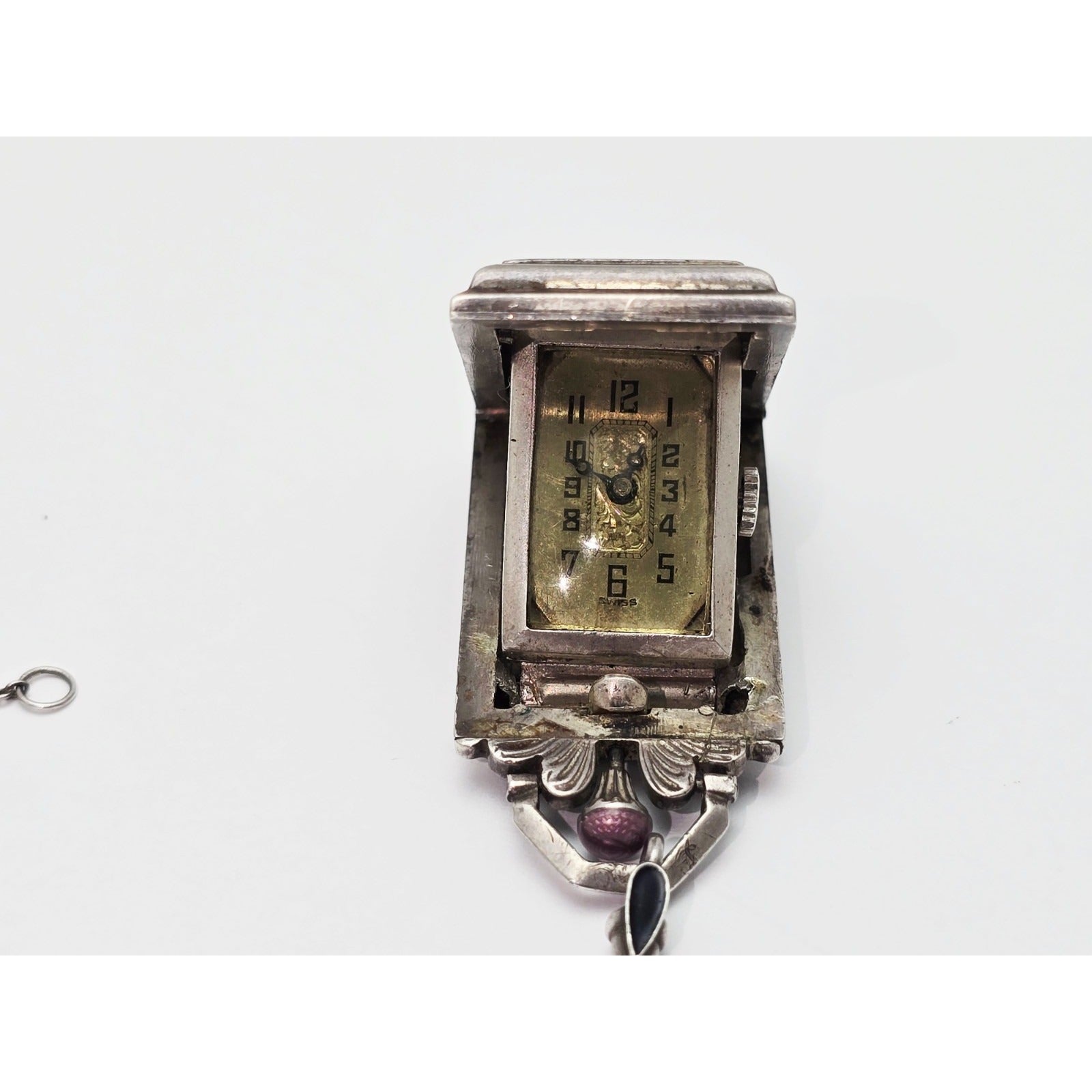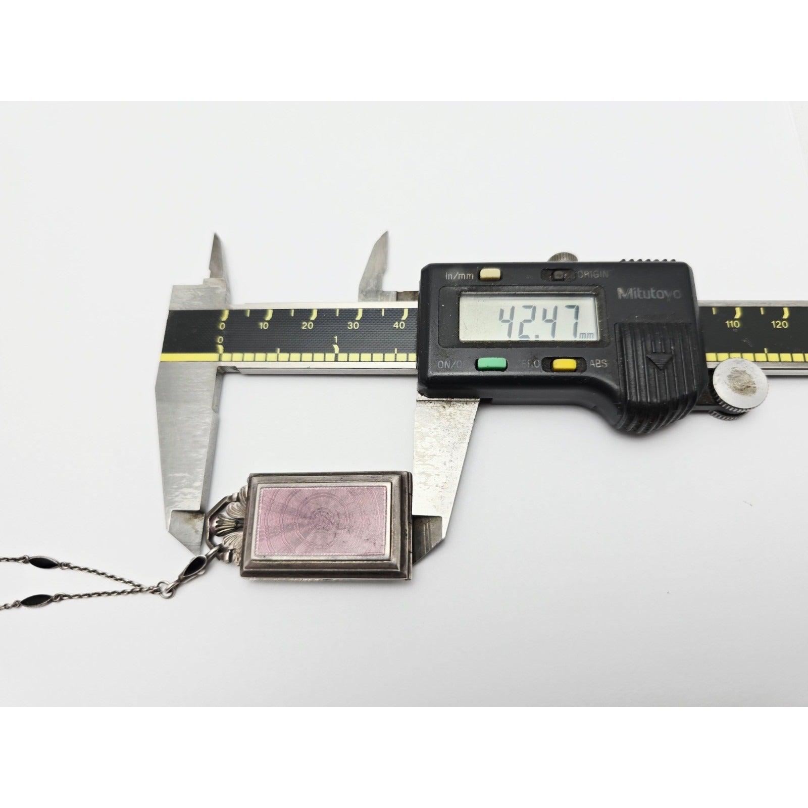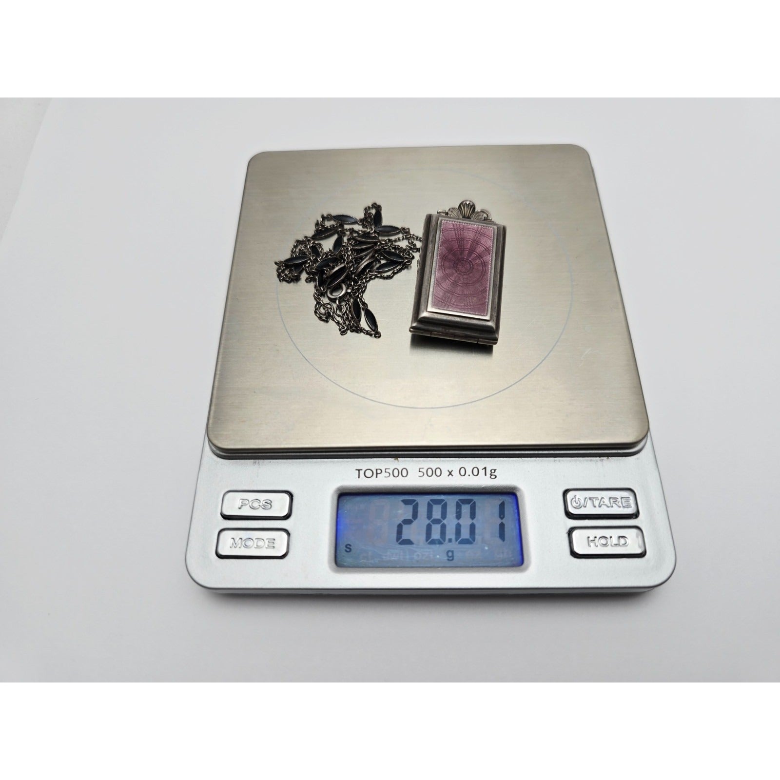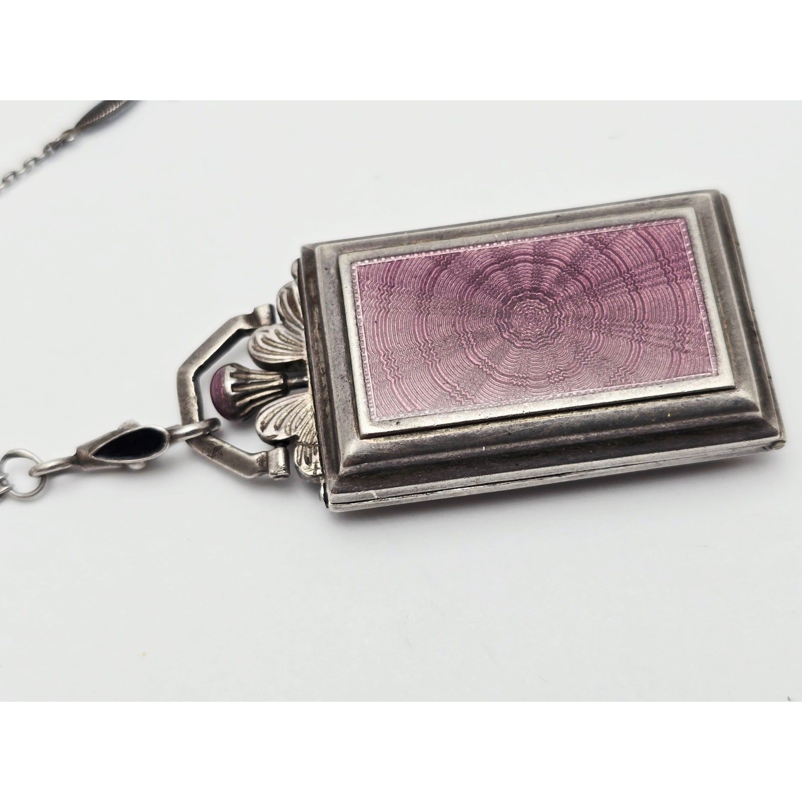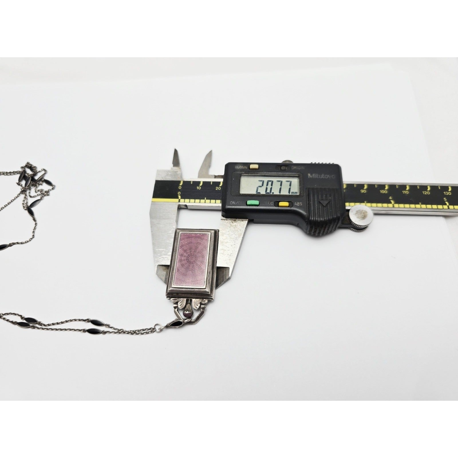 Vintage Art Deco Sterling Silver Black & Purple Enamel Pendant Watch Necklace