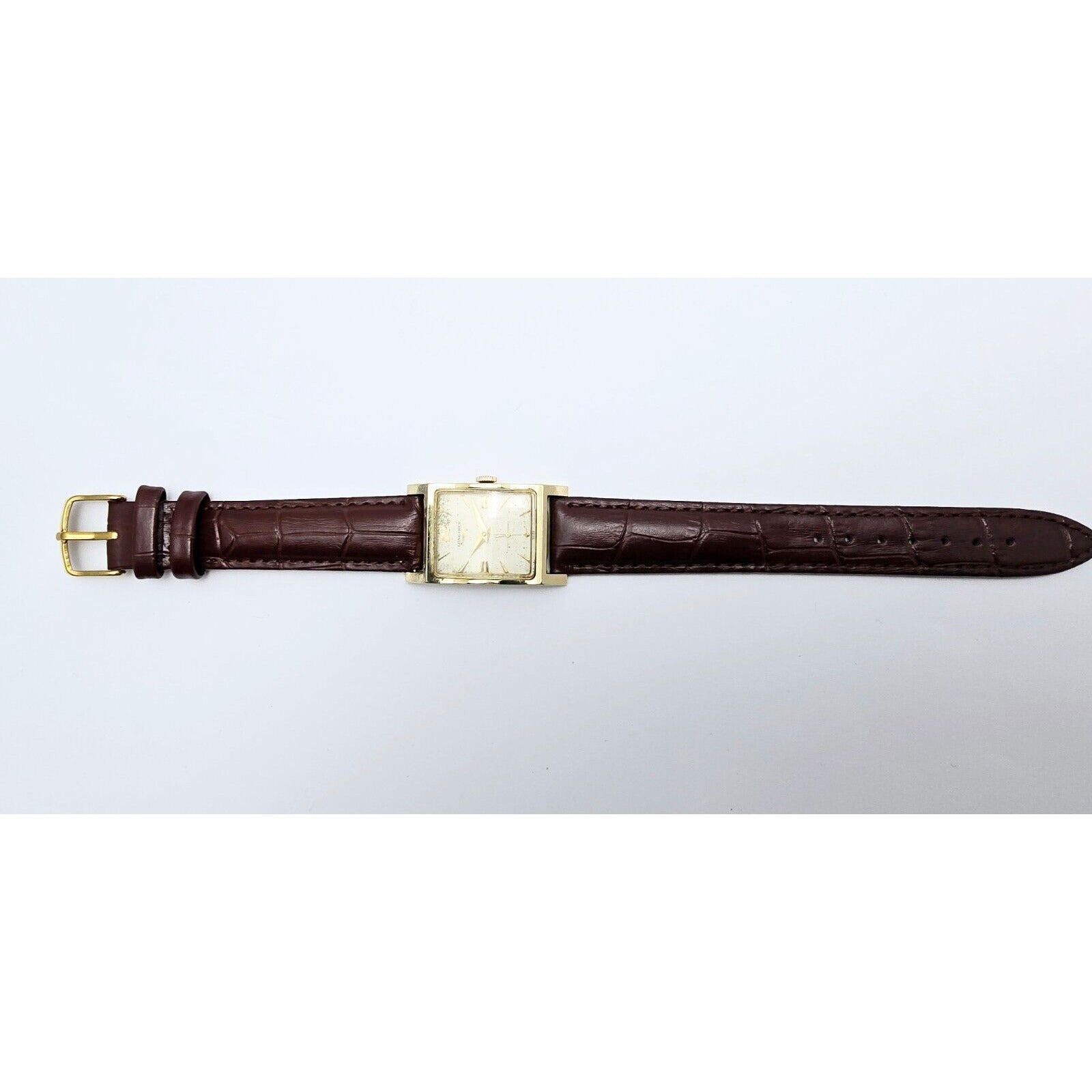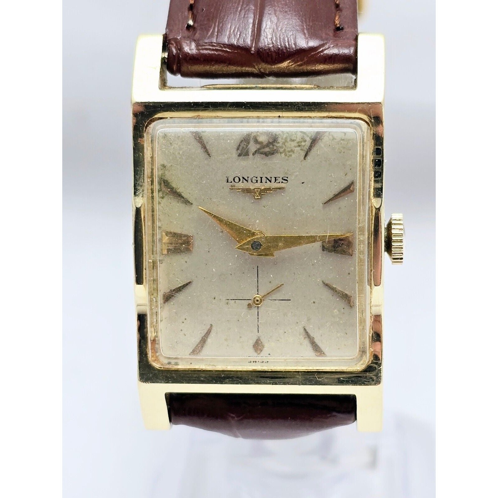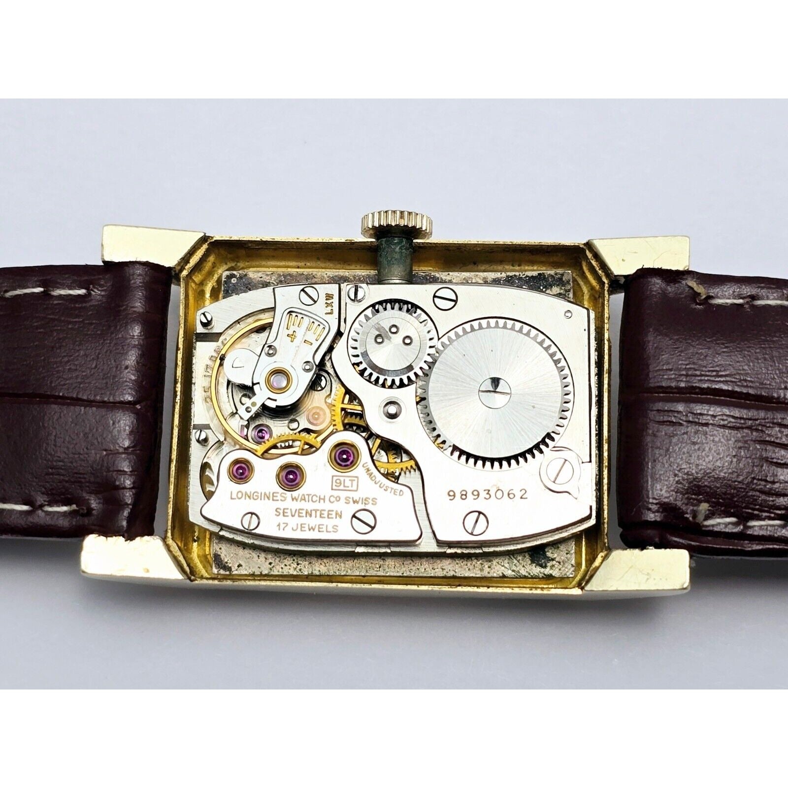 Vintage Longines 9LT 17J Jewels 14K Yellow Gold Manual Wind Brown Leather Watch