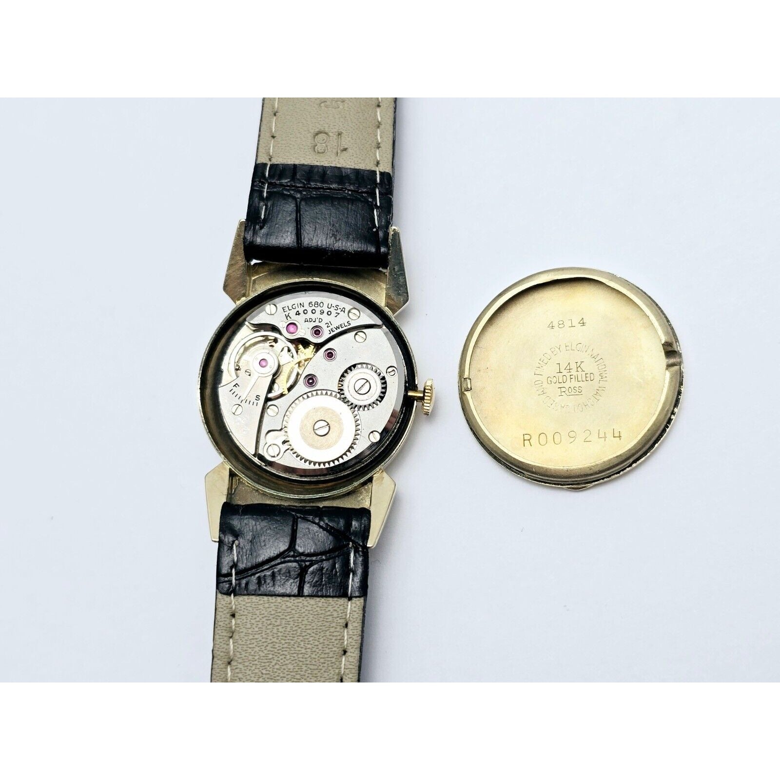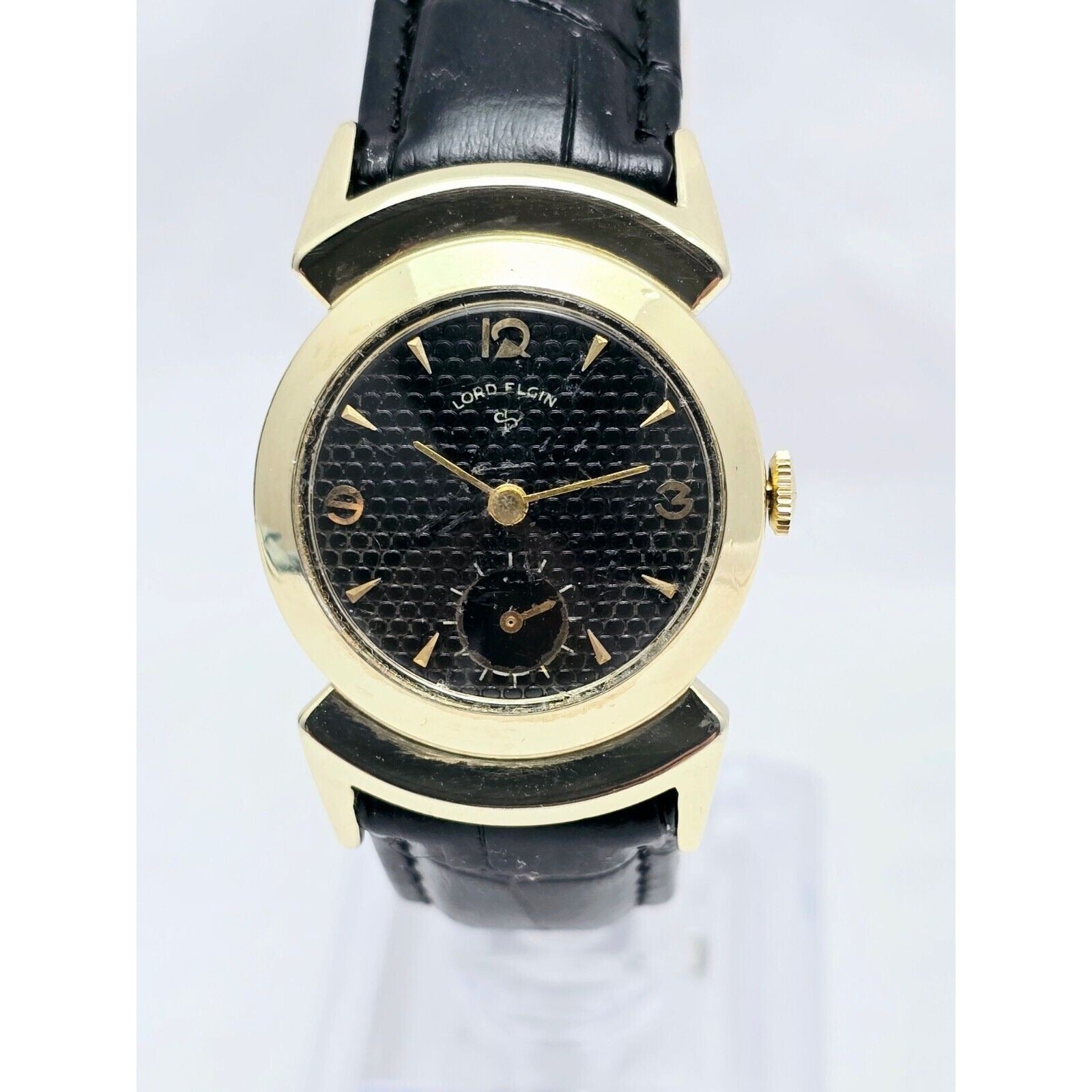 Vintage Lord Elgin Black Knight 14K Gold Filled 680 21j Manual Wind Watch 27mm