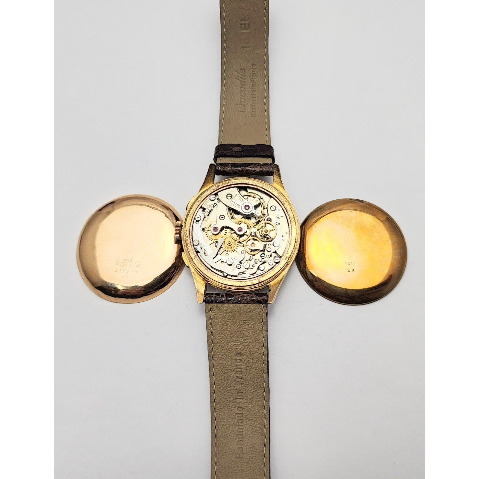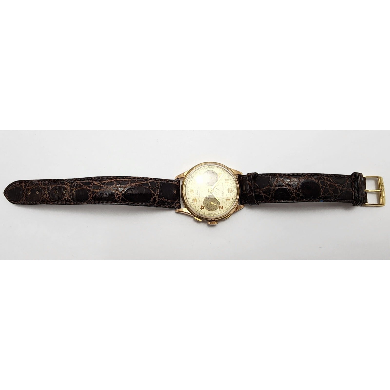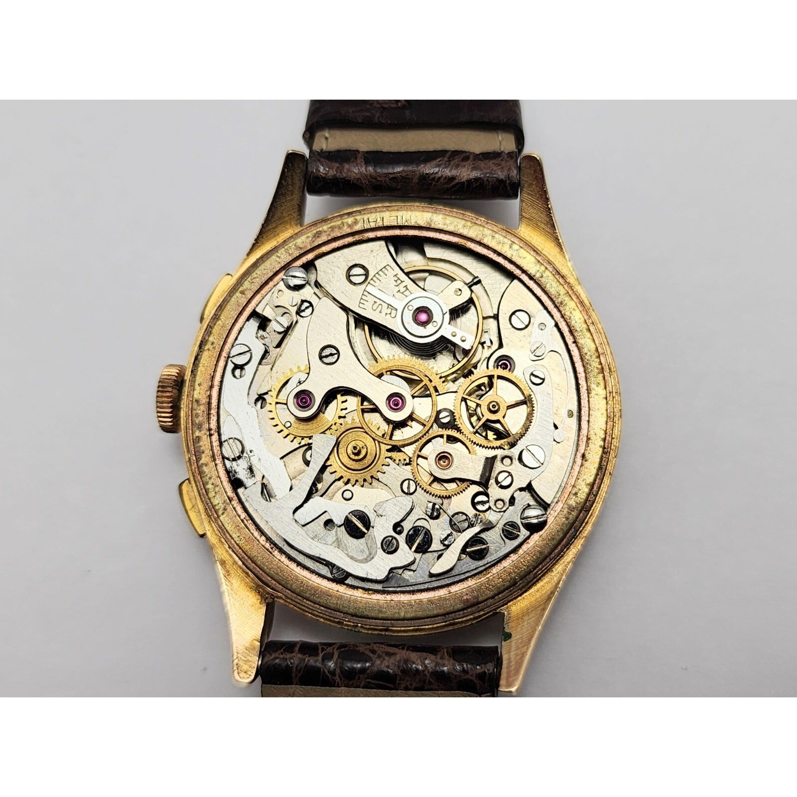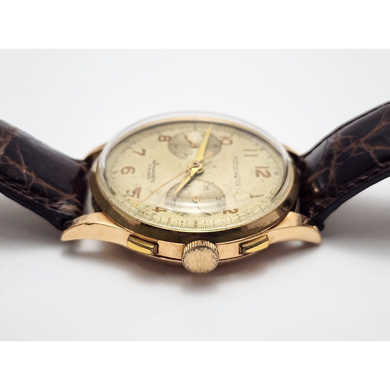 Vintage Monval 18K Rose Gold 37mm 17J Antimagnetic Chronograph Swiss Watch