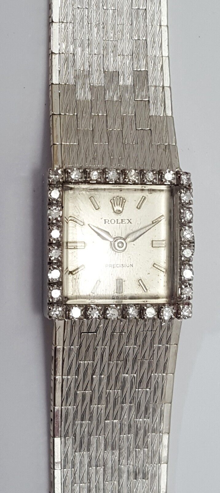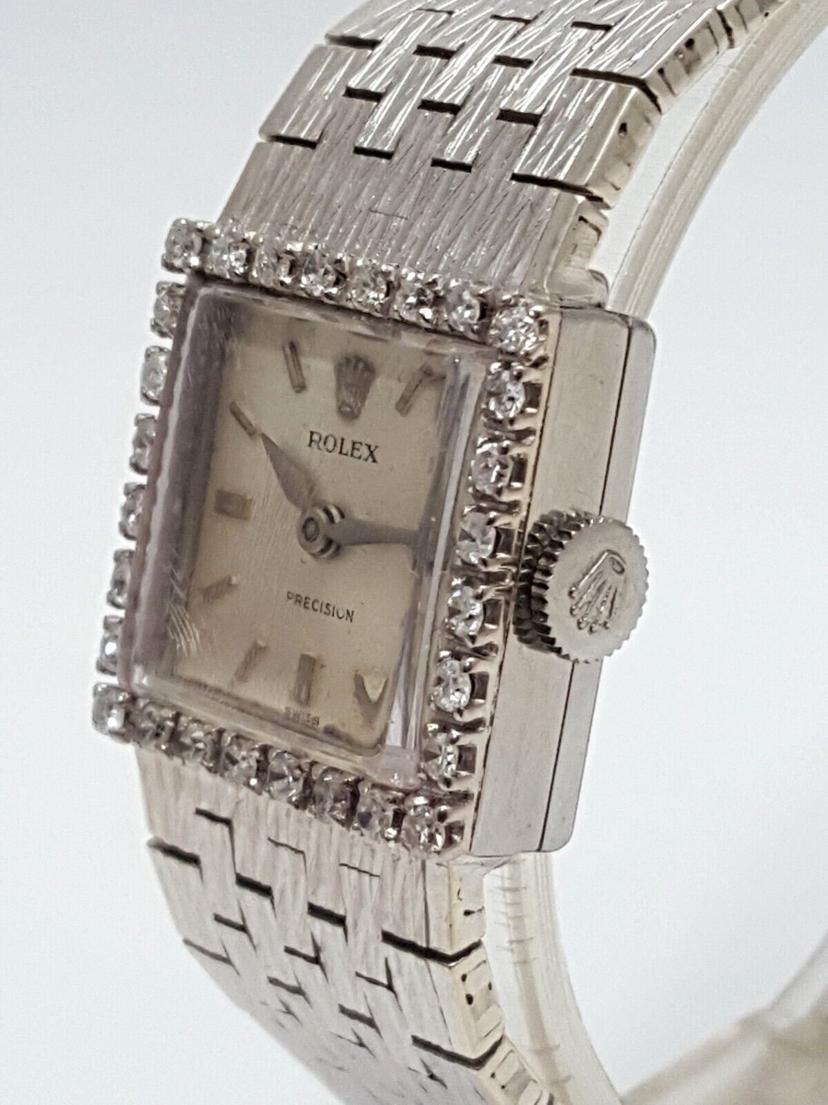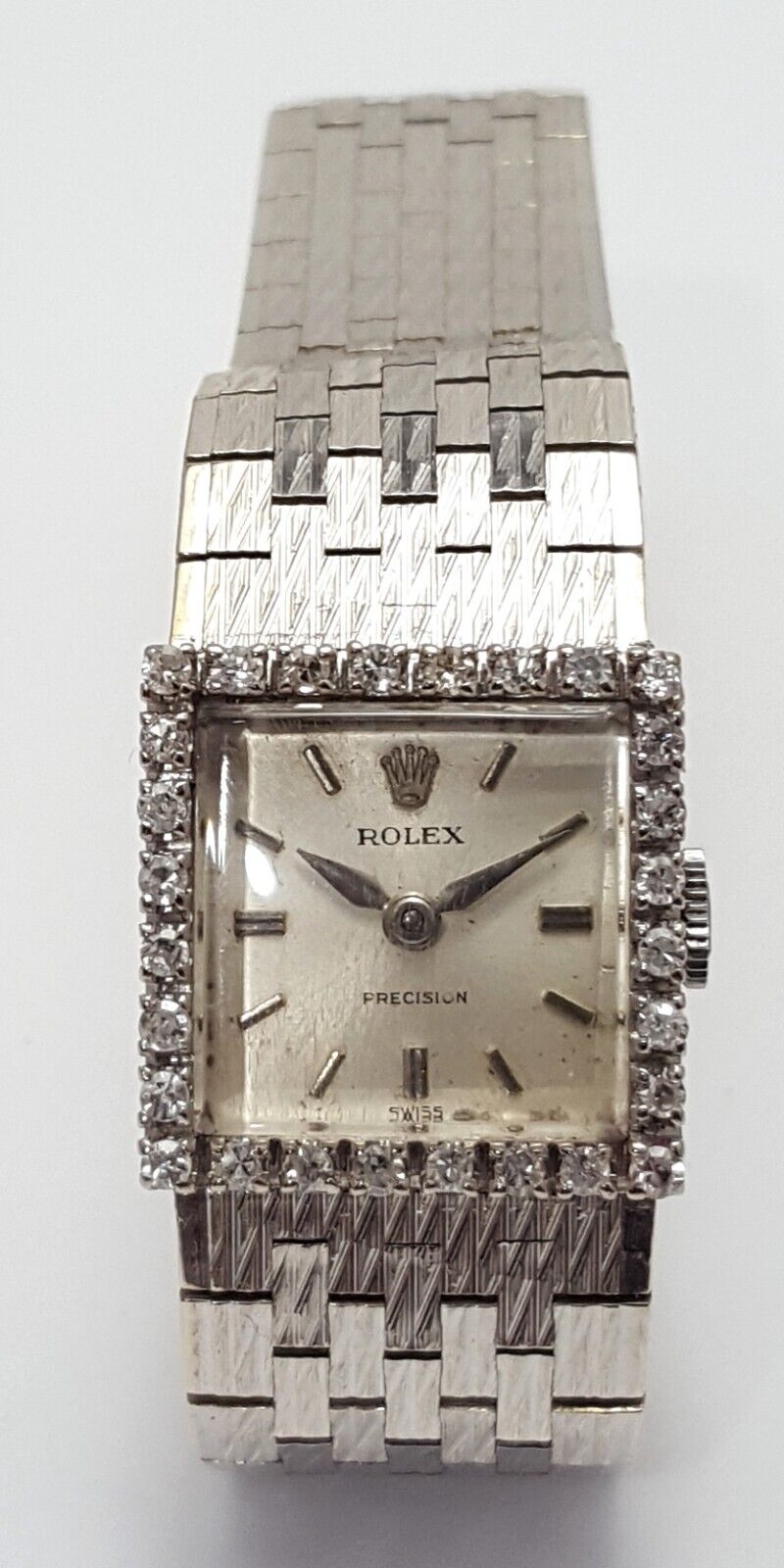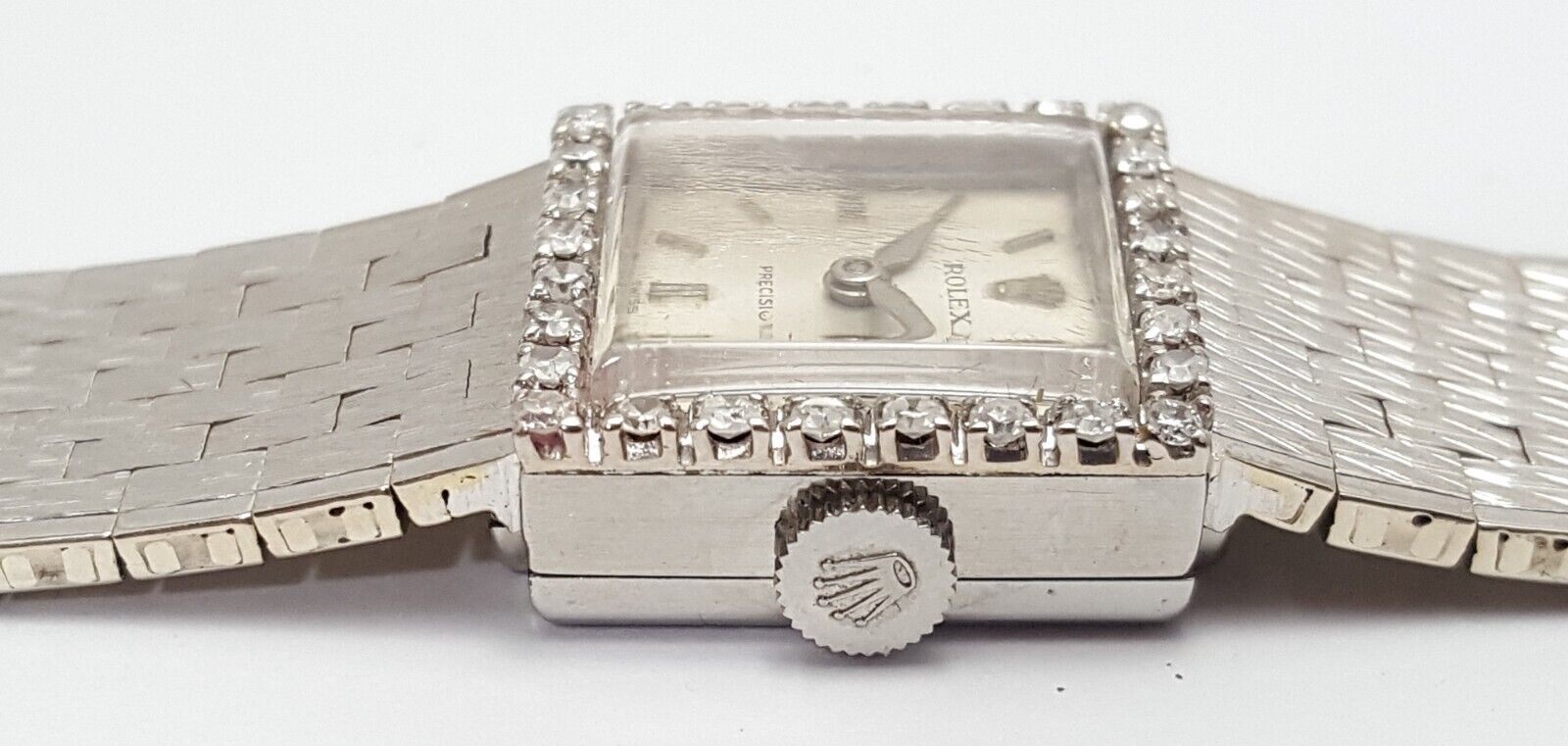 Vintage Rolex 18k White Gold Bracelet Precision Diamond Bezel 3408 Calibre 1300