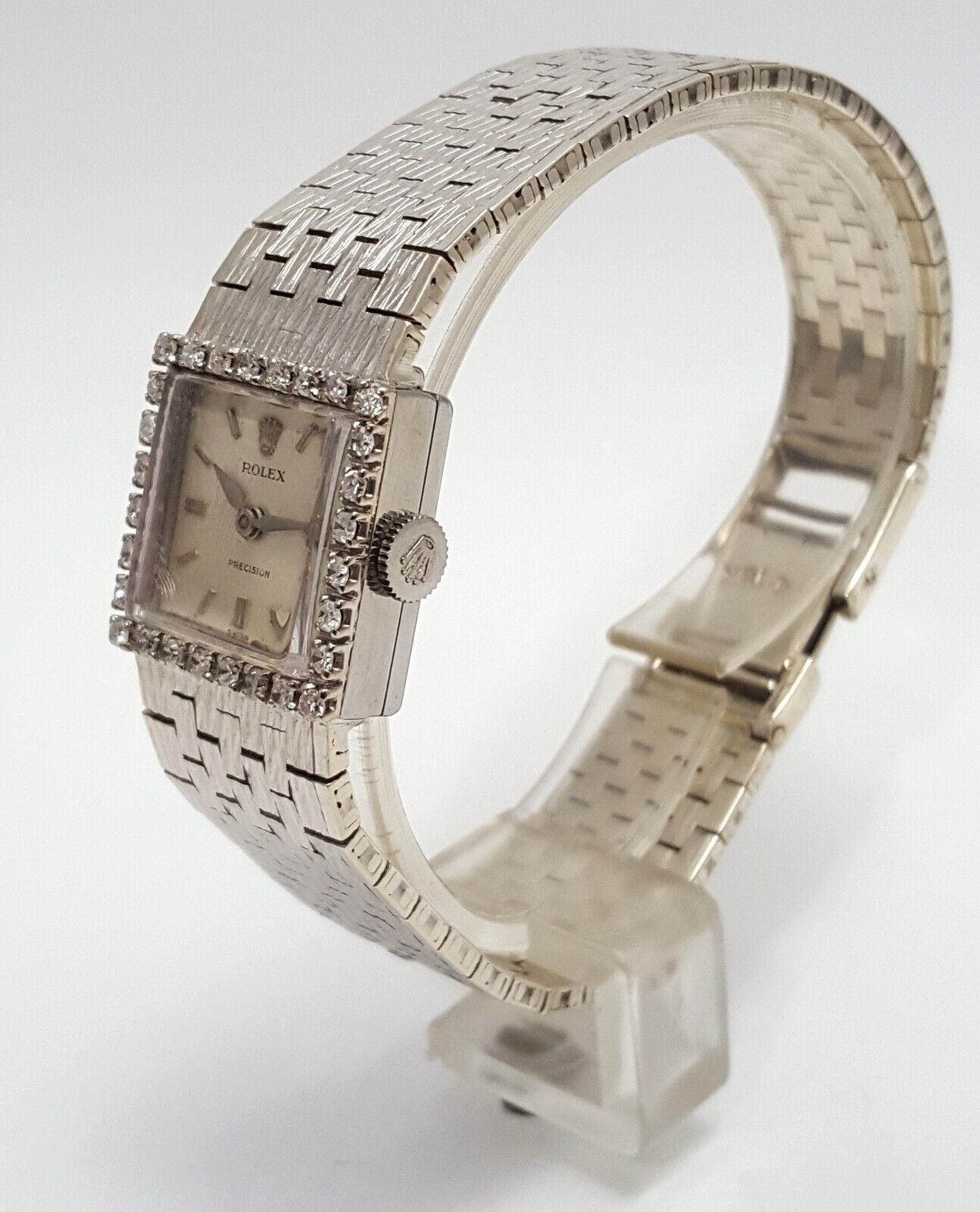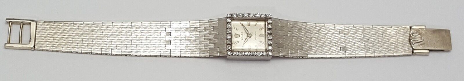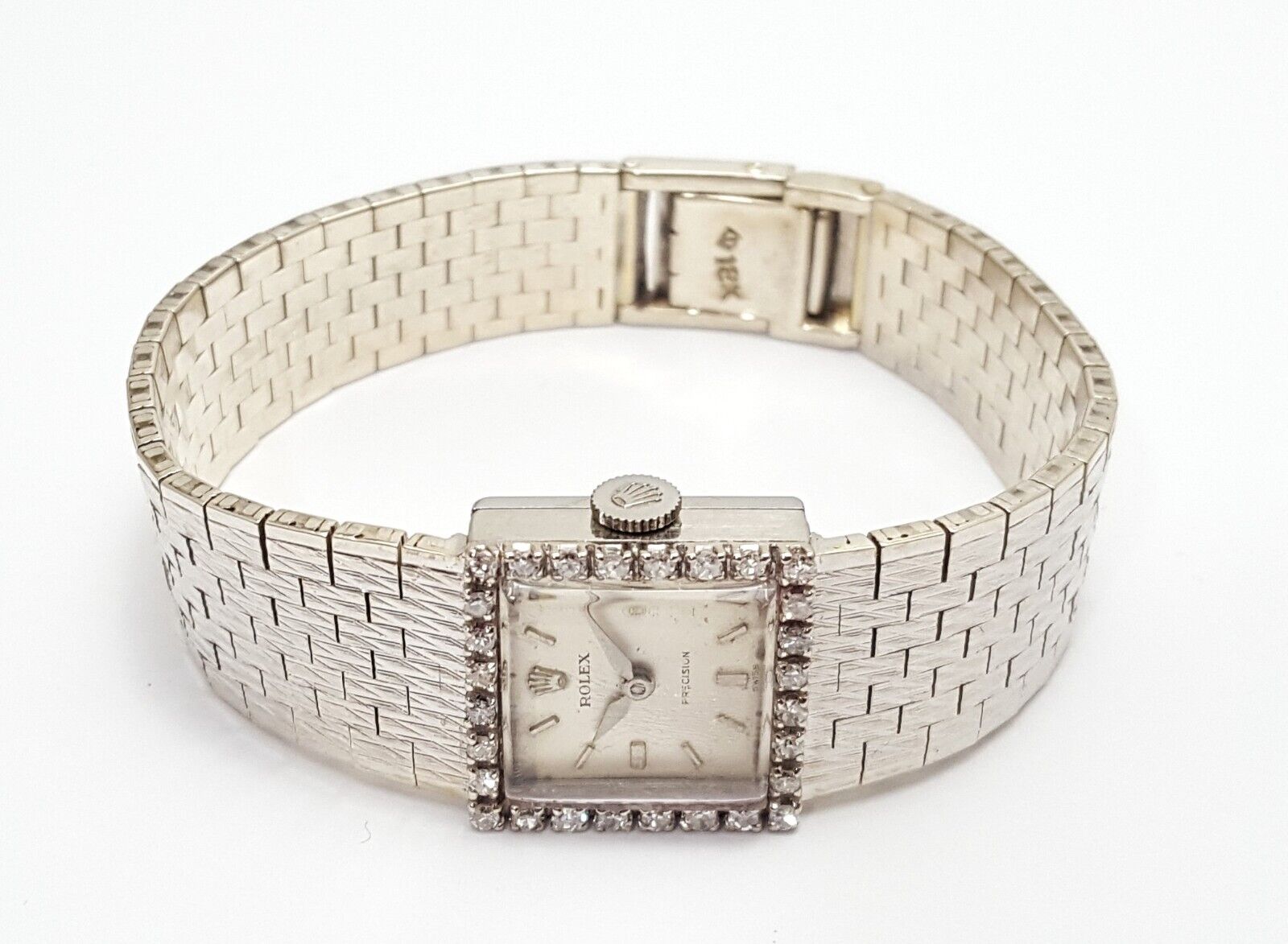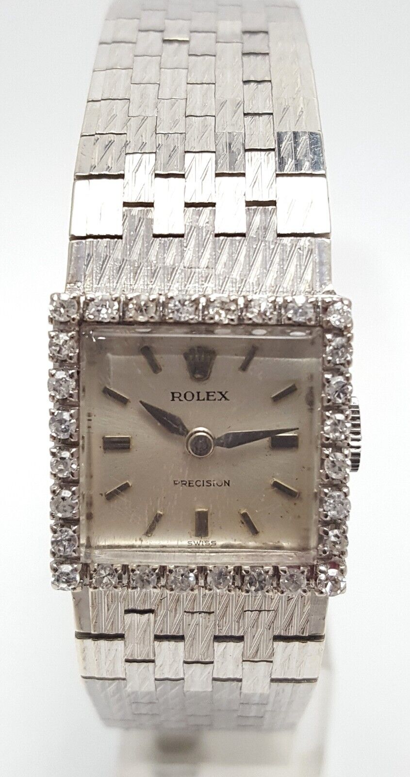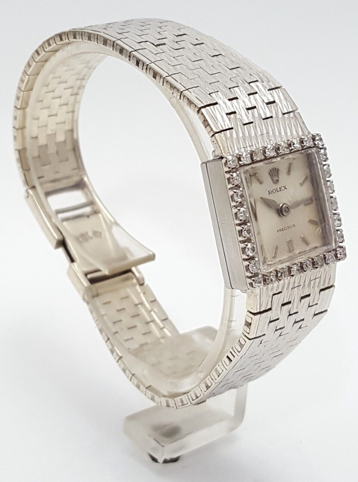 Vintage Rolex 18k White Gold Bracelet Precision Diamond Bezel 3408 Calibre 1300