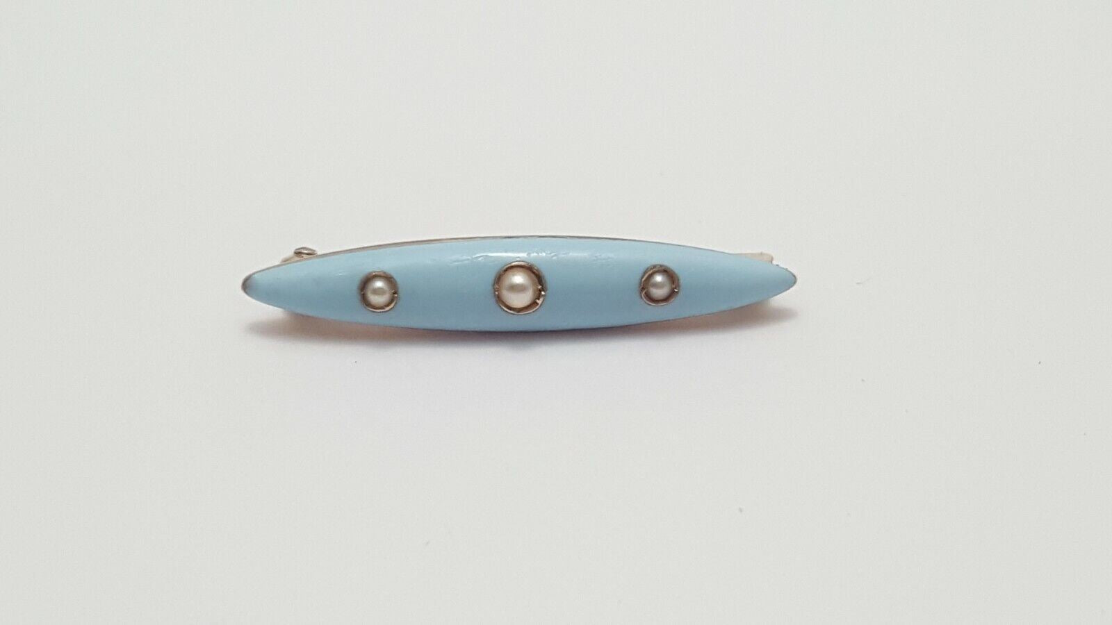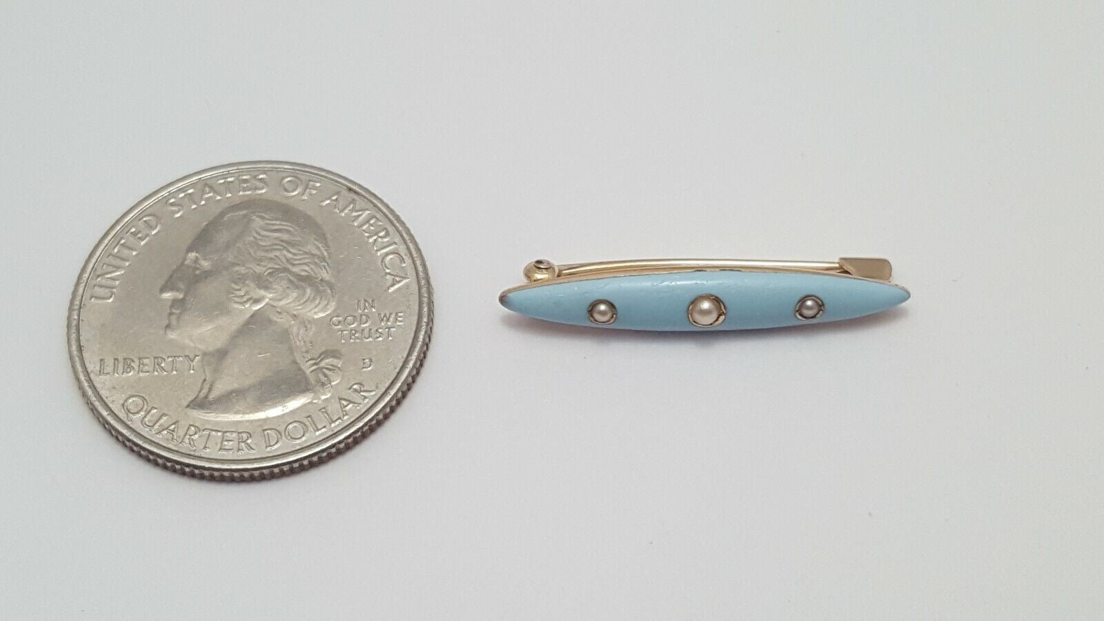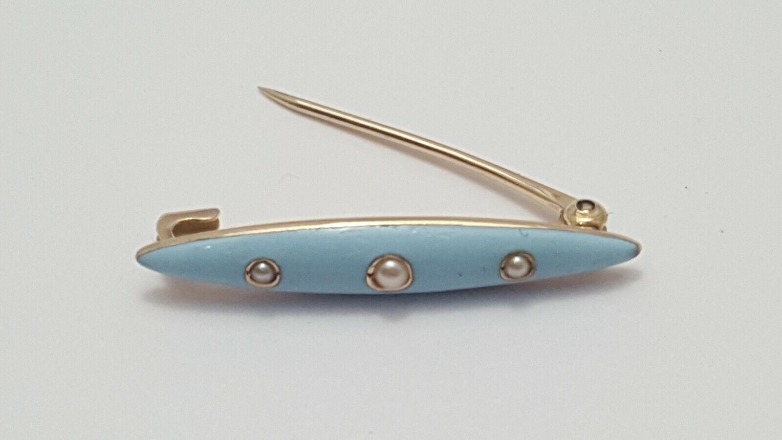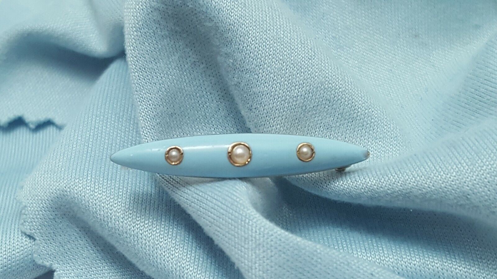 Vintage Victorian 14K Solid Yellow Gold LSA Designer Pearl & Enamel Brooch Pin