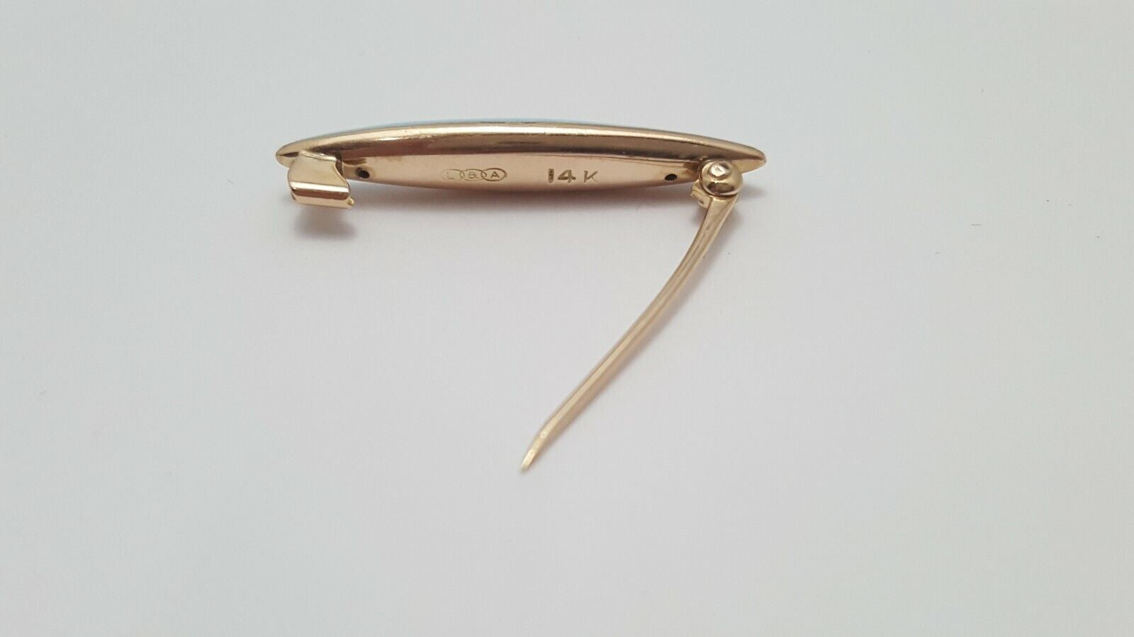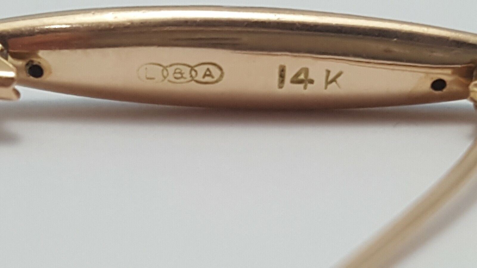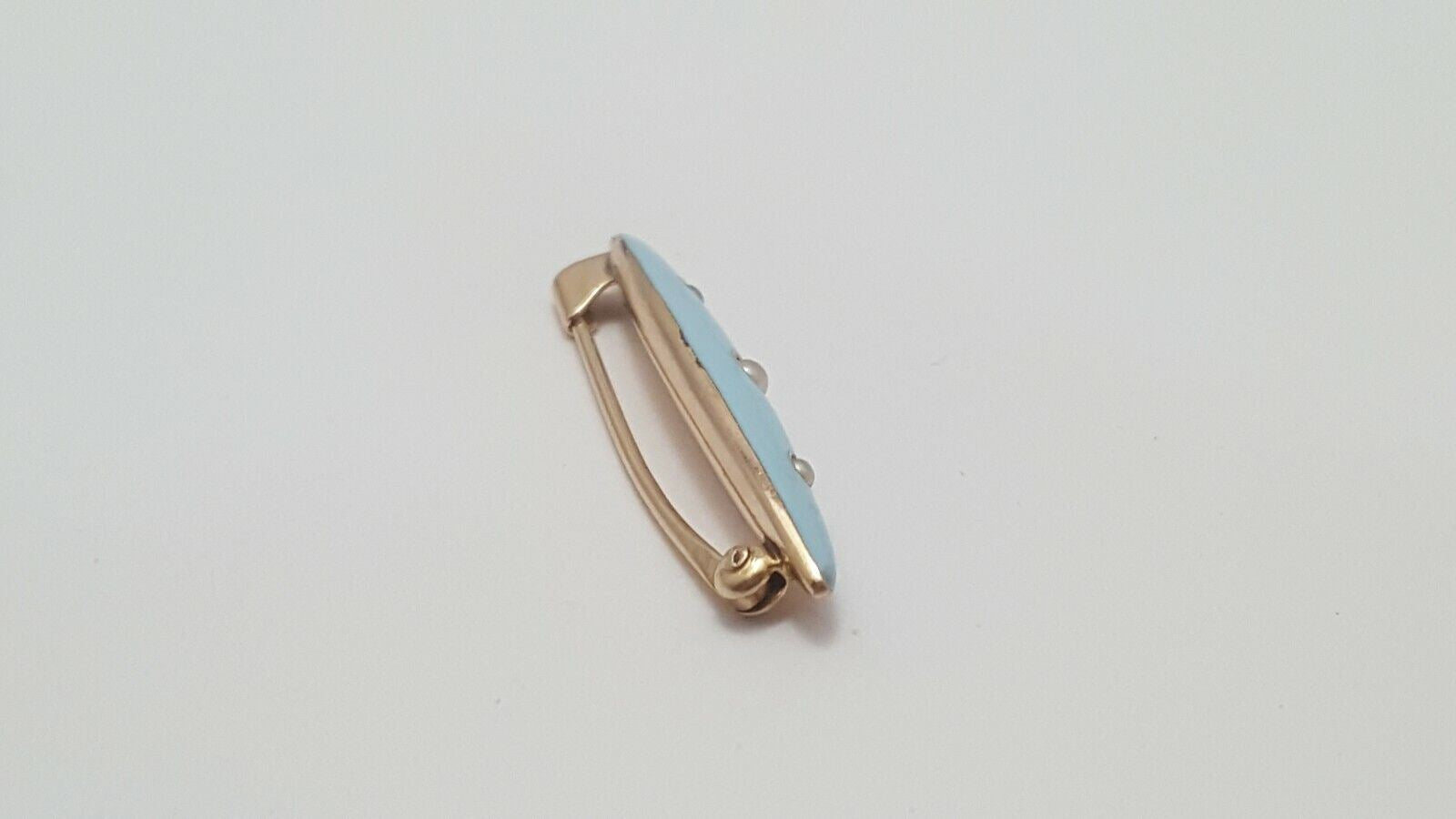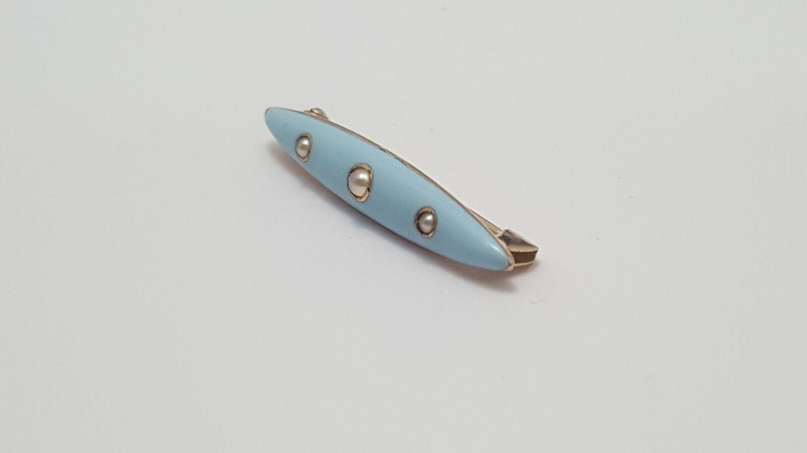Vintage Victorian 14K Solid Yellow Gold LSA Designer Pearl & Enamel Brooch Pin