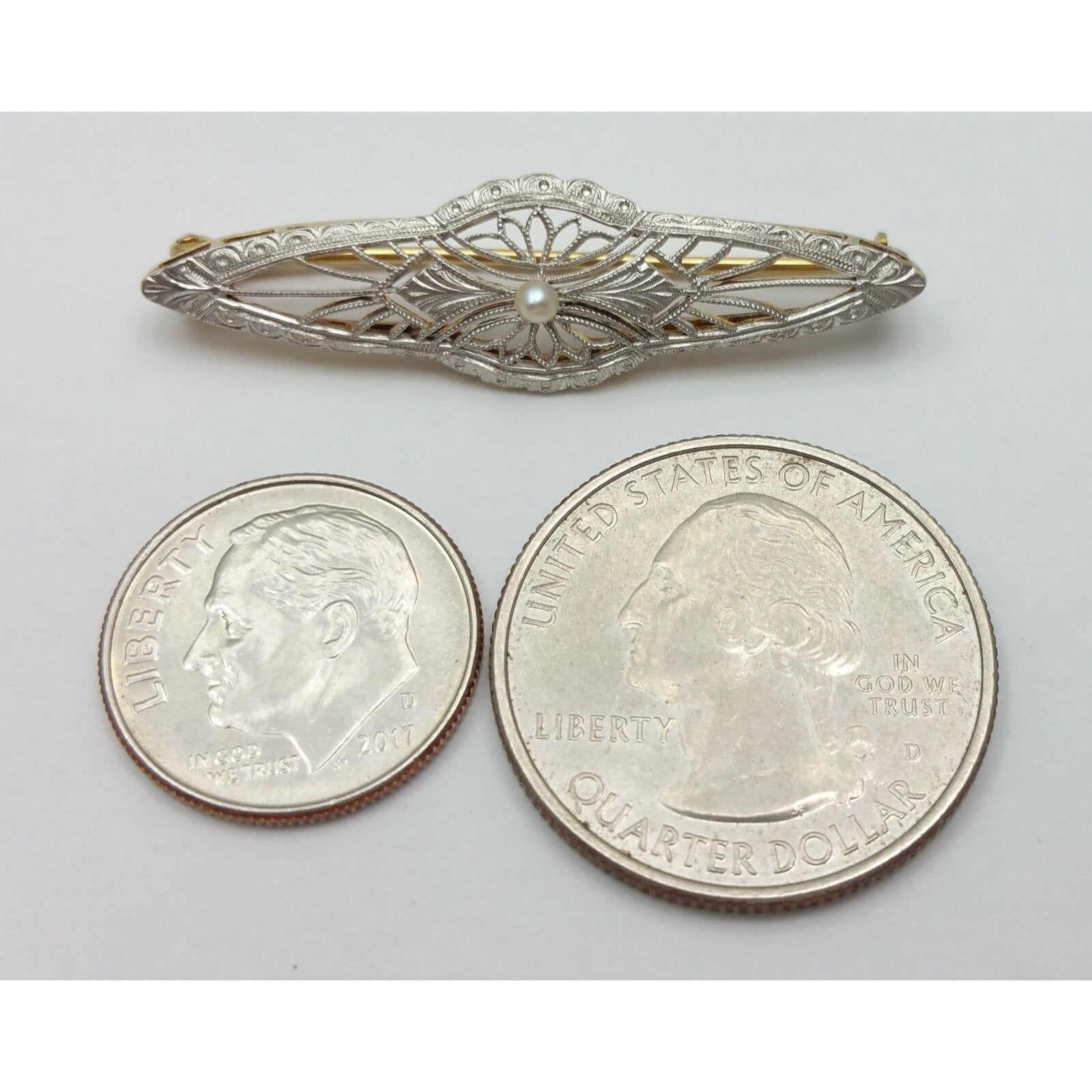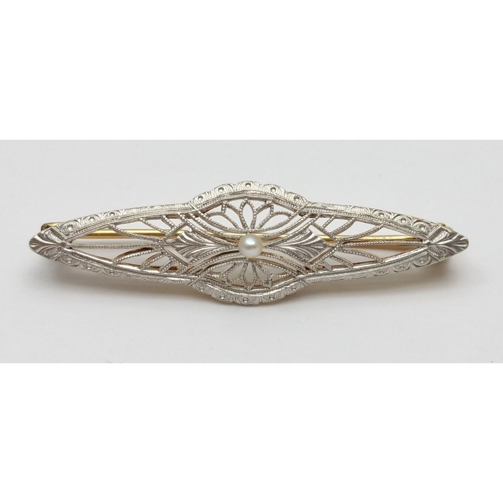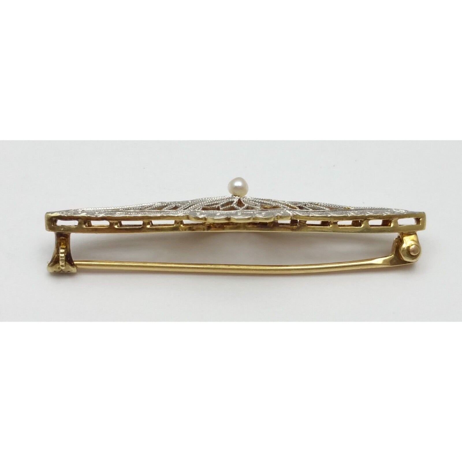 Vintage Victorian 14K Two Tone Gold Pearl Brooch Pin