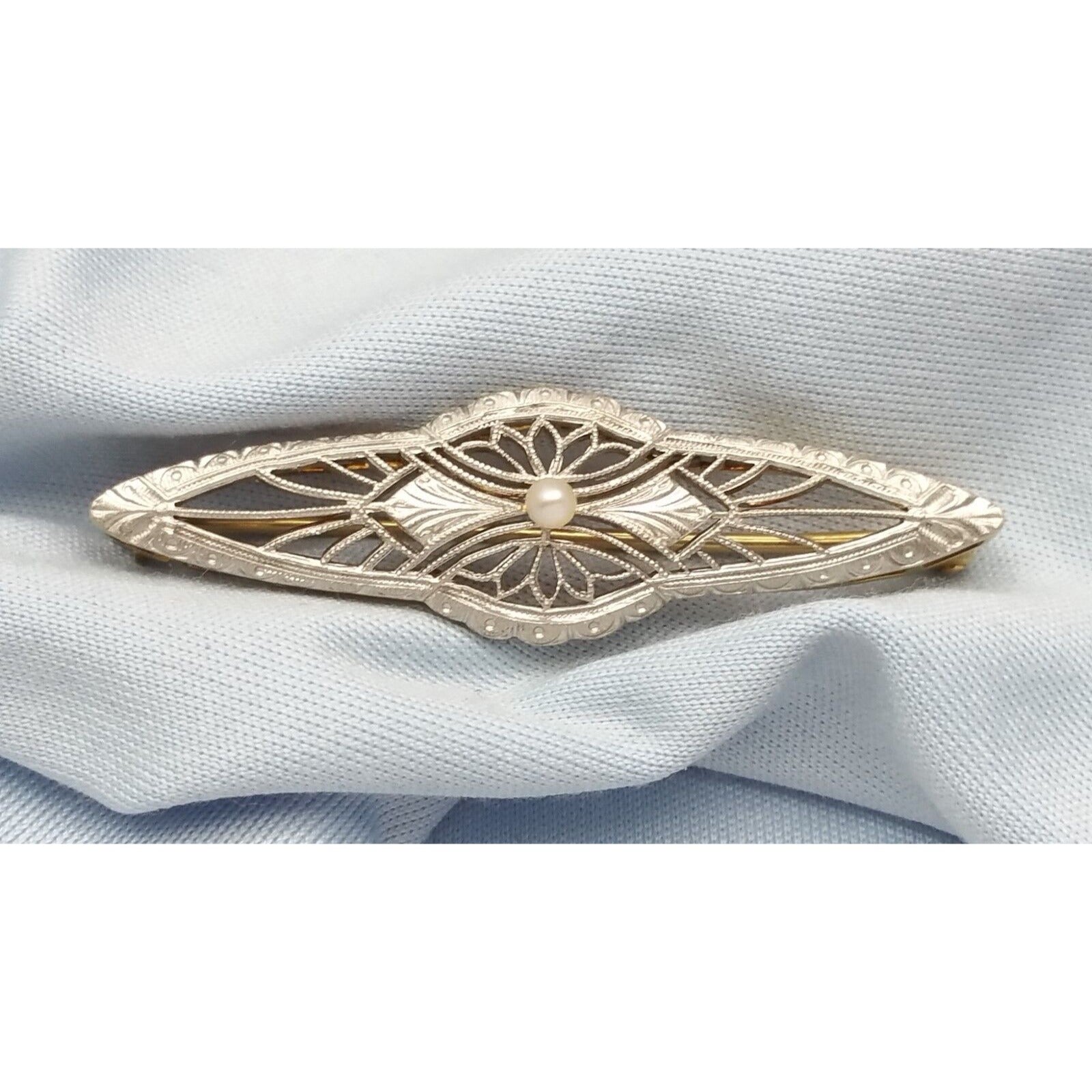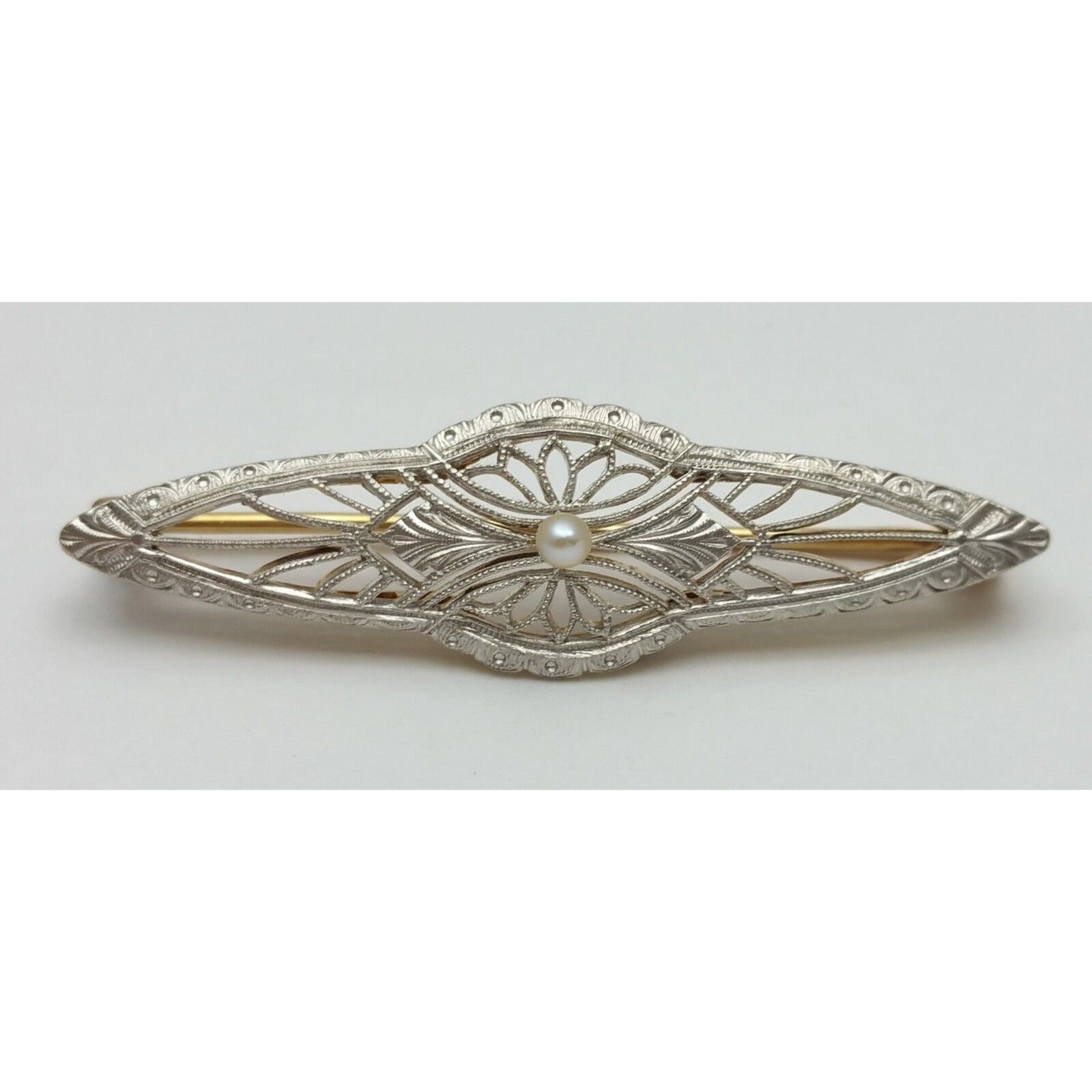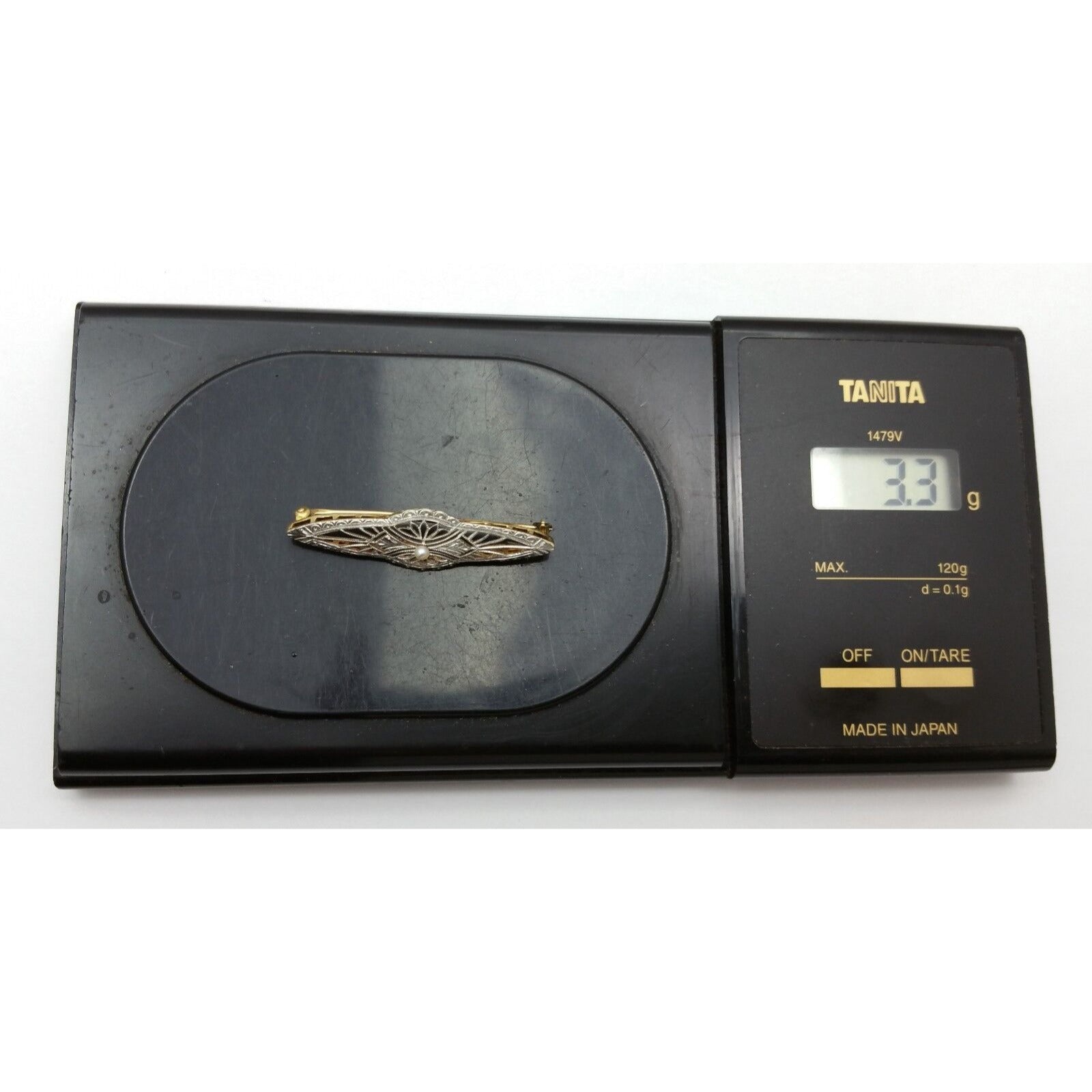 Vintage Victorian 14K Two Tone Gold Pearl Brooch Pin