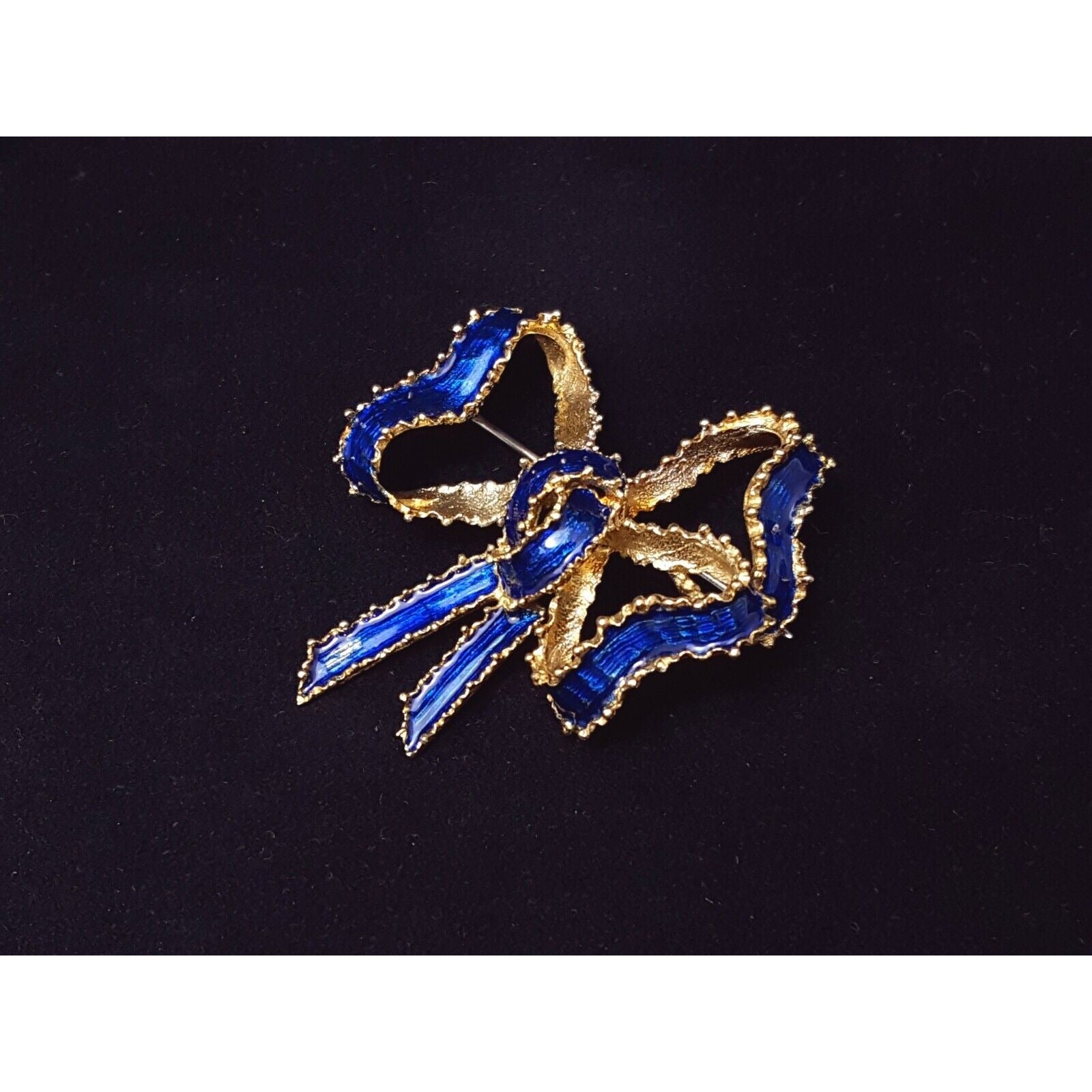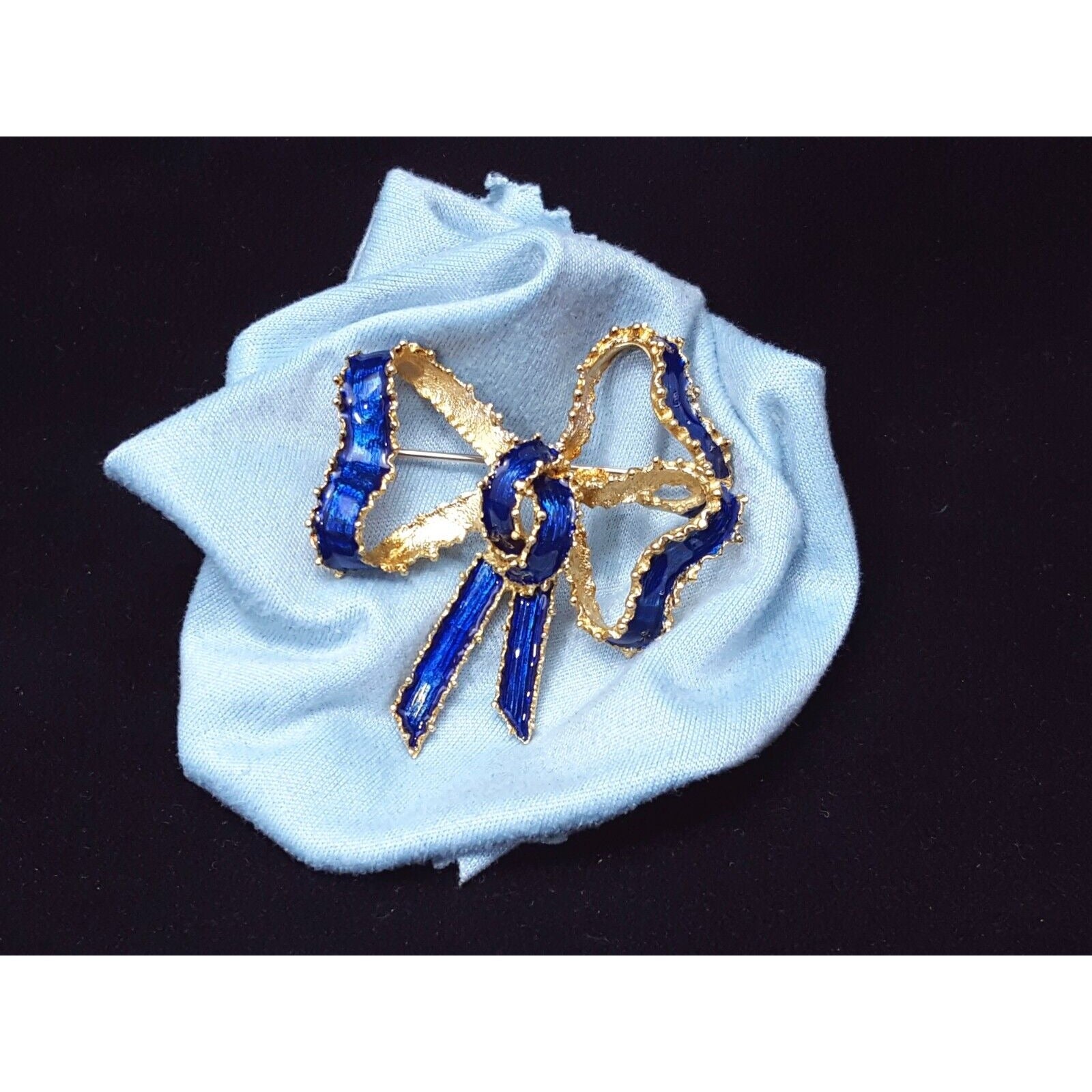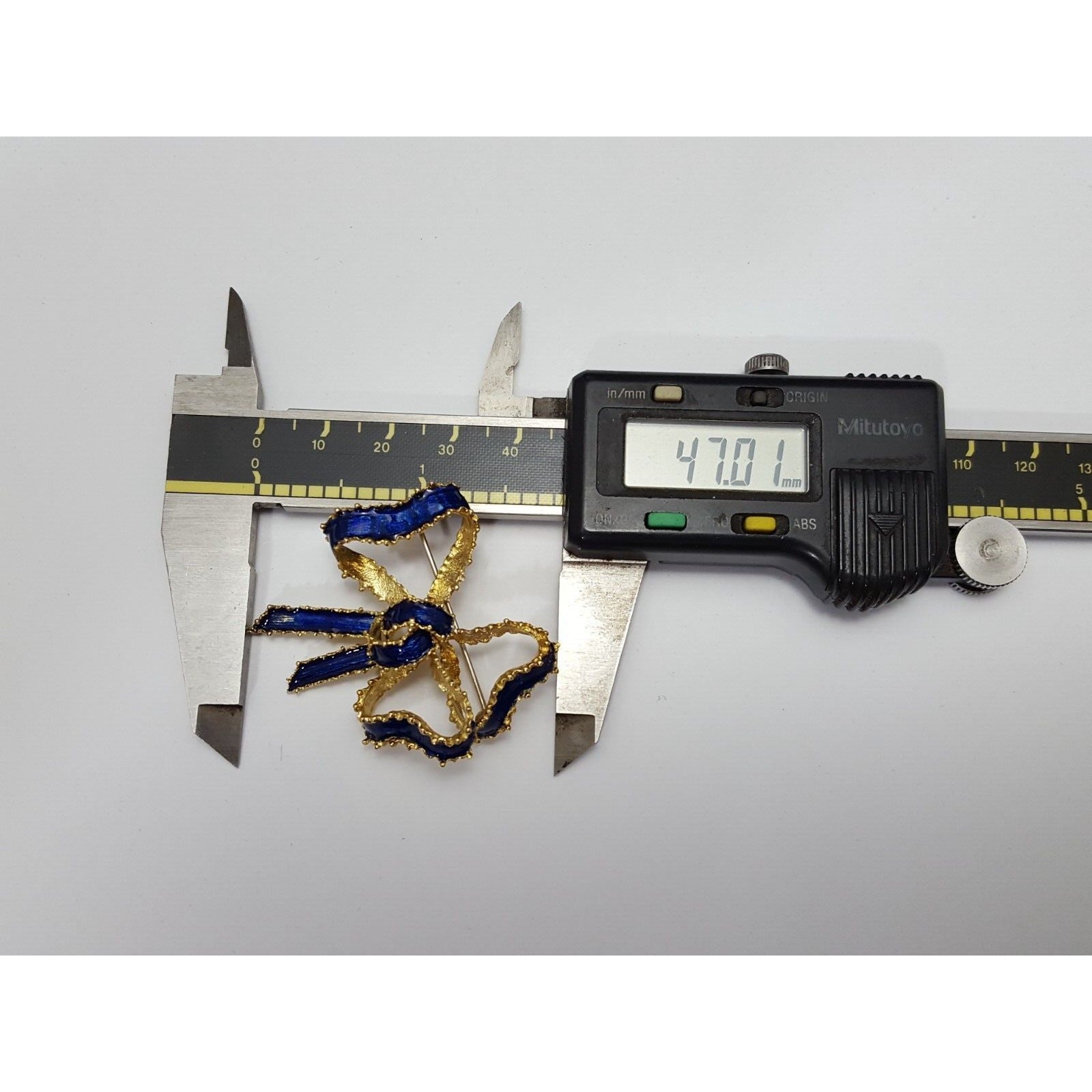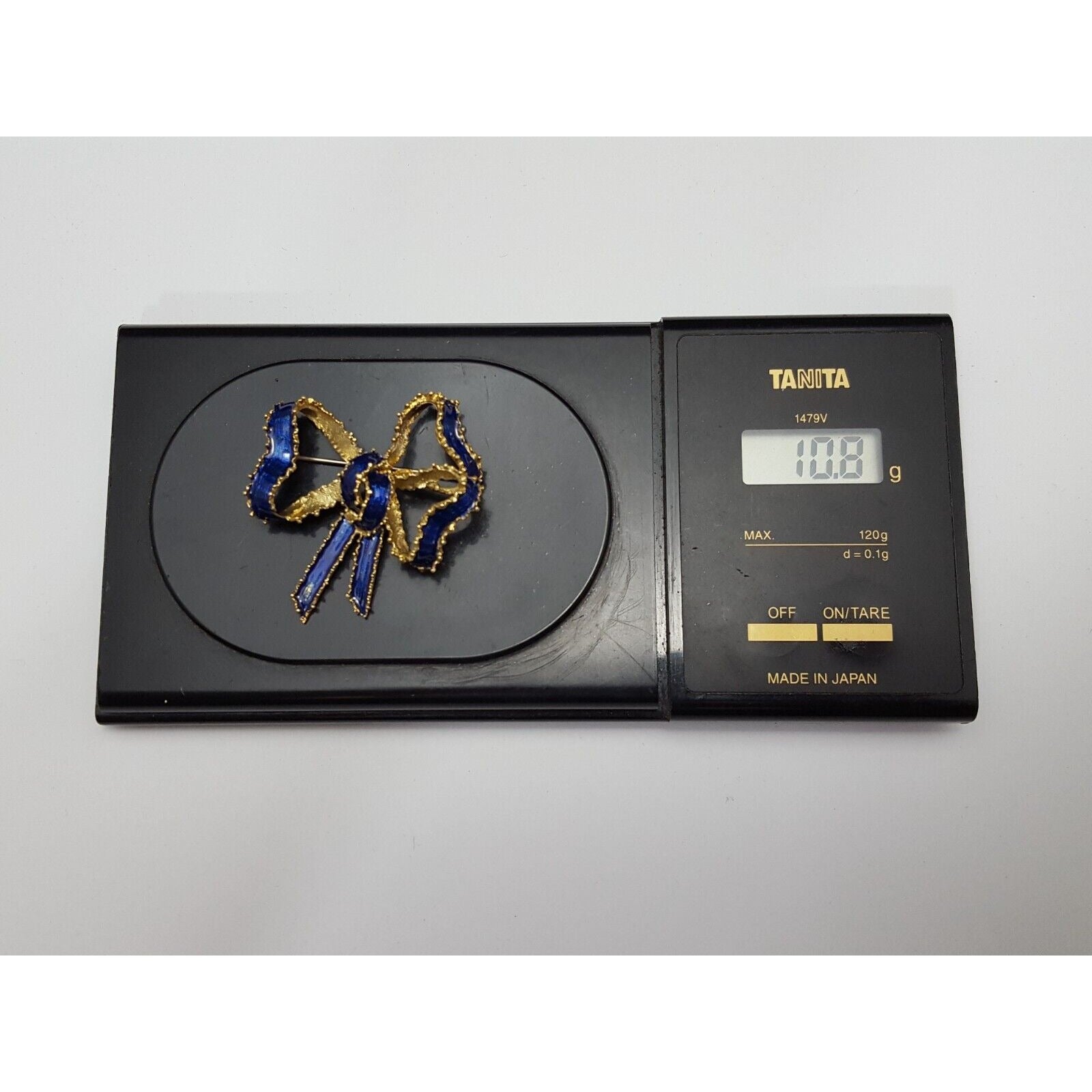 Vintage Victorian Tiffany & Co 18K Solid Yellow Gold Blue Enamel Bow Brooch Pin