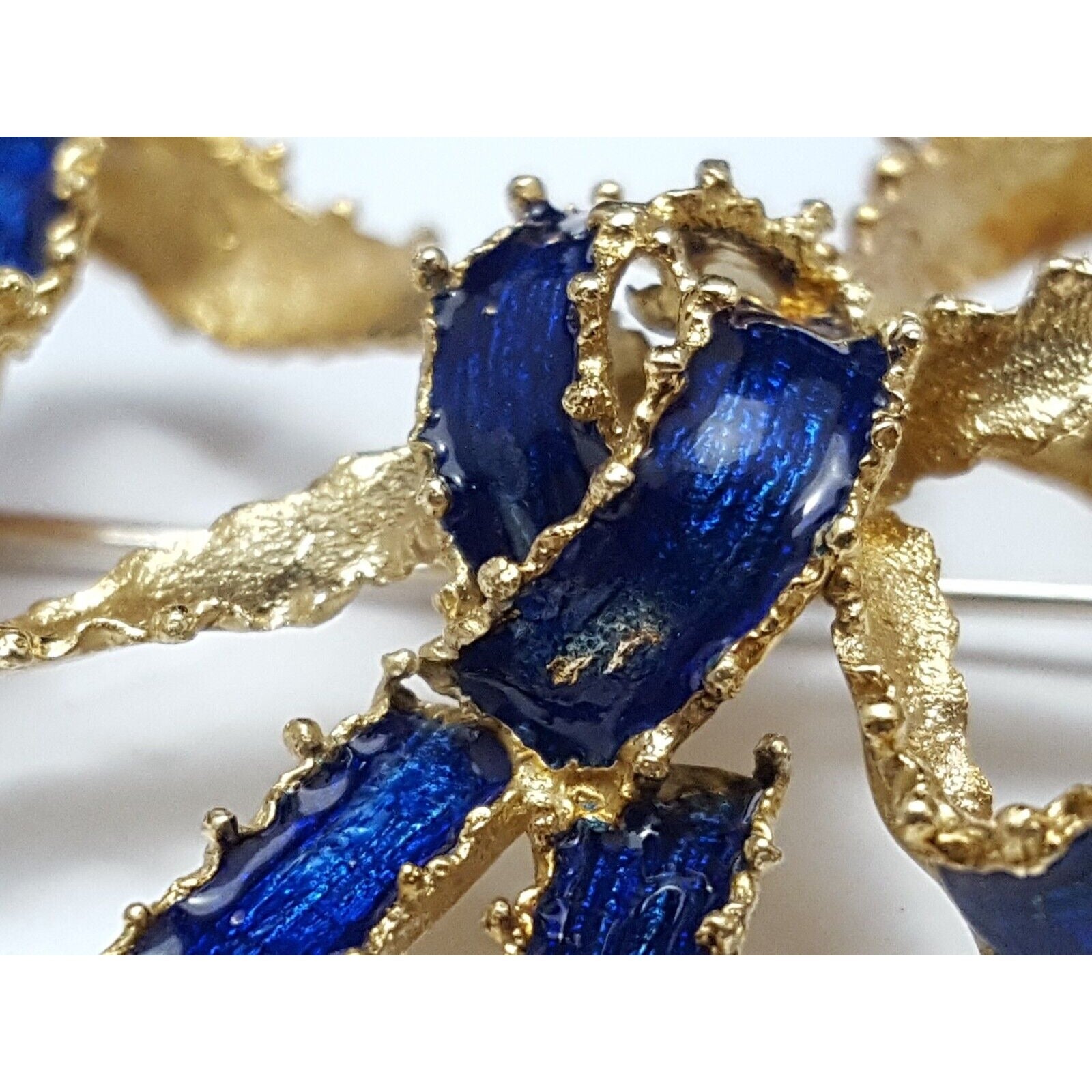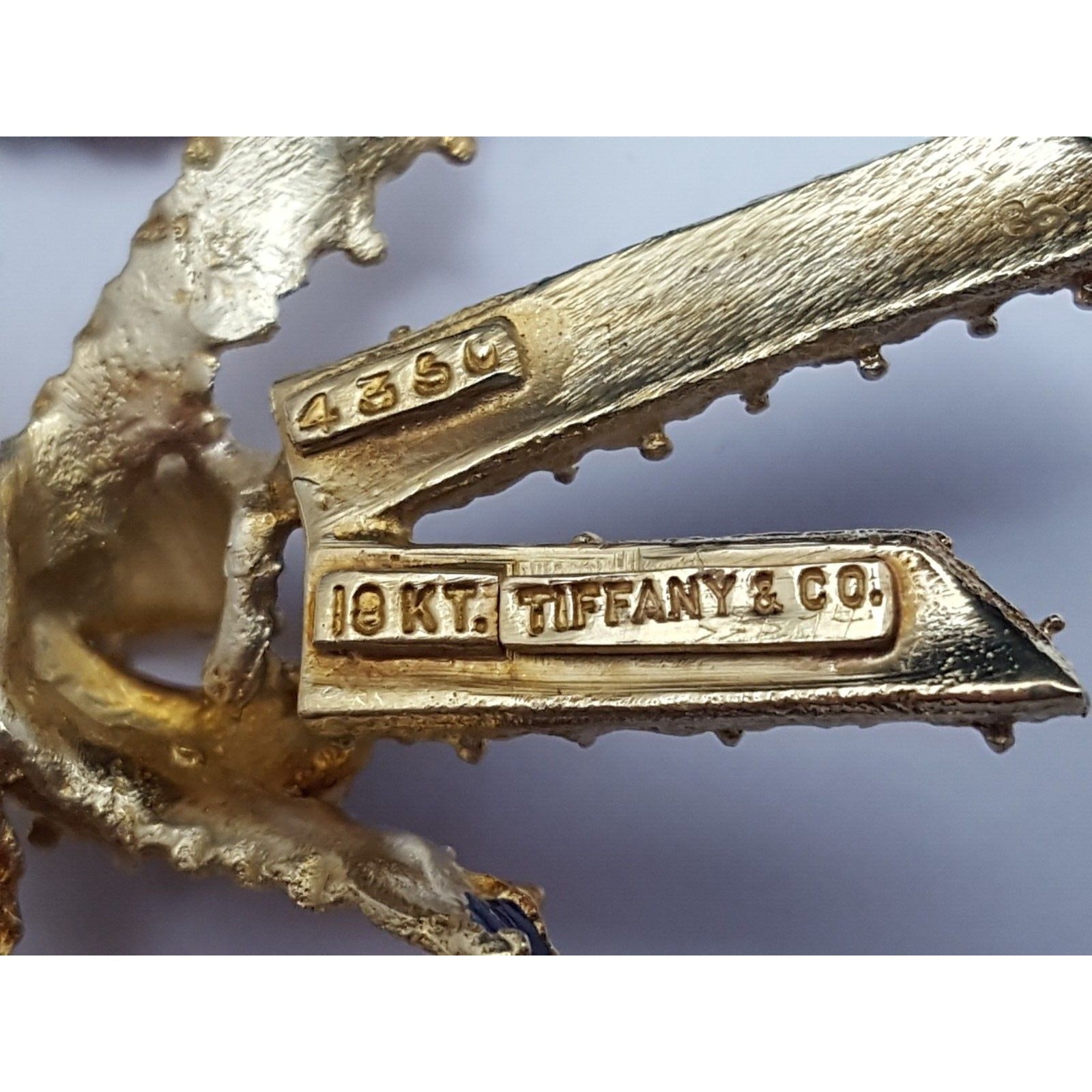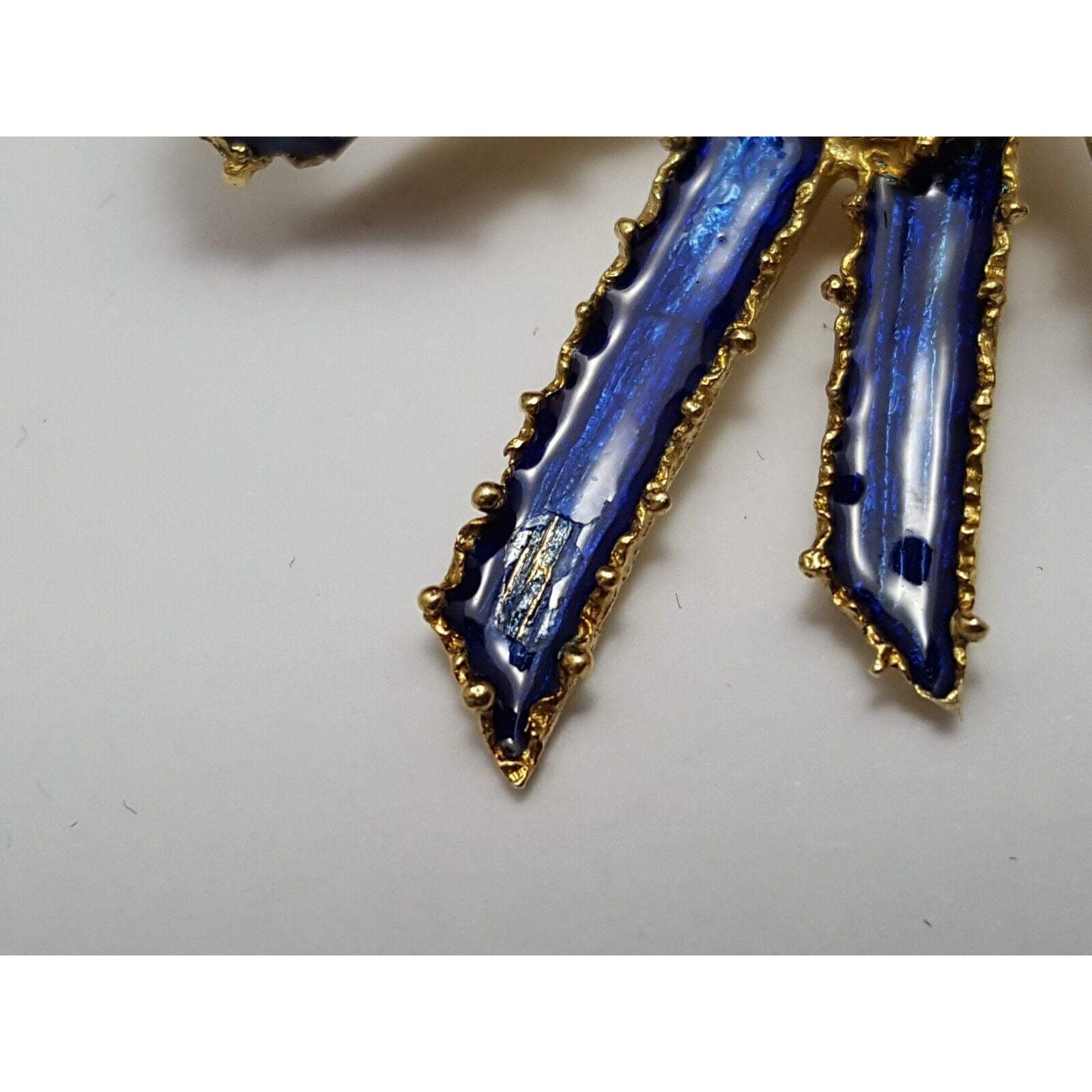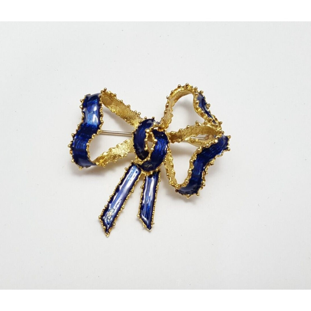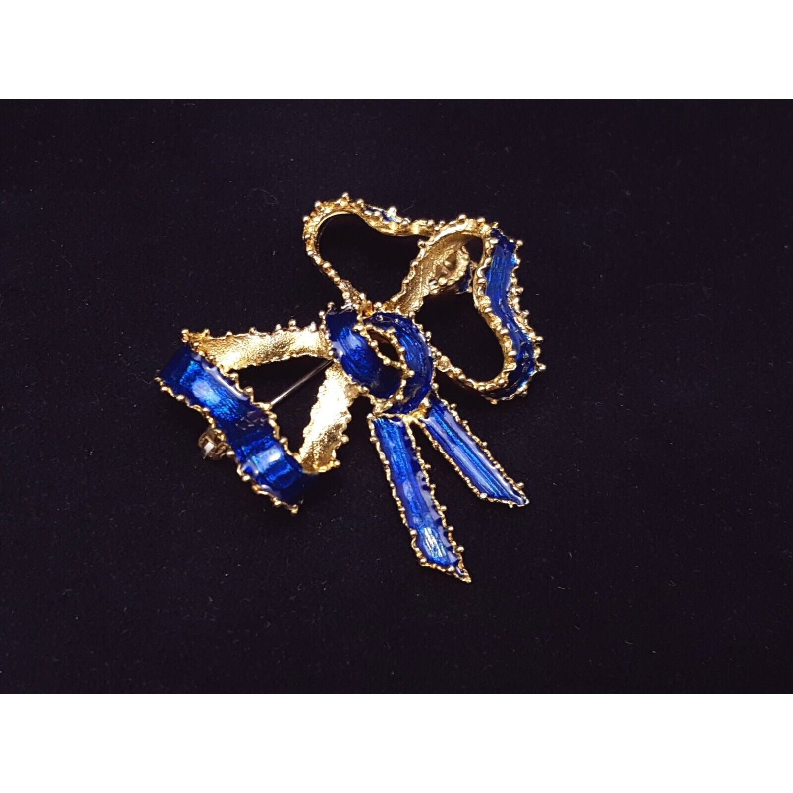Vintage Victorian Tiffany & Co 18K Solid Yellow Gold Blue Enamel Bow Brooch Pin