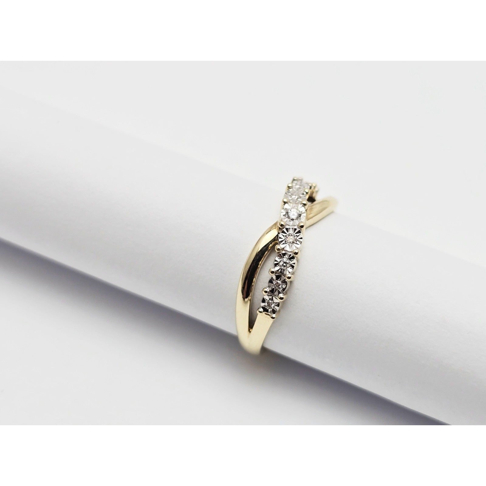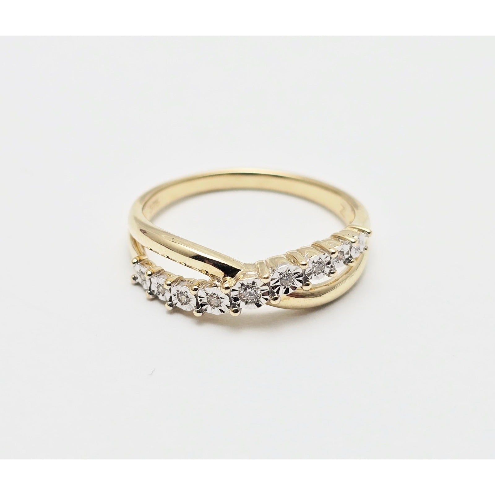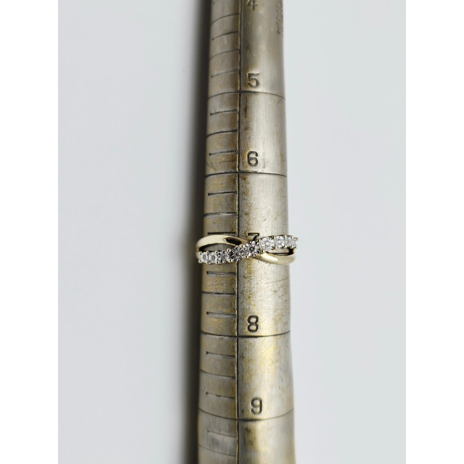 Zamels 9K Solid Two Tone Gold Crossover Round Diamond Ring